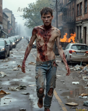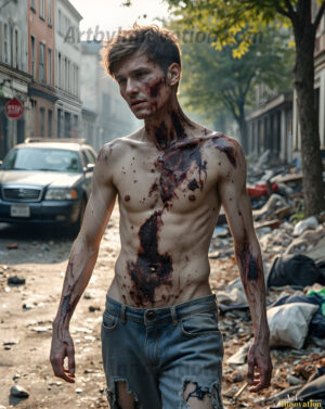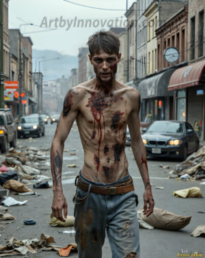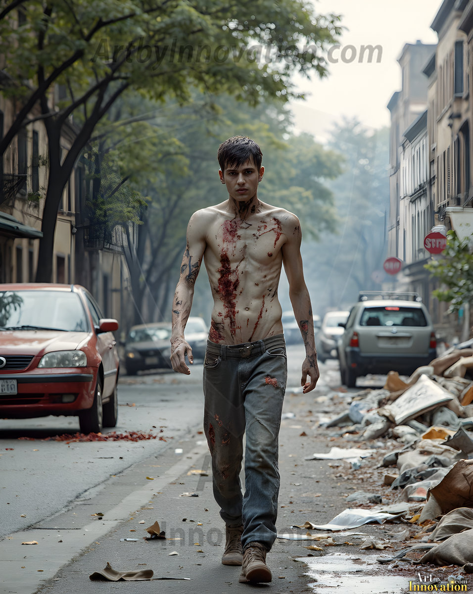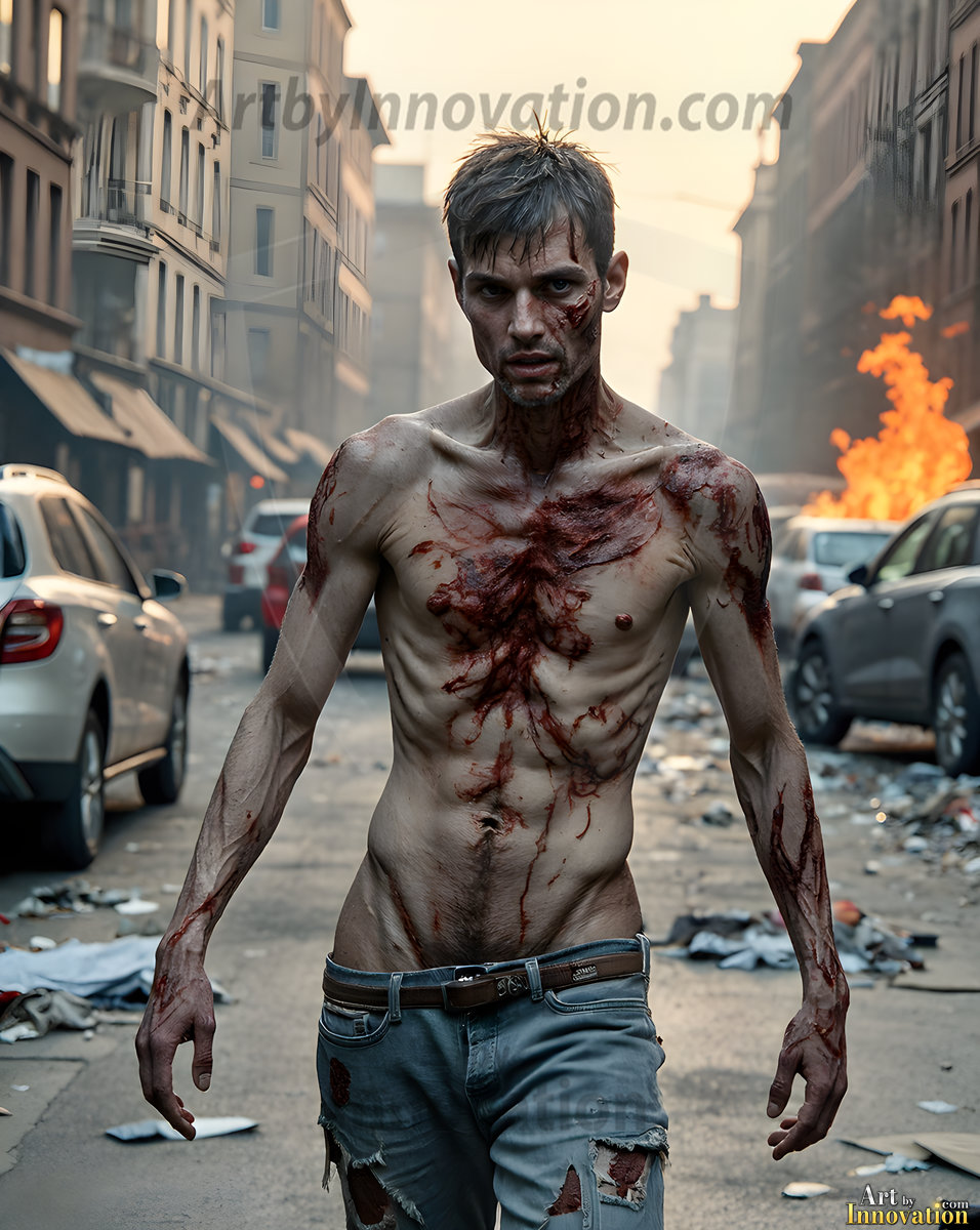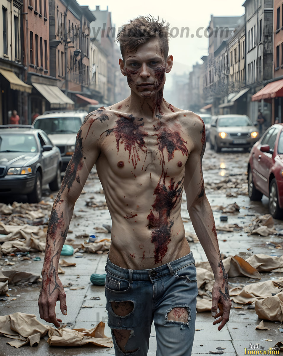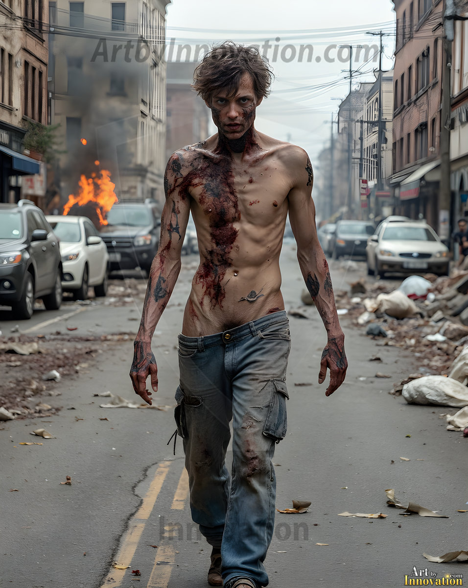 The apocalypse never looked this good. This AI-generated dark fantasy collection features handsome young male zombies in dramatic, cinematic apocalyptic settings — beautiful faces in various states of dark undead transformation, set against haunting desolate ruins and hellscapes. Equal parts beautiful and terrifying. Part of the Dark & Legendary Collection. Created using Flux.1 and ComfyUI by © Jeff Dupler | Art by Innovation | https://www.artbyinnovation.com