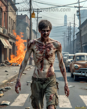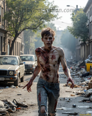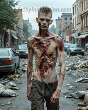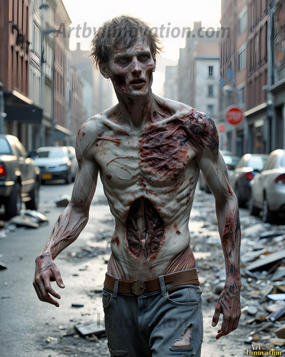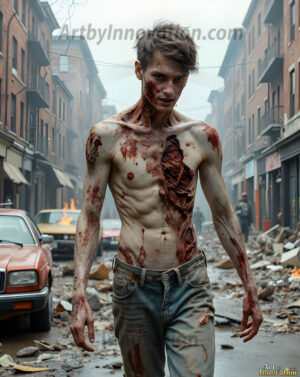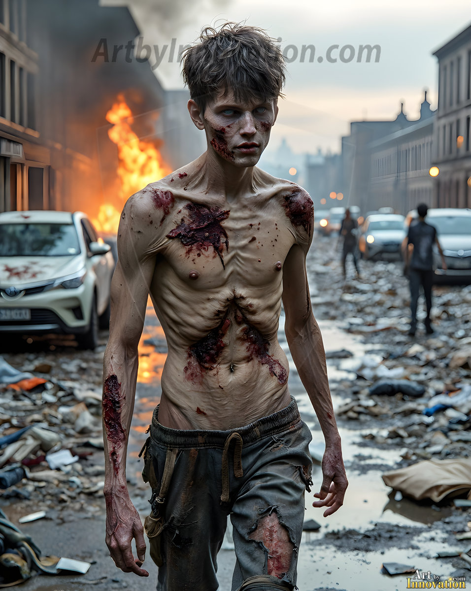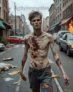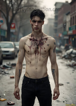 The apocalypse never looked this good. This AI-generated dark fantasy collection features handsome young male zombies in dramatic, cinematic apocalyptic settings — beautiful faces in various states of dark undead transformation, set against haunting desolate ruins and hellscapes. Equal parts beautiful and terrifying. Part of the Dark & Legendary Collection. Created using Flux.1 and ComfyUI by © Jeff Dupler | Art by Innovation | https://www.artbyinnovation.com