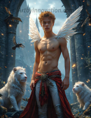 Standing before you is a prince and his dragon. This AI-generated collection features handsome, shirtless young princes with muscular physiques alongside their magnificent dragons — from the obsidian-scaled Bahamut with silver wings, to golden dragons sleeping in ancient caves. Each image blends the beauty of the male form with the raw majesty of dragonkind, set…