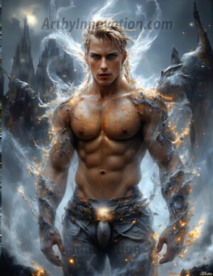 The original Golden City Collection — AI-generated handsome men on heavenly balconies. Where it all began. 193 images.