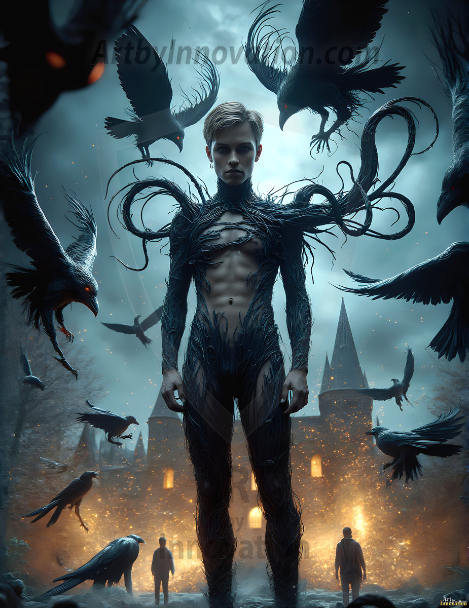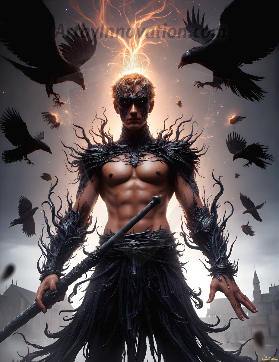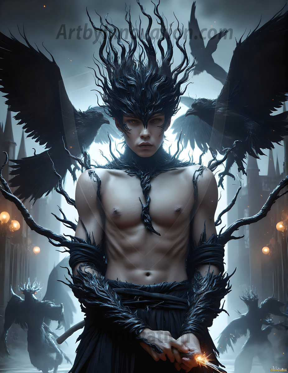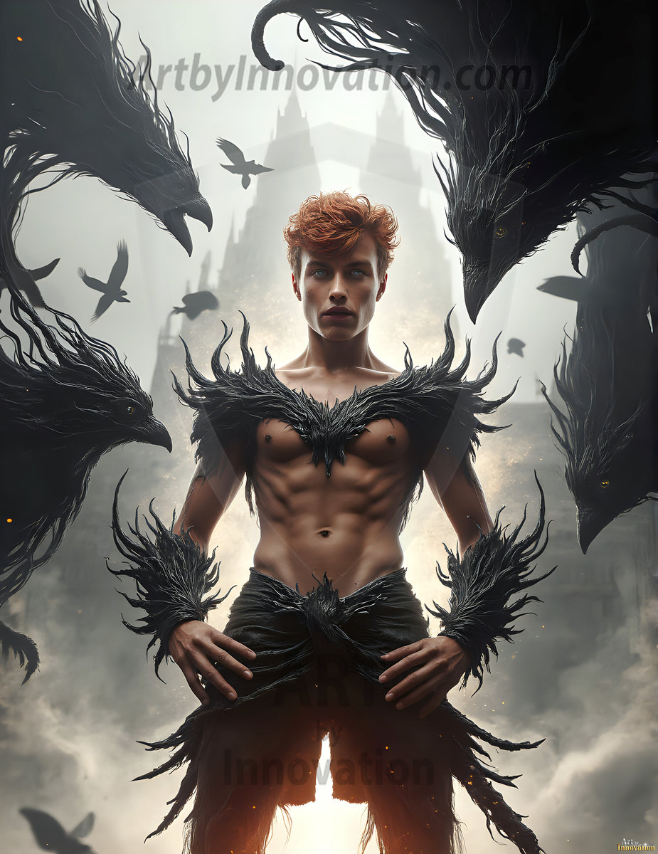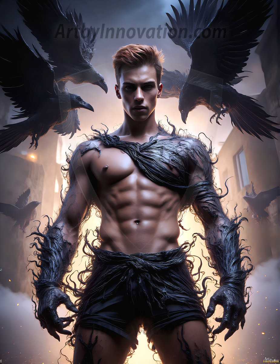 AI-generated hot male demons with dark wings and glowing eyes — handsome, dangerous, and seductive from the ruins of hell.