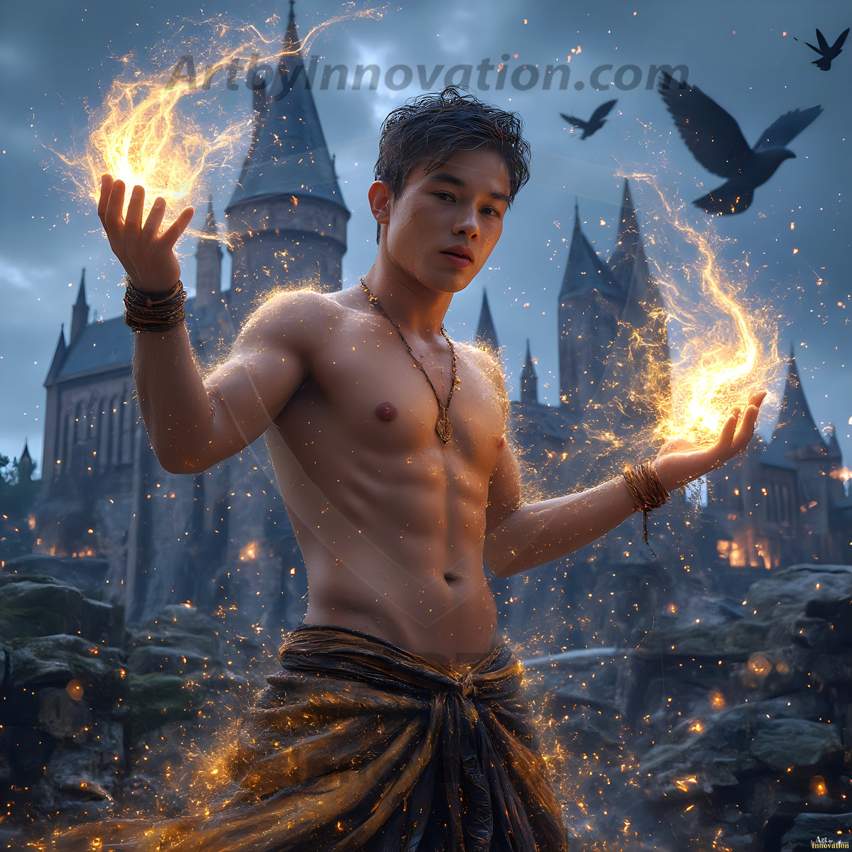 Fluid, dynamic, and breathtaking — this AI-generated abstract art collection captures handsome men in a cosmic dance with colorful liquid and light. Powerful swirls of vibrant, iridescent fluid erupt and cascade around them, forming swirling vortexes of rainbow color that respond to their every movement. Part fantasy, part surrealism, and entirely extraordinary. Created using Flux.1,…