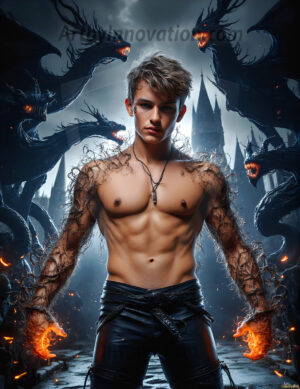 Fallen from grace — but never from beauty. This AI-generated dark angel collection features stunningly handsome fallen angels with massive black and silver feathered wings, set against gothic atmospheric backdrops of crumbling marble pillars, swirling crimson mists, and haunting desolate battlefields. Each image captures the raw, electrifying presence of a being between worlds — beautiful…
