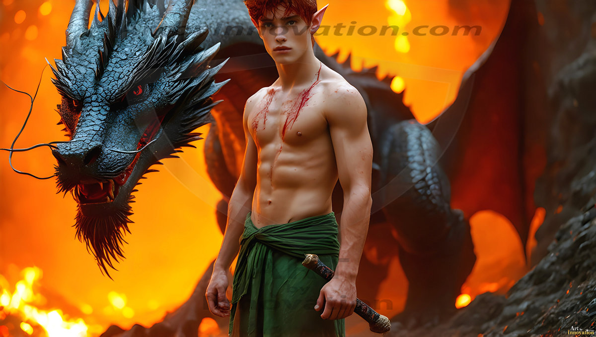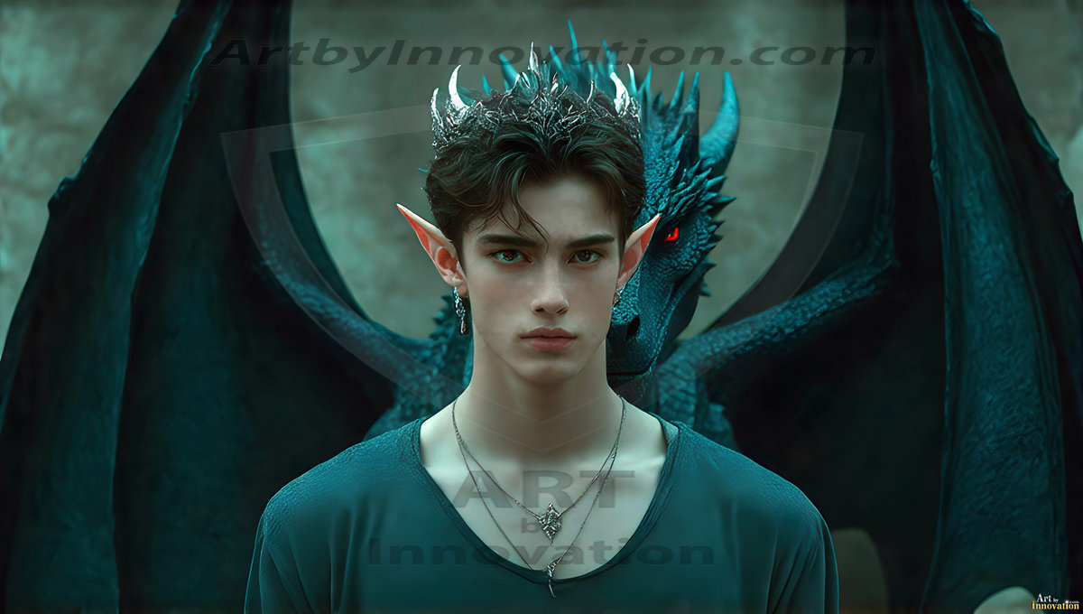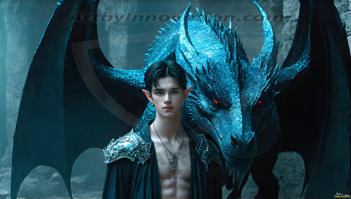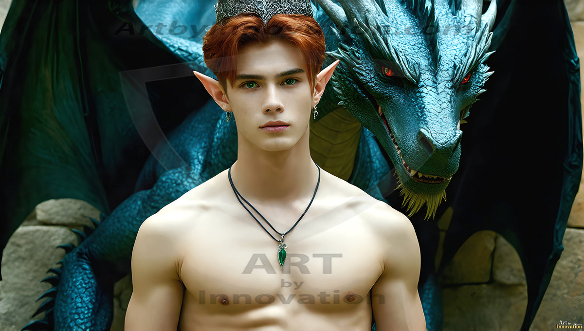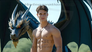 Standing before you is a prince and his dragon. This AI-generated collection features handsome, shirtless young princes with muscular physiques alongside their magnificent dragons — from the obsidian-scaled Bahamut with silver wings, to golden dragons sleeping in ancient caves. Each image blends the beauty of the male form with the raw majesty of dragonkind, set against breathtaking fantasy backdrops. Created using Flux.1, ComfyUI, Stable Diffusion, and refined with Adobe Photoshop by © Jeff Dupler | Art by Innovation | https://www.artbyinnovation.com