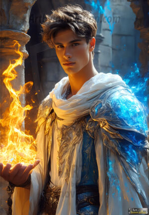 In fantasy, elemental mages wield the fundamental forces of nature — fire, water, earth, air, ice, and lightning — brought to breathtaking life through the power of AI. This collection features handsome, powerful male mages in epic battle scenes, casting devastating spells and radiating raw magical energy. From the blazing intensity of a fire mage to the icy calm of a frost mage, each image captures the full spectrum of elemental power. Created using Flux.1, ComfyUI, Stable Diffusion, and refined with Adobe Photoshop by © Jeff Dupler | Art by Innovation | https://www.artbyinnovation.com