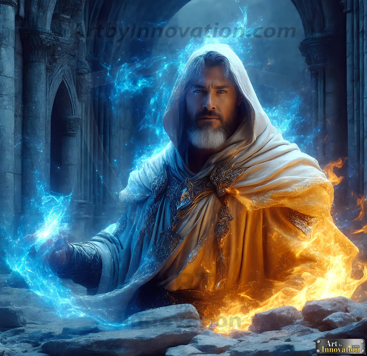 In fantasy, elemental mages wield the fundamental forces of nature — fire, water, earth, air, ice, and lightning — brought to breathtaking life through the power of AI. This collection features handsome, powerful male mages in epic battle scenes, casting devastating spells and radiating raw magical energy. From the blazing intensity of a fire mage to the icy calm of a frost mage, each image captures the full spectrum of elemental power. Created using Flux.1, ComfyUI, Stable Diffusion, and refined with Adobe Photoshop by © Jeff Dupler | Art by Innovation | https://www.artbyinnovation.com