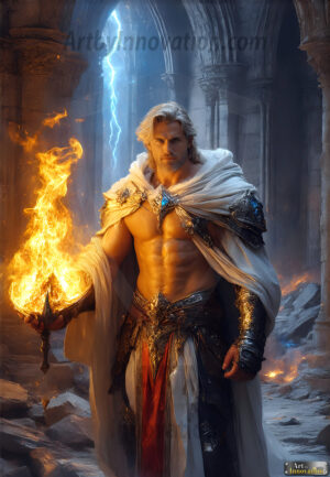 In fantasy, elemental mages wield the fundamental forces of nature — fire, water, earth, air, ice, and lightning — brought to breathtaking life through the power of AI. This collection features handsome, powerful male mages in epic battle scenes, casting devastating spells and radiating raw magical energy. From the blazing intensity of a fire mage to the icy calm of a frost mage, each image captures the full spectrum of elemental power. Created using Flux.1, ComfyUI, Stable Diffusion, and refined with Adobe Photoshop by © Jeff Dupler | Art by Innovation | https://www.artbyinnovation.com