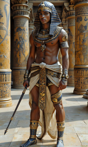 A stunning reimagining of the Boy Pharaoh — King Tutankhamun, one of ancient Egypt’s most iconic rulers, brought to vivid life through AI. This collection features handsome, powerful portrayals of the young king adorned in authentic ancient Egyptian royal regalia — golden crowns, ornate collars, and kohl-lined eyes — set against breathtaking scenes of pyramids, temple halls, and the sun-baked banks of the Nile. Part history, part fantasy, entirely extraordinary. Created using Flux.1 and ComfyUI by © Jeff Dupler | Art by Innovation | https://www.artbyinnovation.com