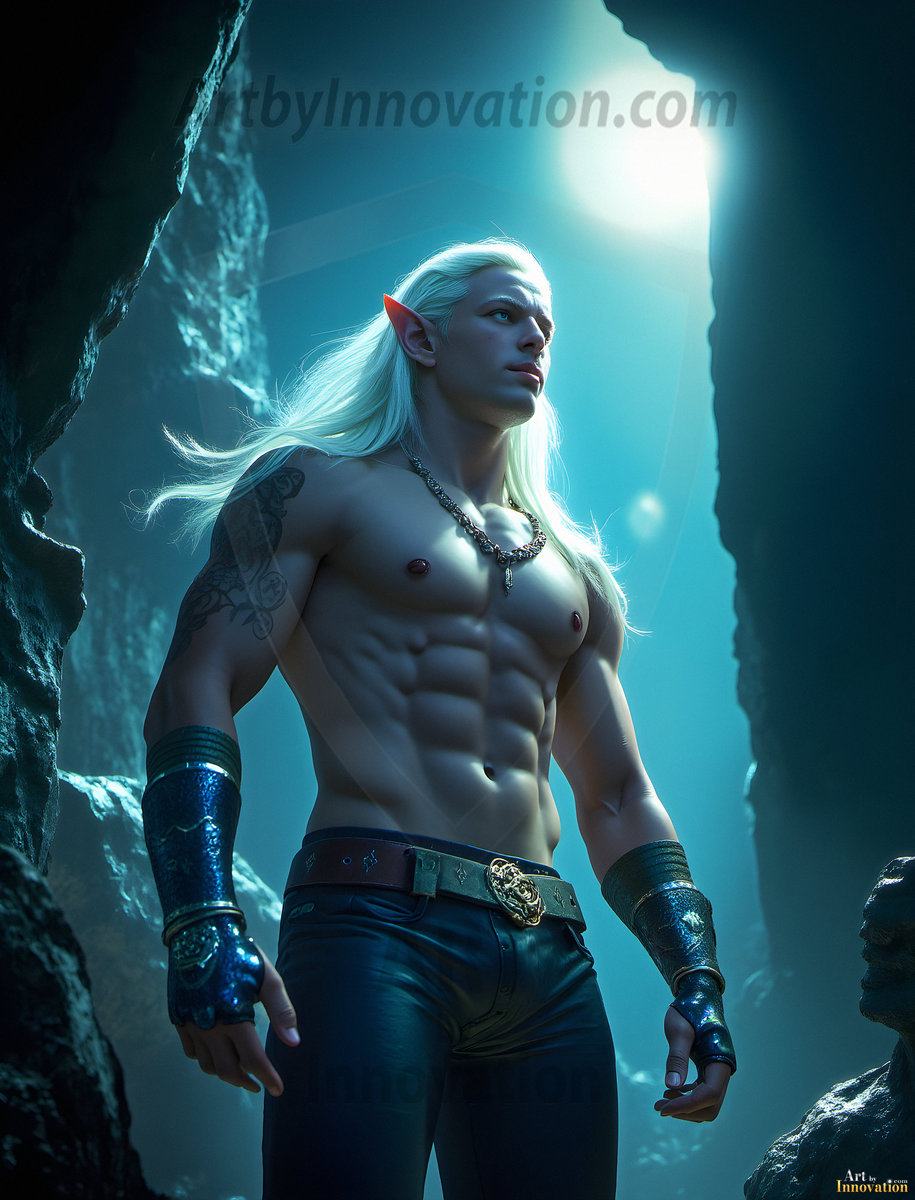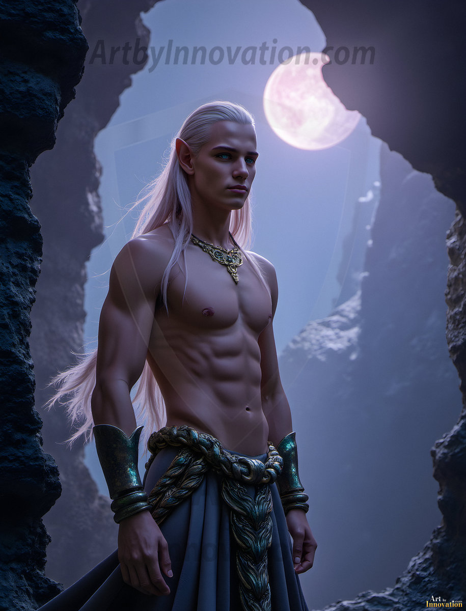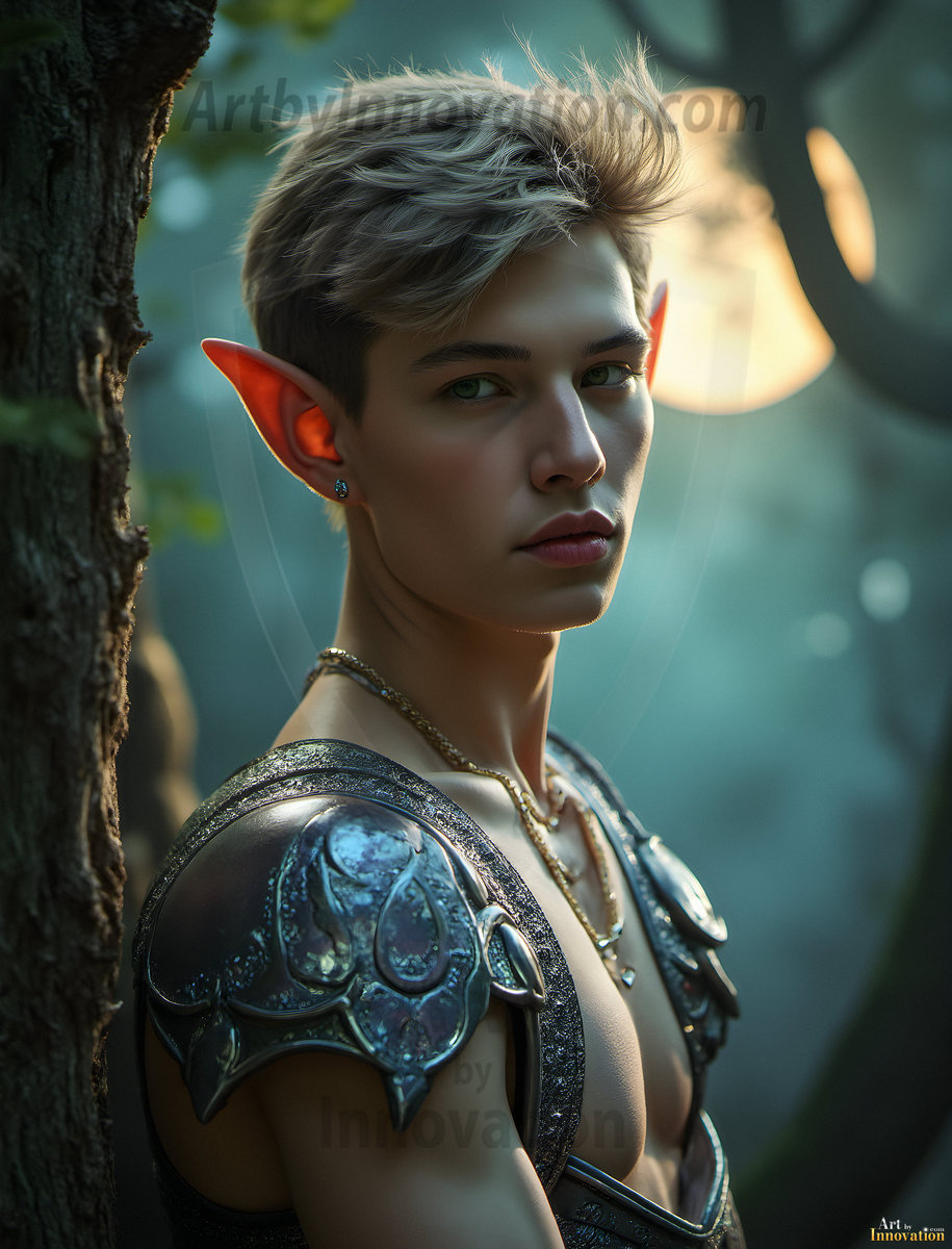 Step into an enchanted realm where magic and beauty meet. This collection of AI-generated male elf art features handsome, powerful elven warriors and mystics set against breathtaking fantasy landscapes — moonlit forests, ancient ruins, and shimmering magical realms. Each image was crafted using Flux.1 and ComfyUI, bringing the elegance and mystique of elven culture to vivid, ultra-high-definition life. Created by © Jeff Dupler | Art by Innovation | https://www.artbyinnovation.com