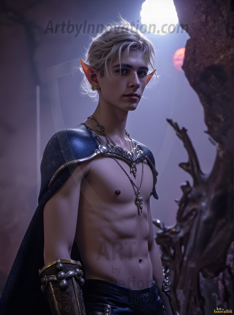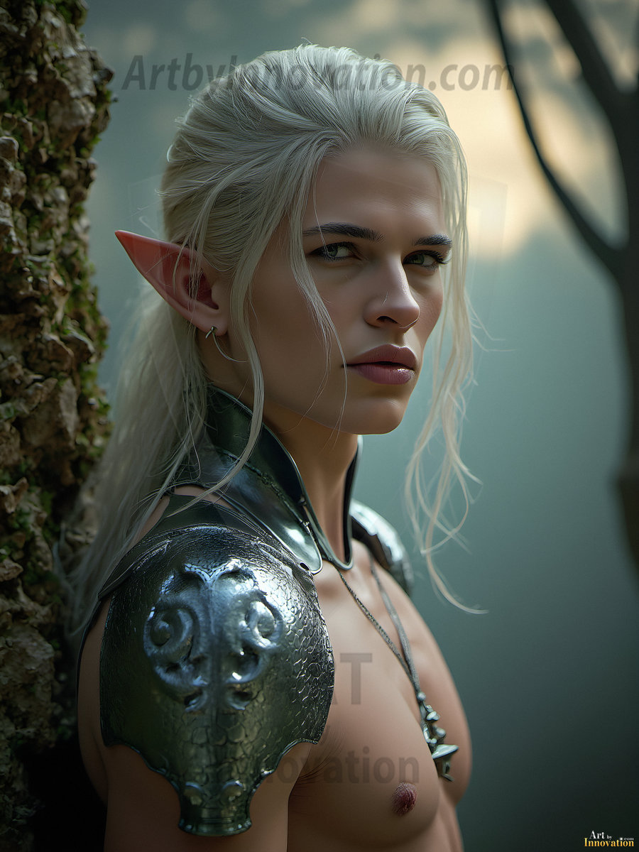 Step into an enchanted realm where magic and beauty meet. This collection of AI-generated male elf art features handsome, powerful elven warriors and mystics set against breathtaking fantasy landscapes — moonlit forests, ancient ruins, and shimmering magical realms. Each image was crafted using Flux.1 and ComfyUI, bringing the elegance and mystique of elven culture to vivid, ultra-high-definition life. Created by © Jeff Dupler | Art by Innovation | https://www.artbyinnovation.com