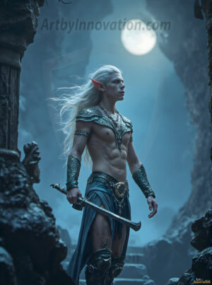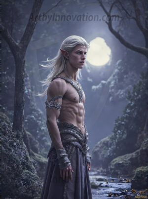 Step into an enchanted realm where magic and beauty meet. This collection of AI-generated male elf art features handsome, powerful elven warriors and mystics set against breathtaking fantasy landscapes — moonlit forests, ancient ruins, and shimmering magical realms. Each image was crafted using Flux.1 and ComfyUI, bringing the elegance and mystique of elven culture to vivid, ultra-high-definition life. Created by © Jeff Dupler | Art by Innovation | https://www.artbyinnovation.com