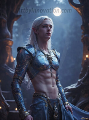 Step into an enchanted realm where magic and beauty meet. This collection of AI-generated male elf art features handsome, powerful elven warriors and mystics set against breathtaking fantasy landscapes — moonlit forests, ancient ruins, and shimmering magical realms. Each image was crafted using Flux.1 and ComfyUI, bringing the elegance and mystique of elven culture to vivid, ultra-high-definition life. Created by © Jeff Dupler | Art by Innovation | https://www.artbyinnovation.com