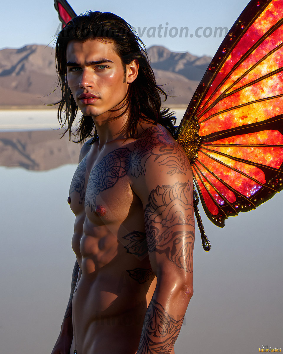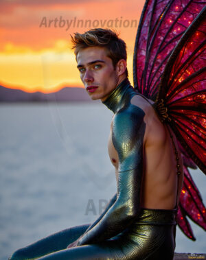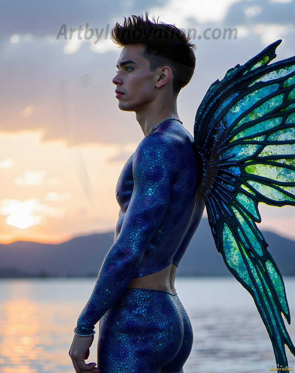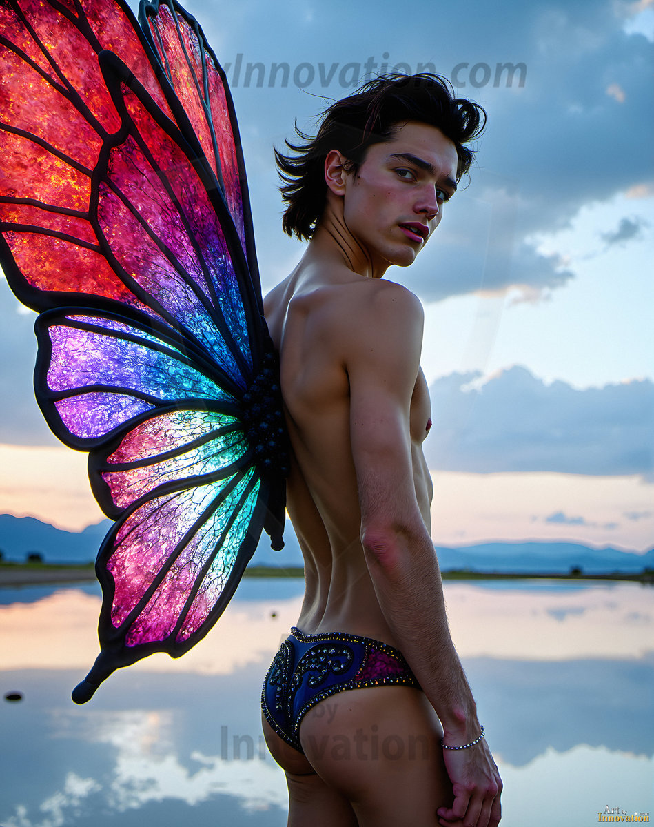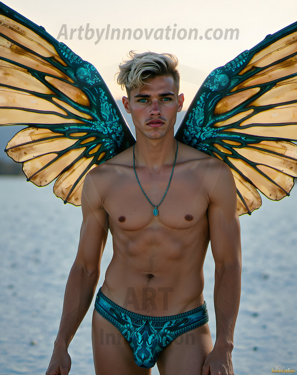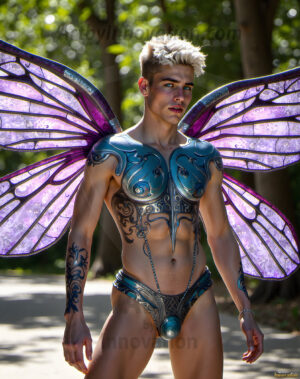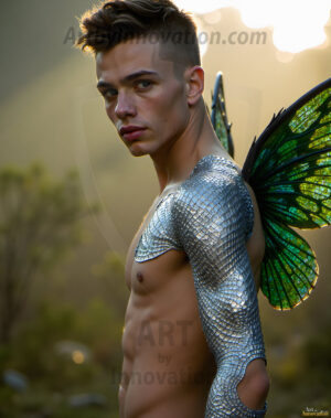 Capturing the pristine and elusive male fairy — brought to life through the power of AI. Imagine a realm where handsome young men possess enormous shimmering crystal wings, vibrant and radiant, capturing and reflecting the light of the environment in a mesmerizing way. Set in mysterious enchanted forests, each fairy exudes an otherworldly beauty and elegance that blurs the line between fantasy and reality. Created using Flux.1, ComfyUI, and Stable Diffusion by © Jeff Dupler | Art by Innovation | https://www.artbyinnovation.com