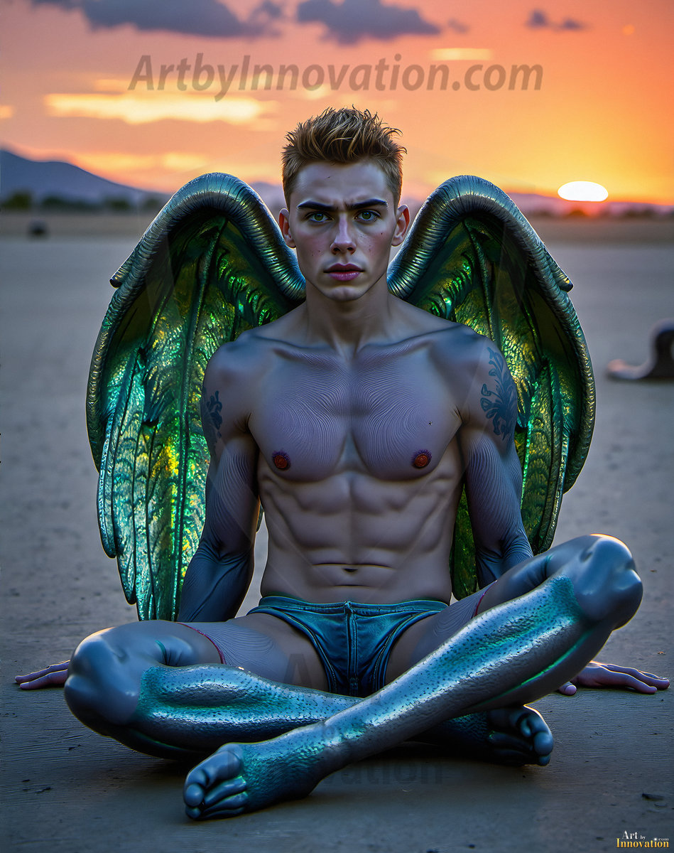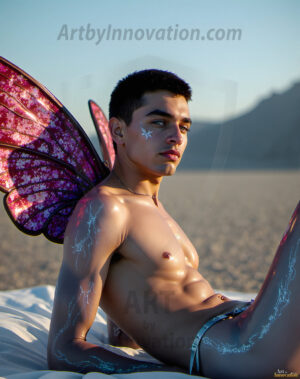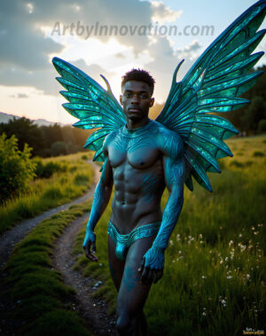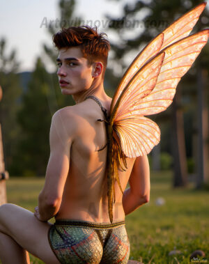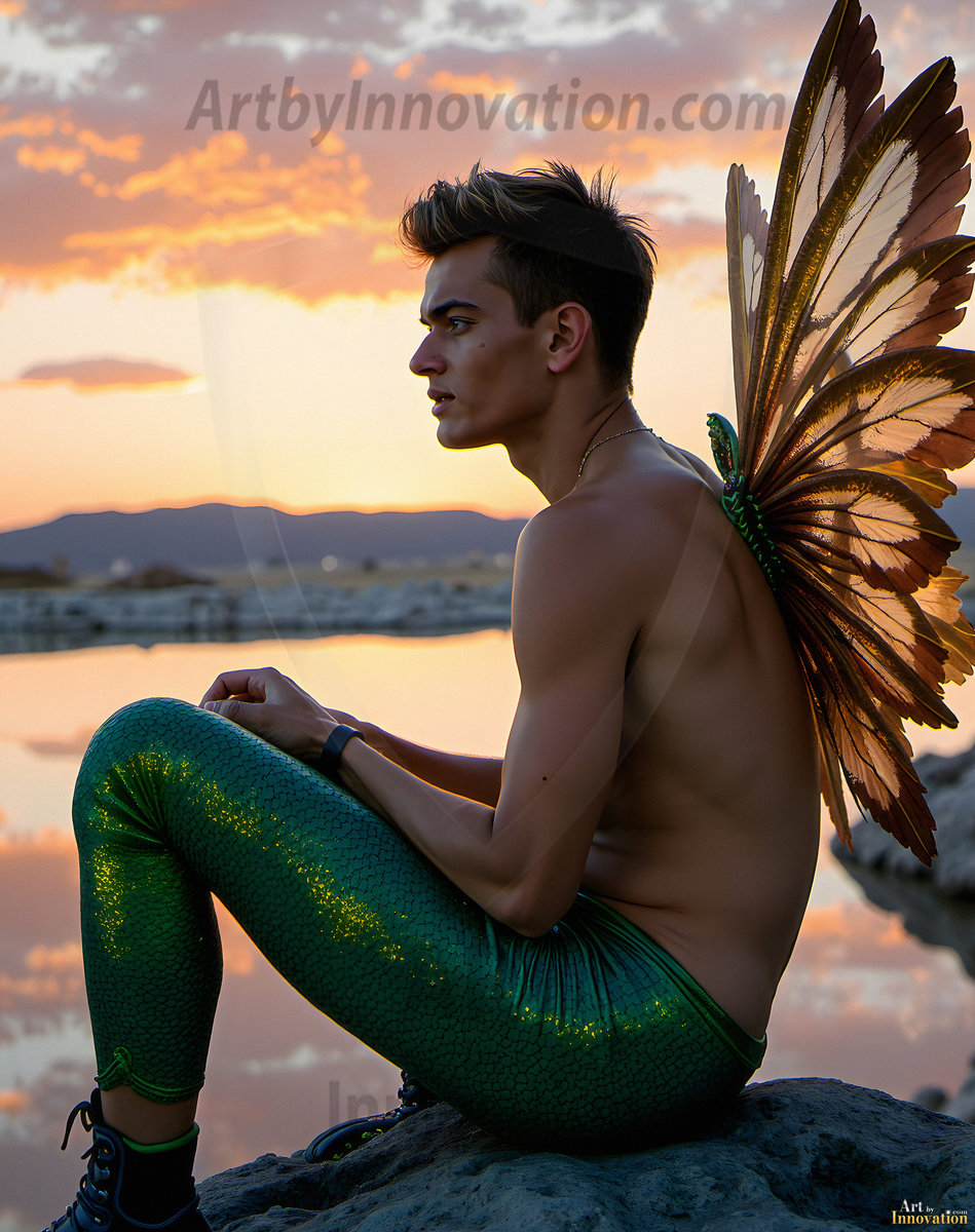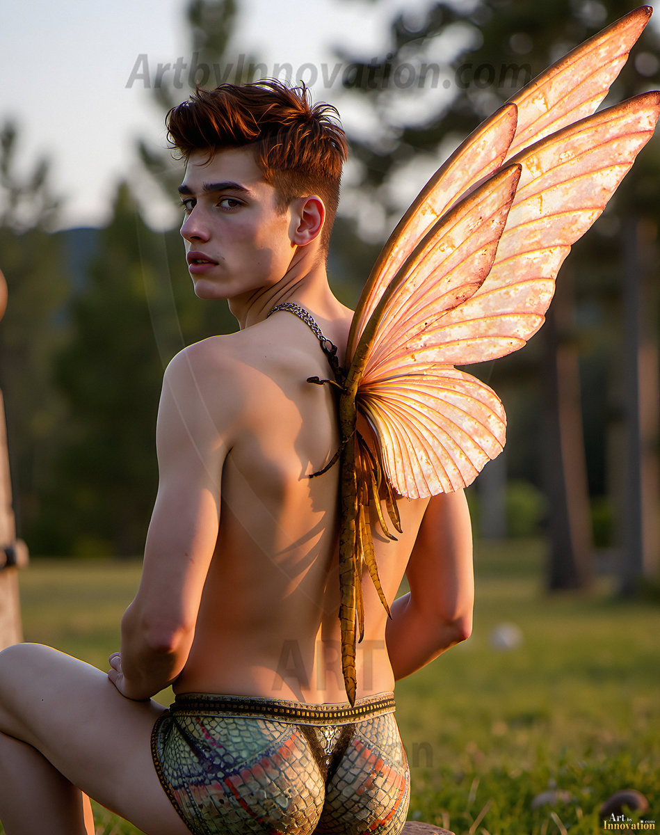 Capturing the pristine and elusive male fairy — brought to life through the power of AI. Imagine a realm where handsome young men possess enormous shimmering crystal wings, vibrant and radiant, capturing and reflecting the light of the environment in a mesmerizing way. Set in mysterious enchanted forests, each fairy exudes an otherworldly beauty and elegance that blurs the line between fantasy and reality. Created using Flux.1, ComfyUI, and Stable Diffusion by © Jeff Dupler | Art by Innovation | https://www.artbyinnovation.com