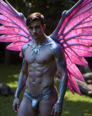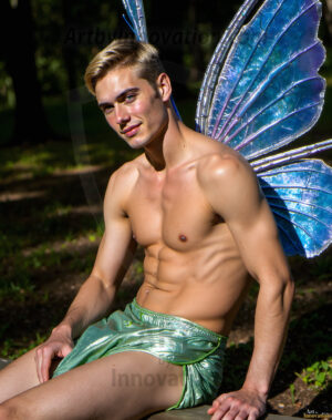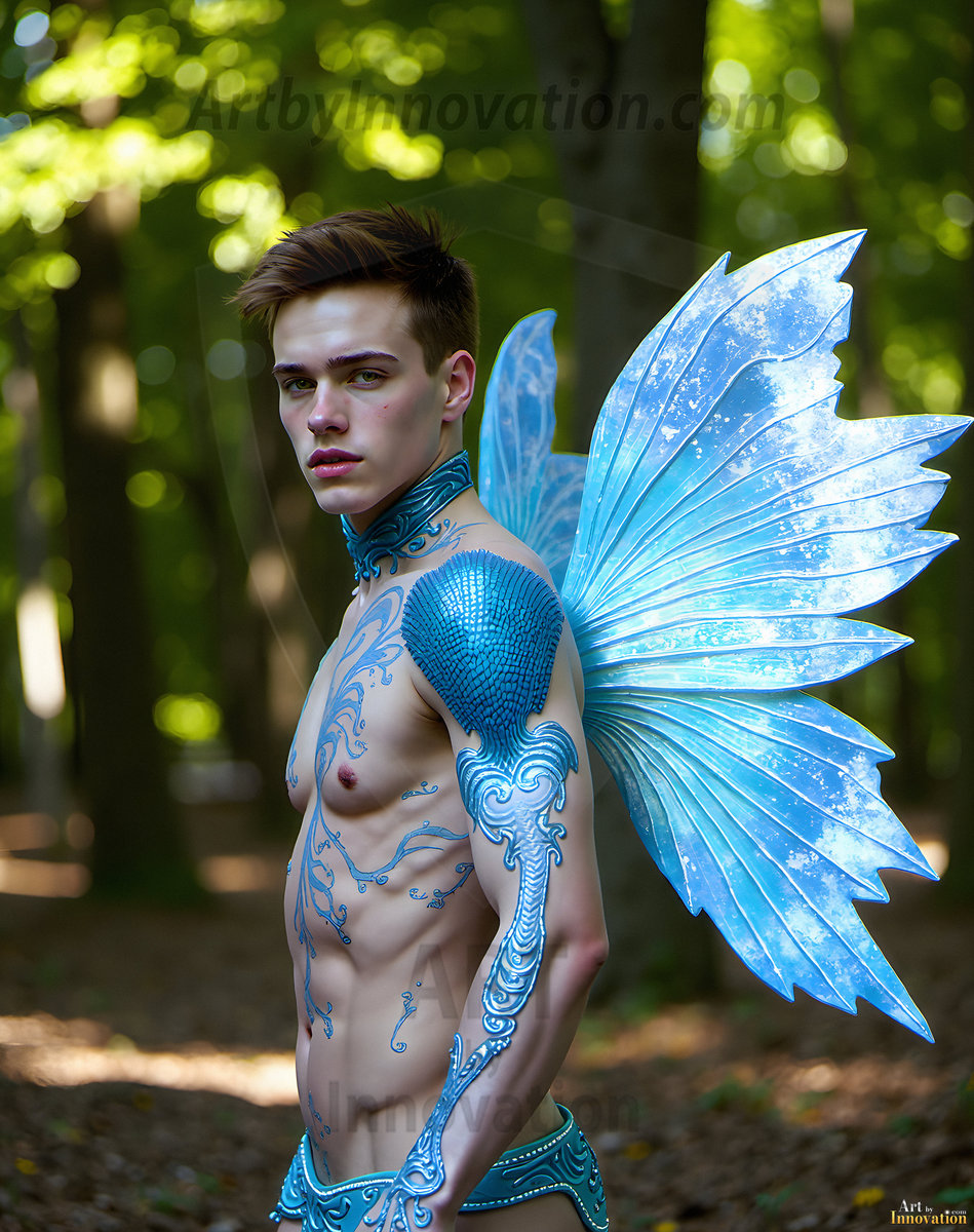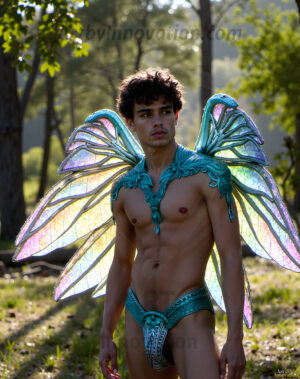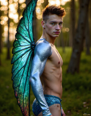 Capturing the pristine and elusive male fairy — brought to life through the power of AI. Imagine a realm where handsome young men possess enormous shimmering crystal wings, vibrant and radiant, capturing and reflecting the light of the environment in a mesmerizing way. Set in mysterious enchanted forests, each fairy exudes an otherworldly beauty and elegance that blurs the line between fantasy and reality. Created using Flux.1, ComfyUI, and Stable Diffusion by © Jeff Dupler | Art by Innovation | https://www.artbyinnovation.com