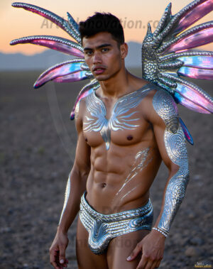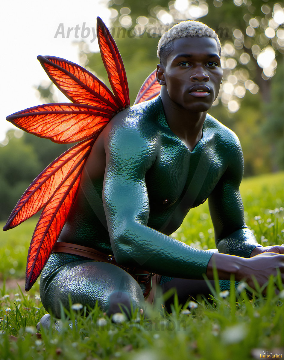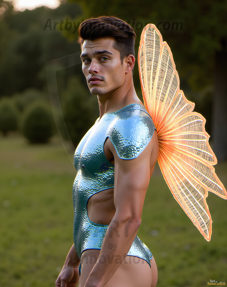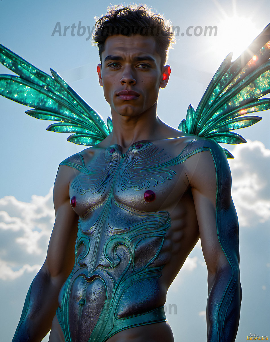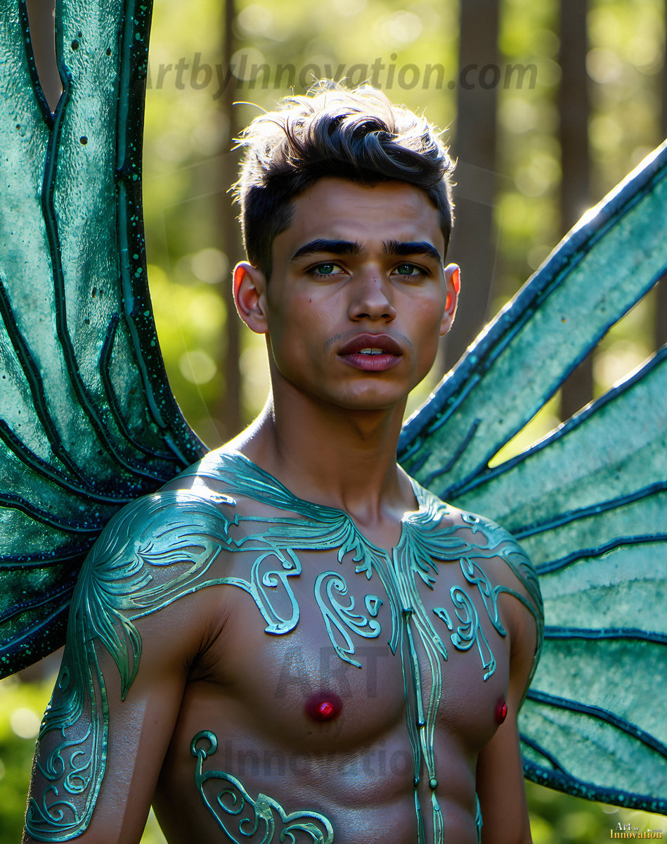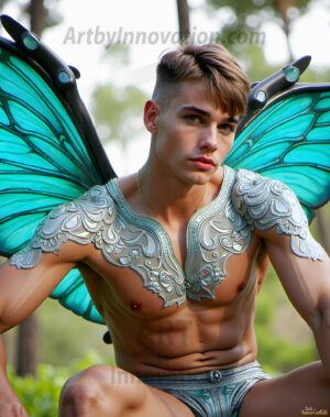 Capturing the pristine and elusive male fairy — brought to life through the power of AI. Imagine a realm where handsome young men possess enormous shimmering crystal wings, vibrant and radiant, capturing and reflecting the light of the environment in a mesmerizing way. Set in mysterious enchanted forests, each fairy exudes an otherworldly beauty and elegance that blurs the line between fantasy and reality. Created using Flux.1, ComfyUI, and Stable Diffusion by © Jeff Dupler | Art by Innovation | https://www.artbyinnovation.com