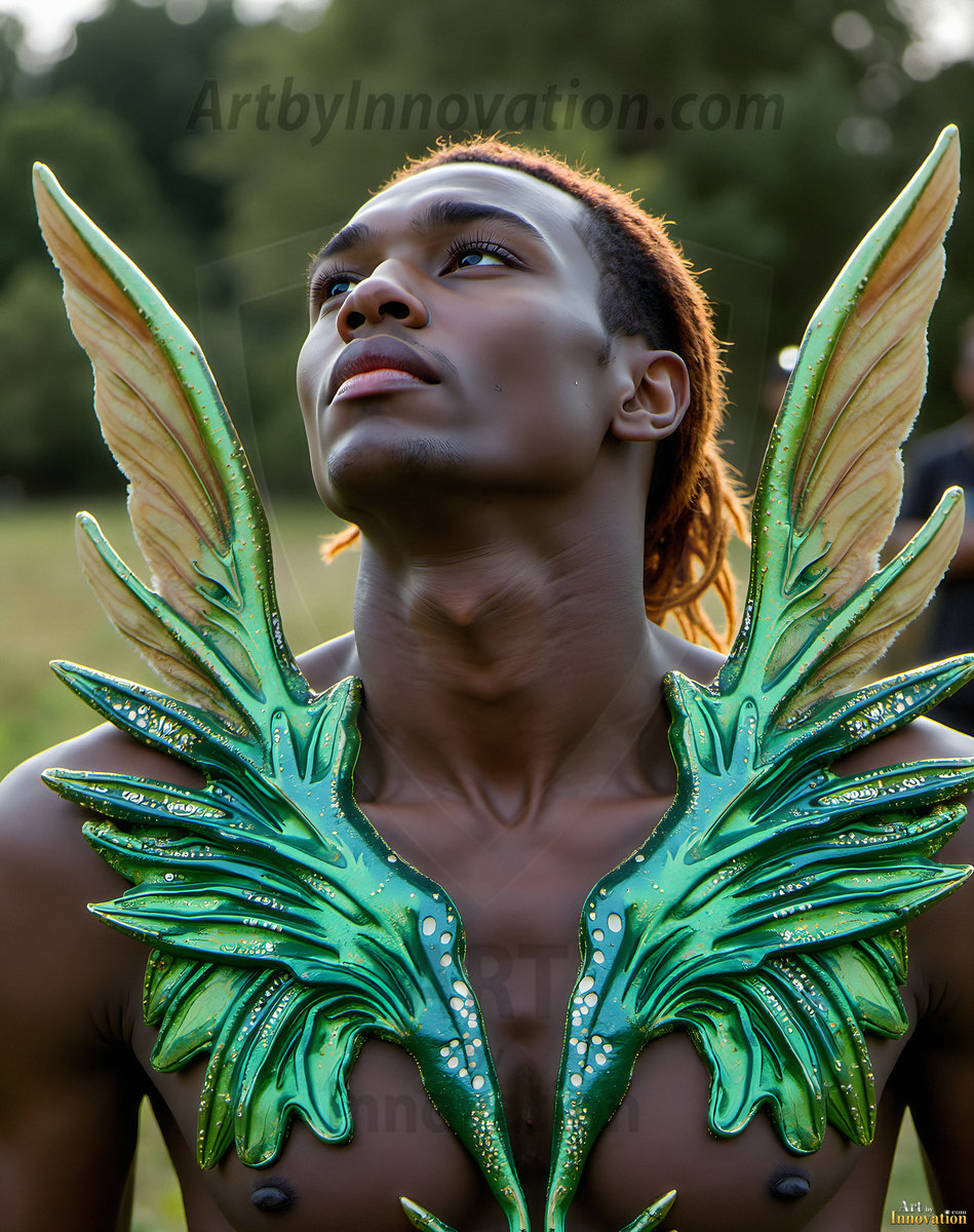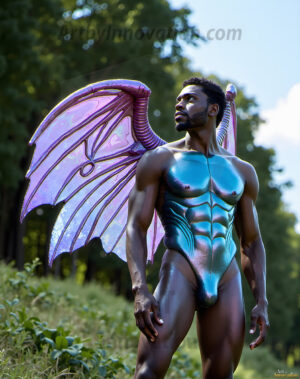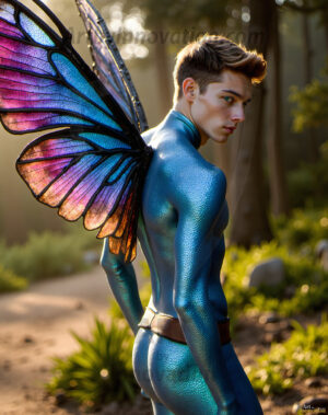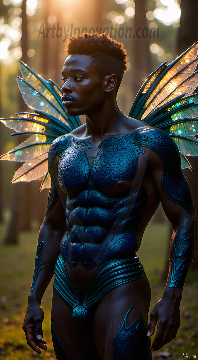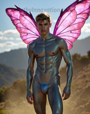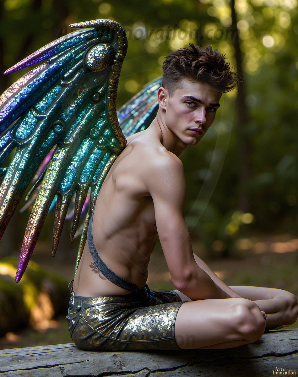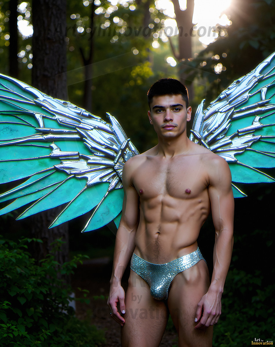 Capturing the pristine and elusive male fairy — brought to life through the power of AI. Imagine a realm where handsome young men possess enormous shimmering crystal wings, vibrant and radiant, capturing and reflecting the light of the environment in a mesmerizing way. Set in mysterious enchanted forests, each fairy exudes an otherworldly beauty and elegance that blurs the line between fantasy and reality. Created using Flux.1, ComfyUI, and Stable Diffusion by © Jeff Dupler | Art by Innovation | https://www.artbyinnovation.com