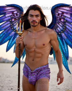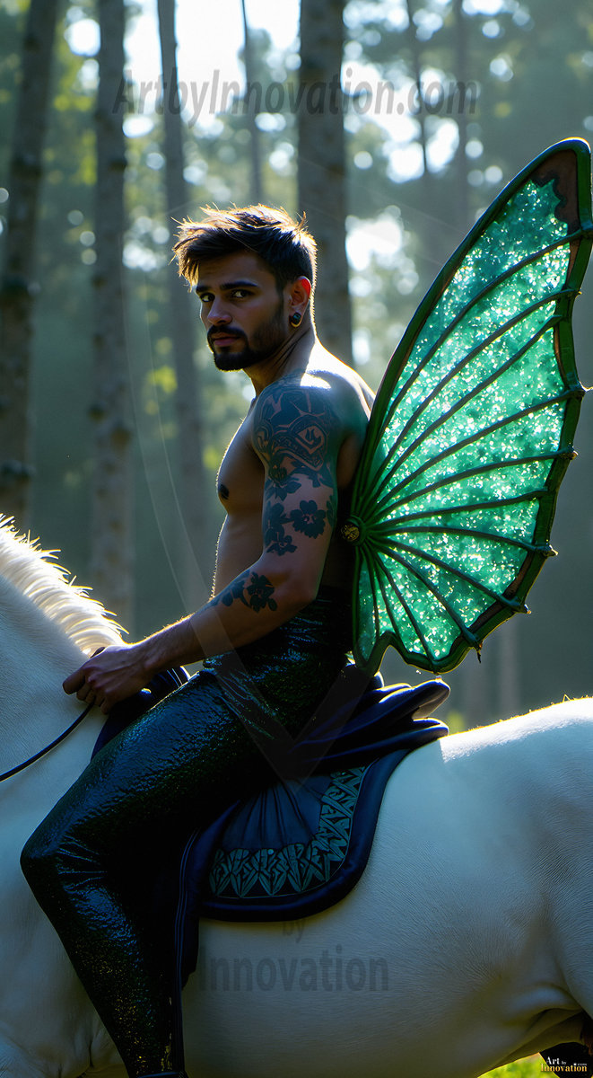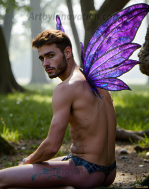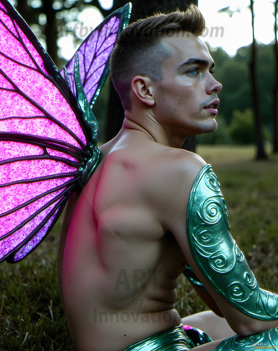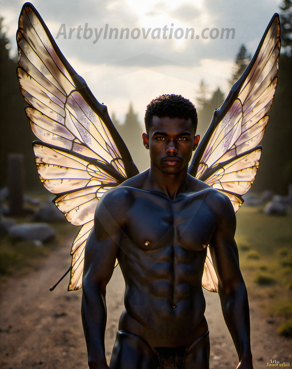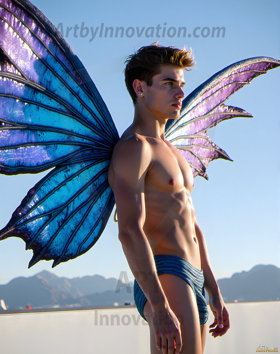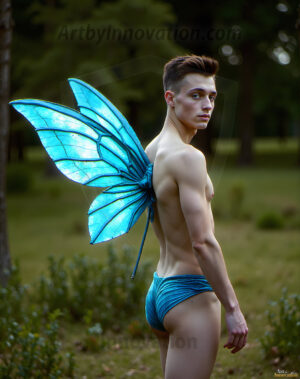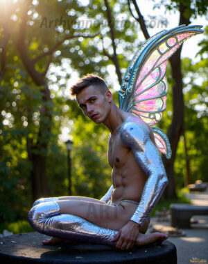 Capturing the pristine and elusive male fairy — brought to life through the power of AI. Imagine a realm where handsome young men possess enormous shimmering crystal wings, vibrant and radiant, capturing and reflecting the light of the environment in a mesmerizing way. Set in mysterious enchanted forests, each fairy exudes an otherworldly beauty and elegance that blurs the line between fantasy and reality. Created using Flux.1, ComfyUI, and Stable Diffusion by © Jeff Dupler | Art by Innovation | https://www.artbyinnovation.com