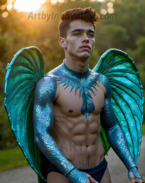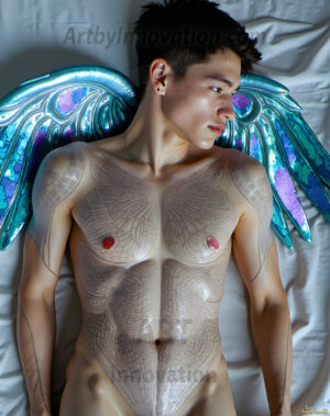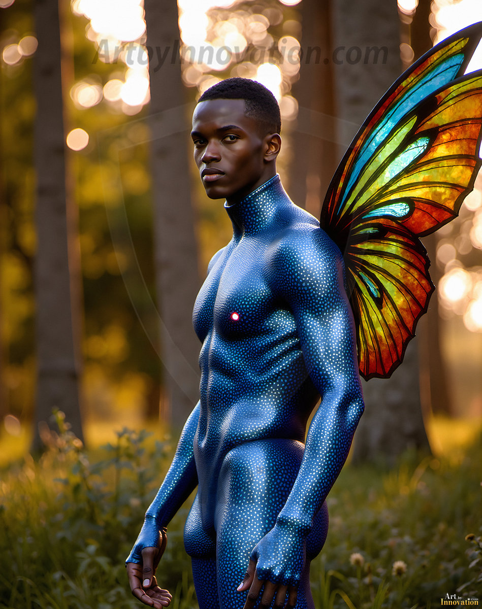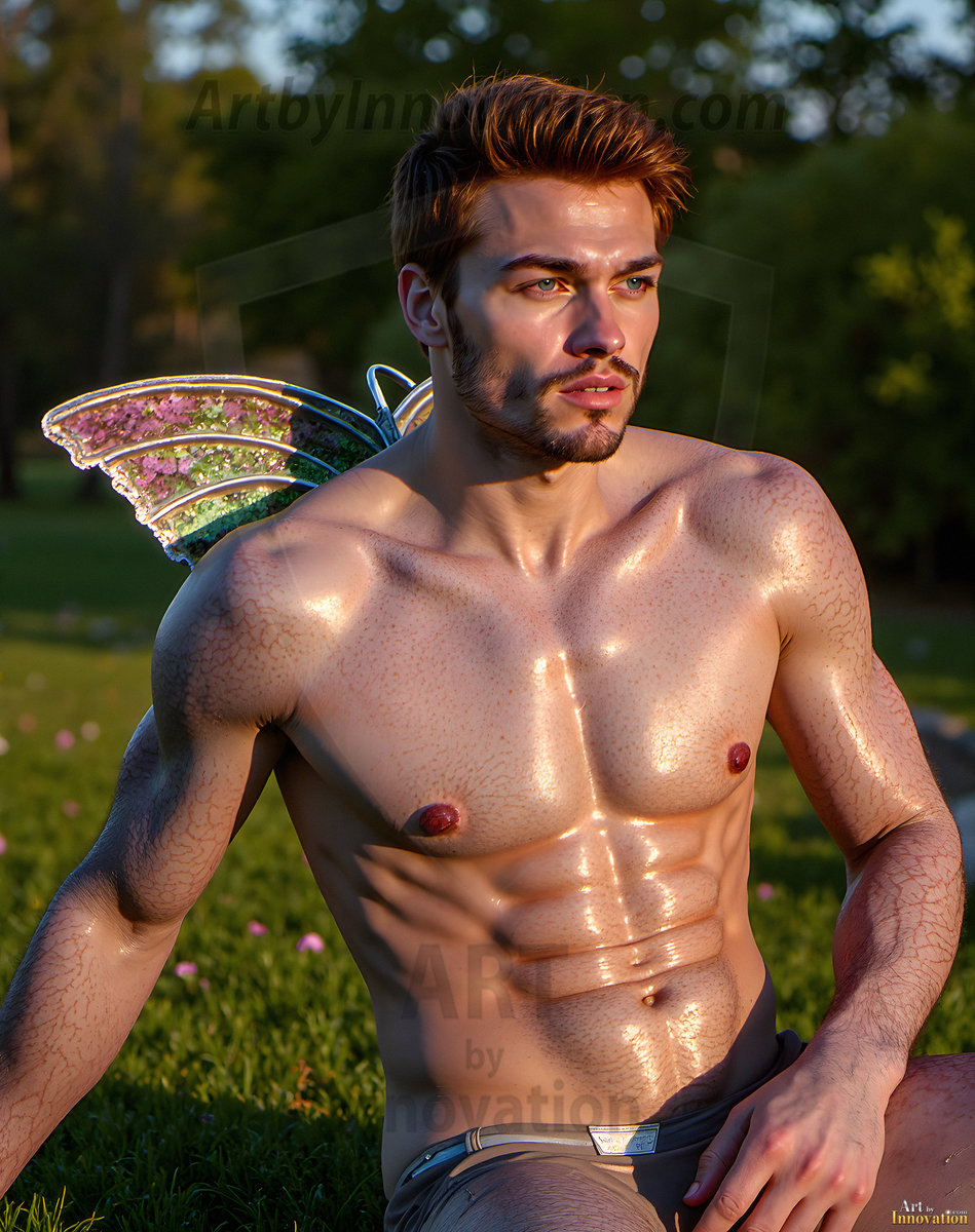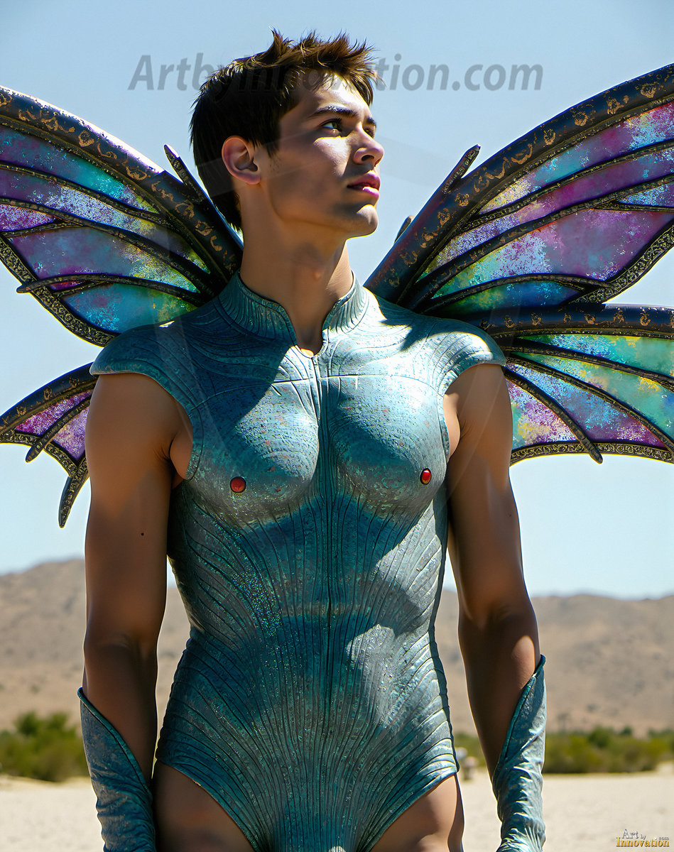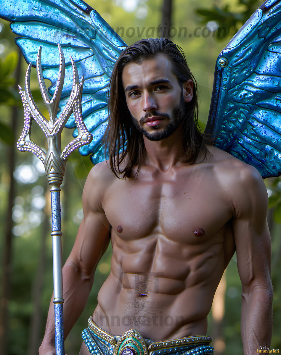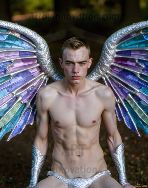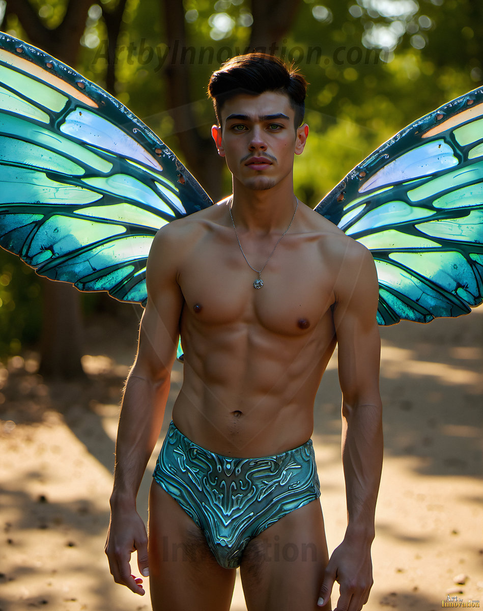 Capturing the pristine and elusive male fairy — brought to life through the power of AI. Imagine a realm where handsome young men possess enormous shimmering crystal wings, vibrant and radiant, capturing and reflecting the light of the environment in a mesmerizing way. Set in mysterious enchanted forests, each fairy exudes an otherworldly beauty and elegance that blurs the line between fantasy and reality. Created using Flux.1, ComfyUI, and Stable Diffusion by © Jeff Dupler | Art by Innovation | https://www.artbyinnovation.com