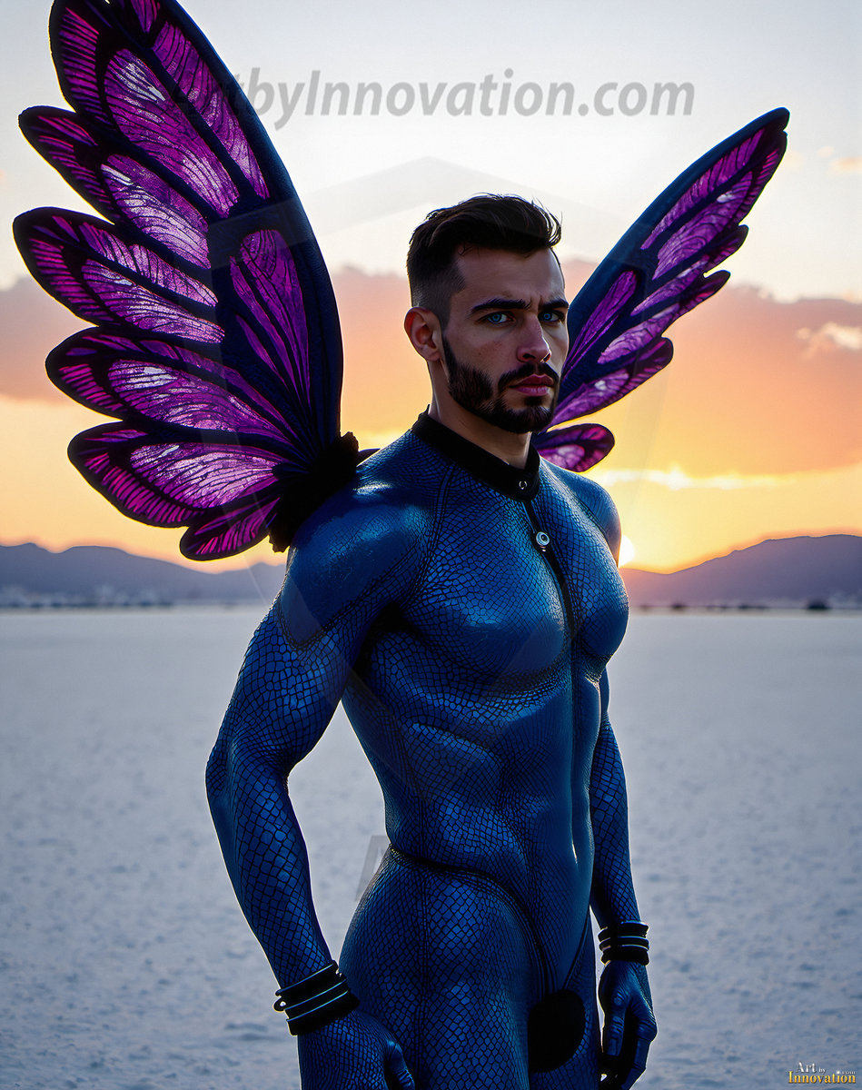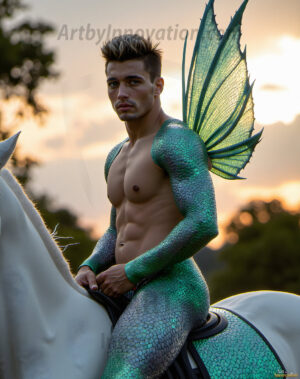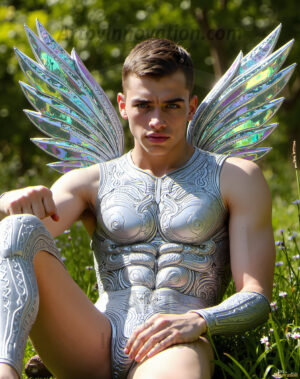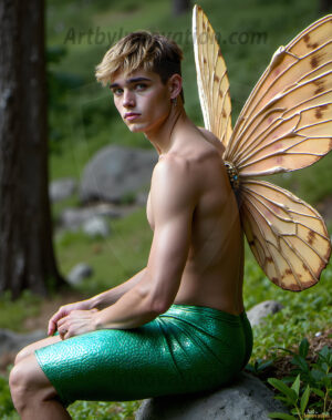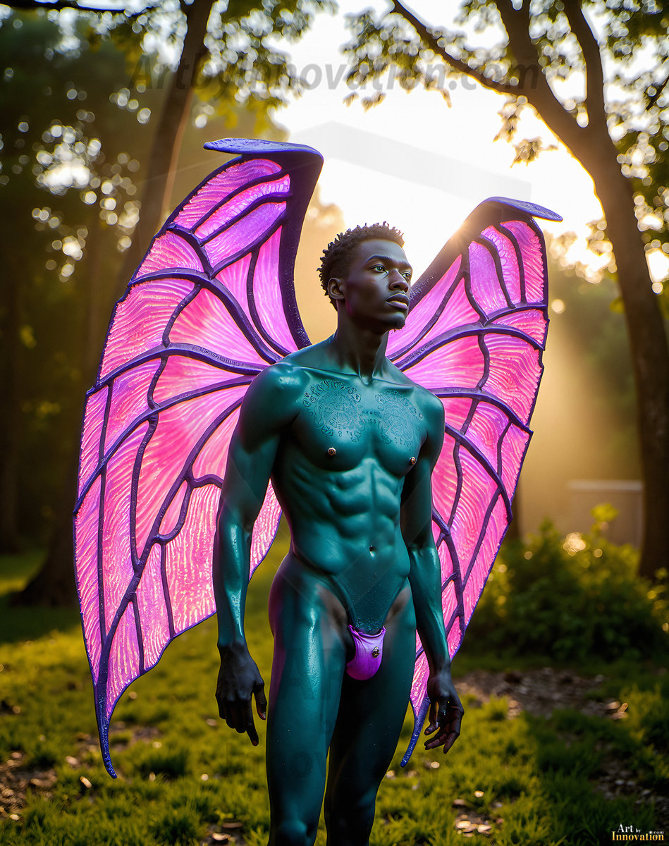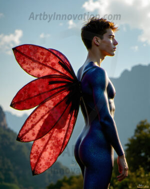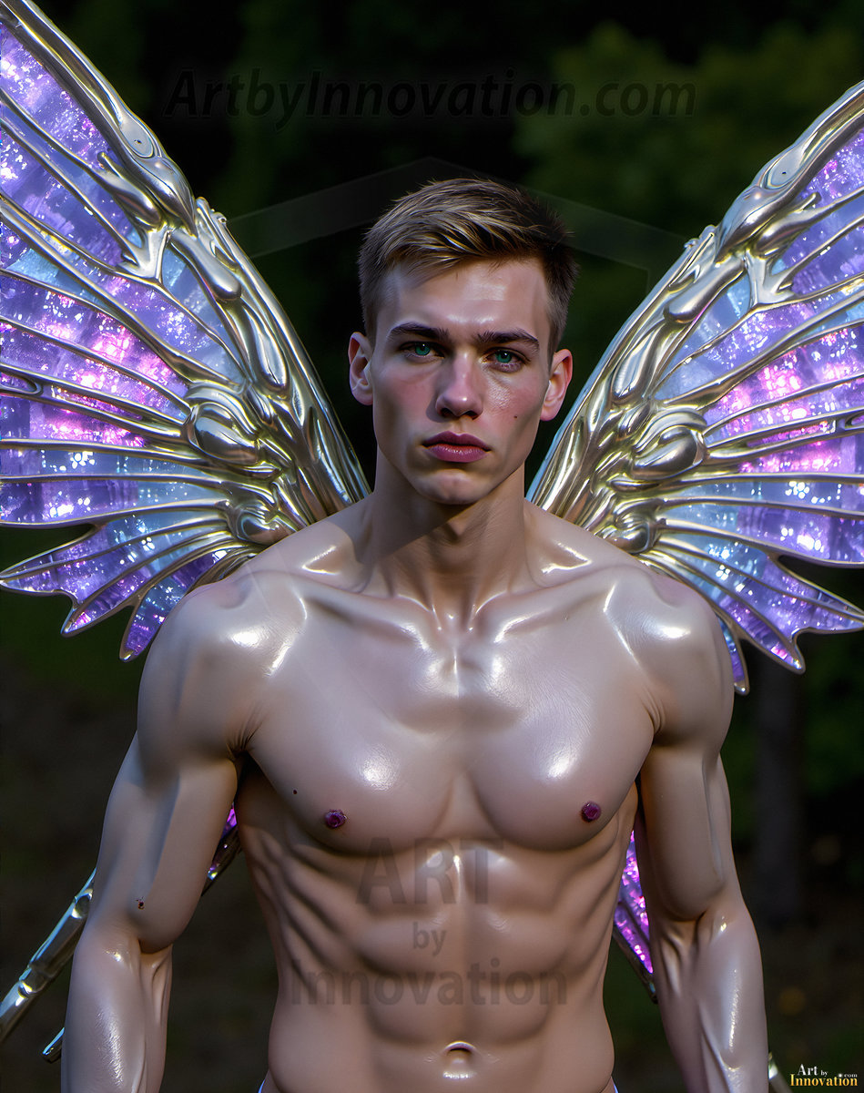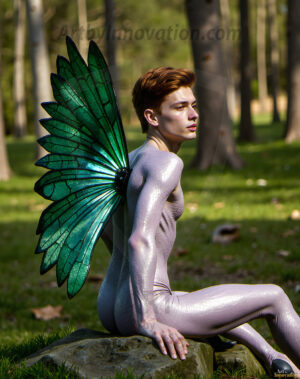 Capturing the pristine and elusive male fairy — brought to life through the power of AI. Imagine a realm where handsome young men possess enormous shimmering crystal wings, vibrant and radiant, capturing and reflecting the light of the environment in a mesmerizing way. Set in mysterious enchanted forests, each fairy exudes an otherworldly beauty and elegance that blurs the line between fantasy and reality. Created using Flux.1, ComfyUI, and Stable Diffusion by © Jeff Dupler | Art by Innovation | https://www.artbyinnovation.com
