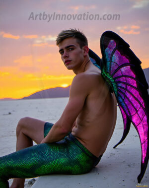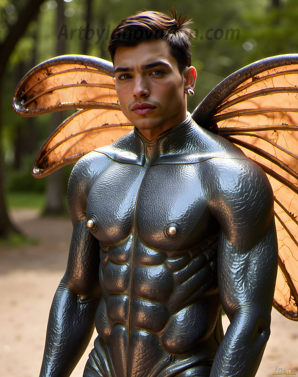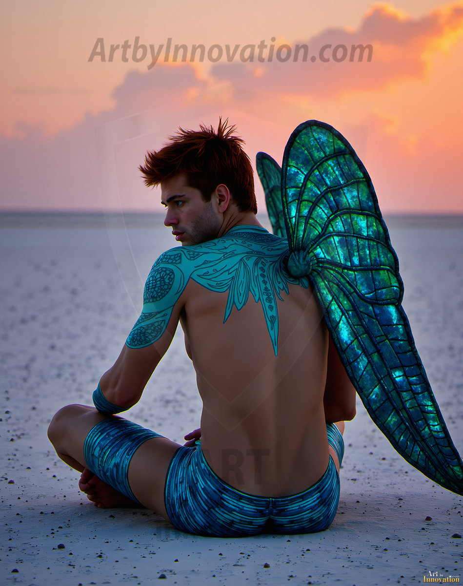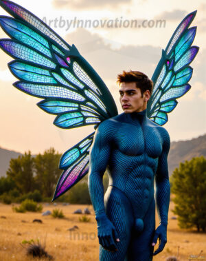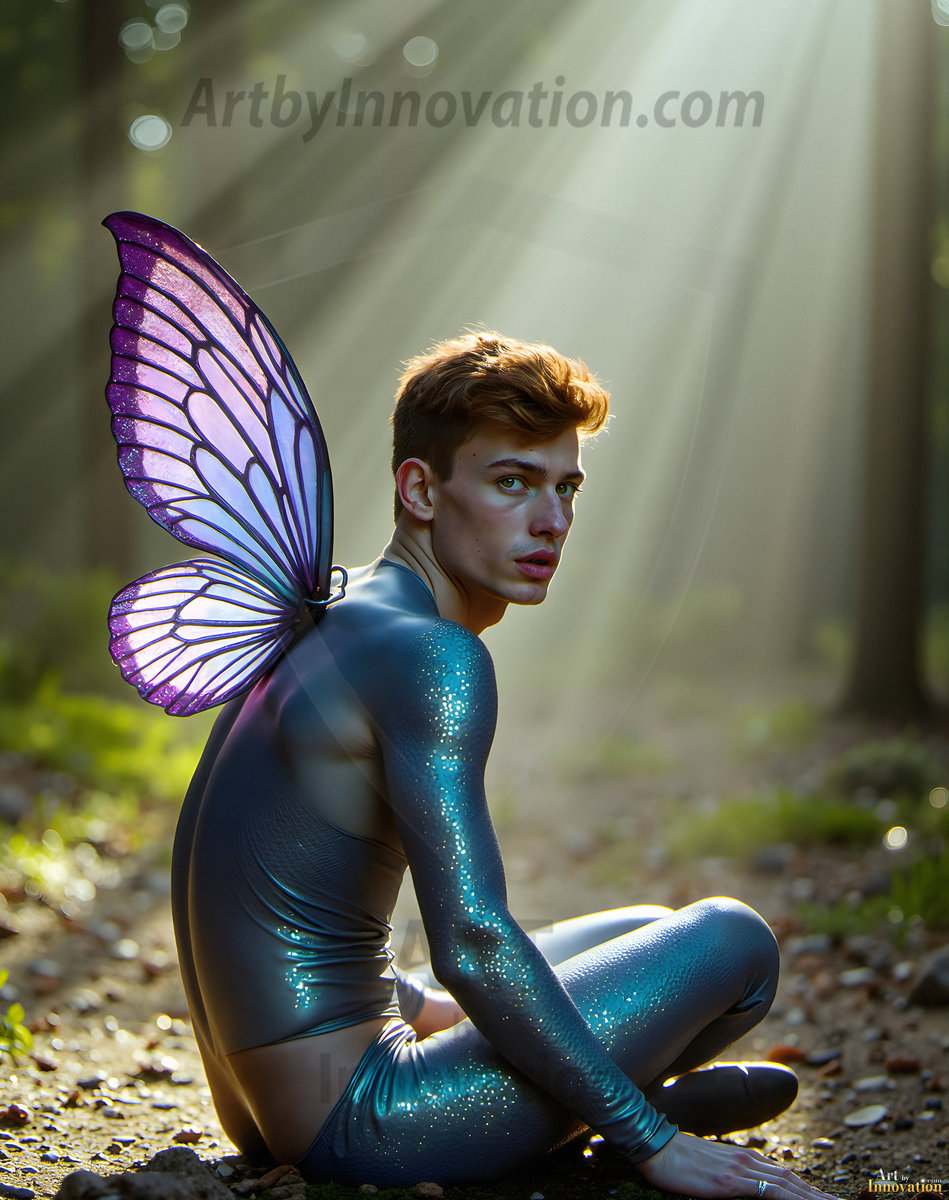 Capturing the pristine and elusive male fairy — brought to life through the power of AI. Imagine a realm where handsome young men possess enormous shimmering crystal wings, vibrant and radiant, capturing and reflecting the light of the environment in a mesmerizing way. Set in mysterious enchanted forests, each fairy exudes an otherworldly beauty and elegance that blurs the line between fantasy and reality. Created using Flux.1, ComfyUI, and Stable Diffusion by © Jeff Dupler | Art by Innovation | https://www.artbyinnovation.com