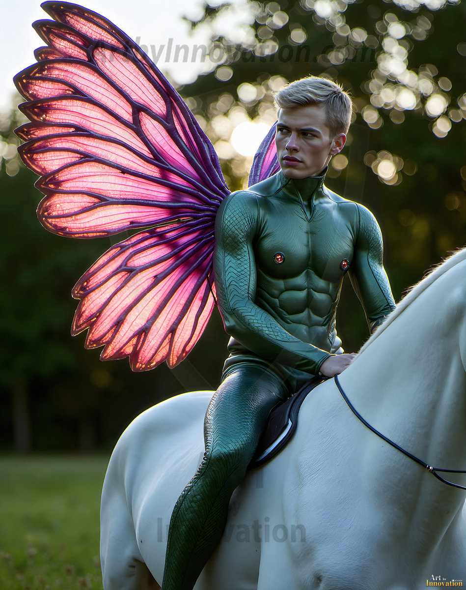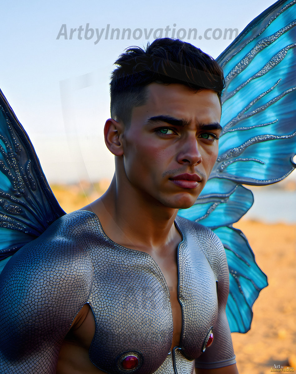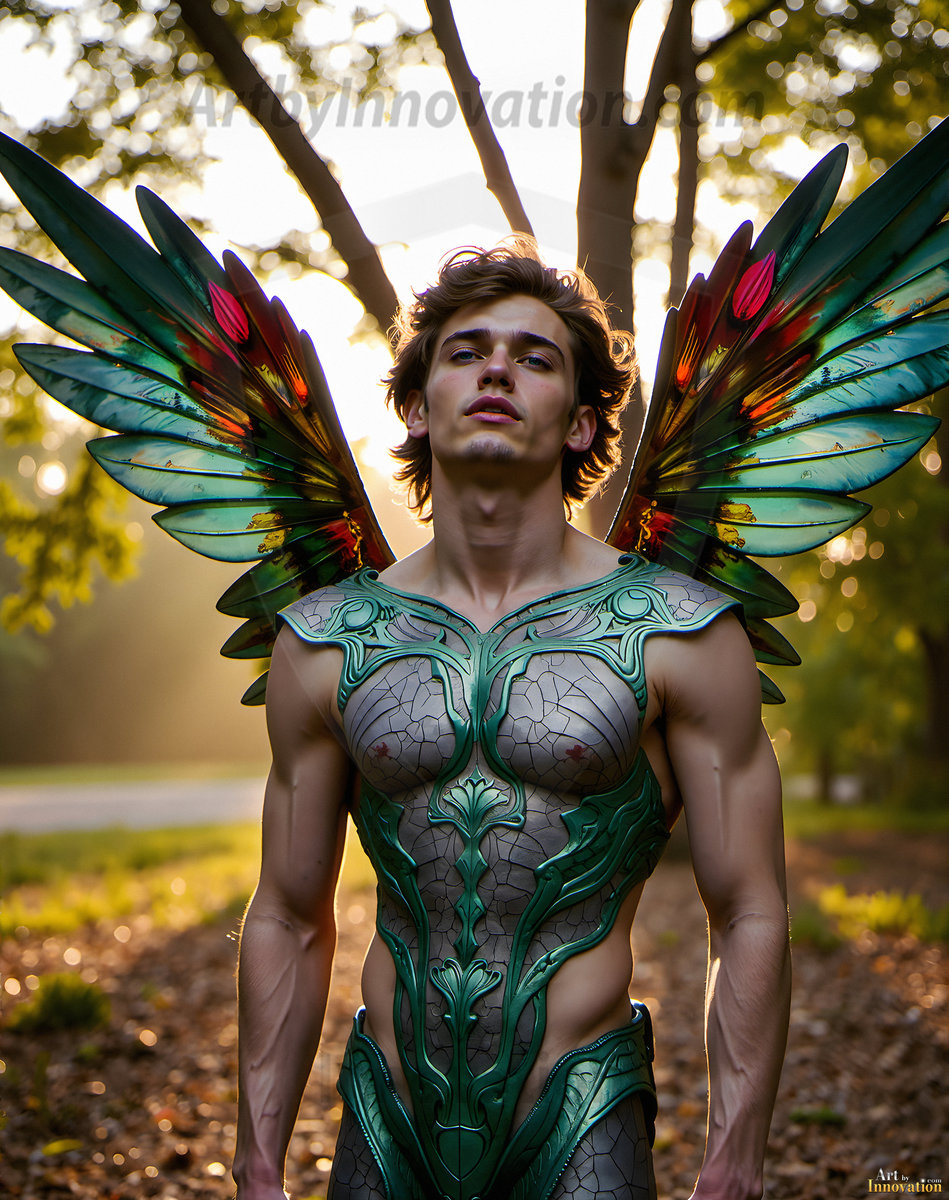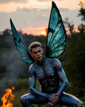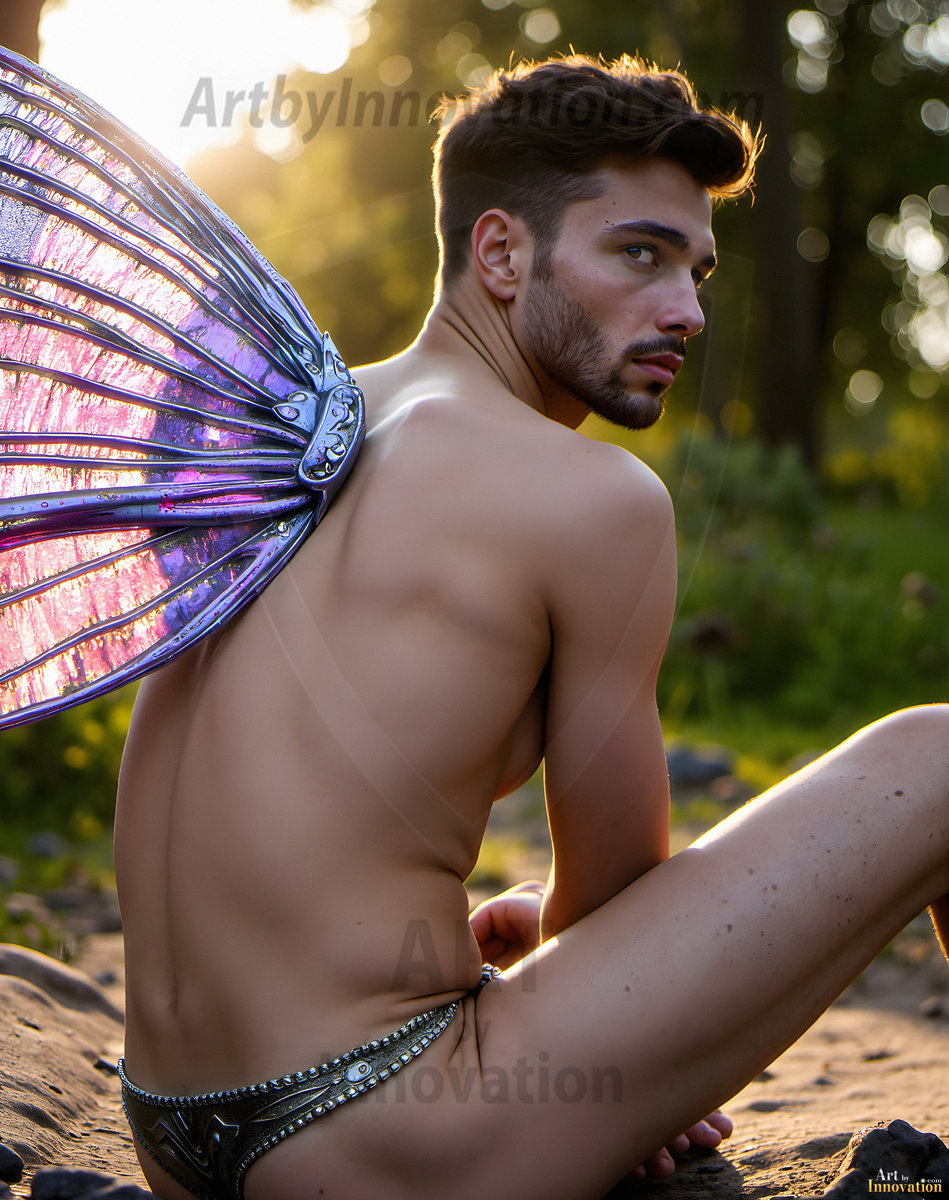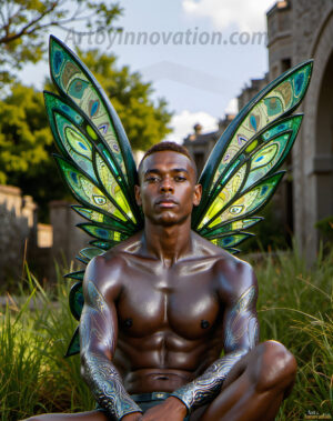 Capturing the pristine and elusive male fairy — brought to life through the power of AI. Imagine a realm where handsome young men possess enormous shimmering crystal wings, vibrant and radiant, capturing and reflecting the light of the environment in a mesmerizing way. Set in mysterious enchanted forests, each fairy exudes an otherworldly beauty and elegance that blurs the line between fantasy and reality. Created using Flux.1, ComfyUI, and Stable Diffusion by © Jeff Dupler | Art by Innovation | https://www.artbyinnovation.com