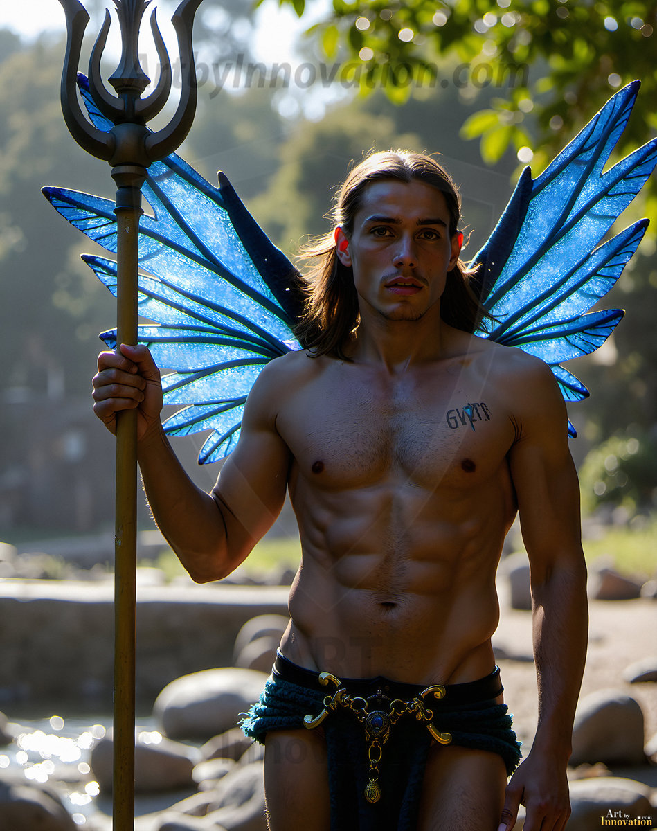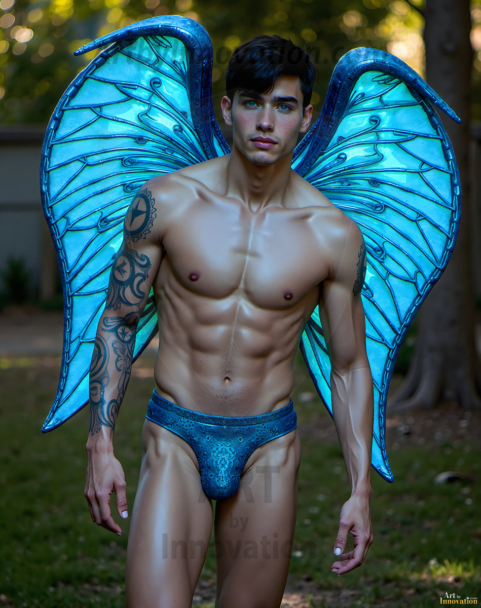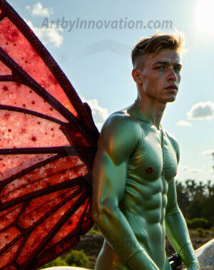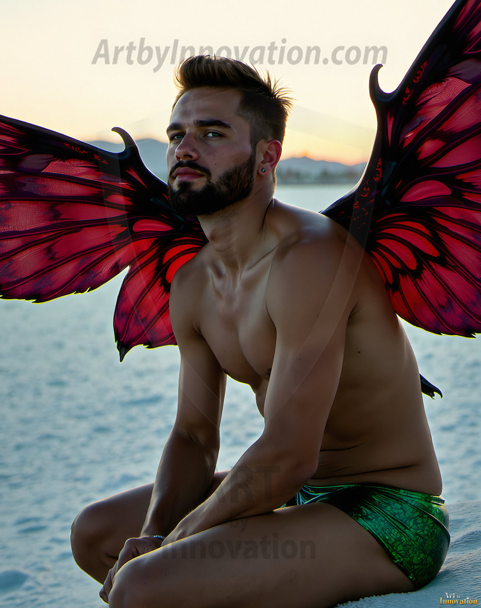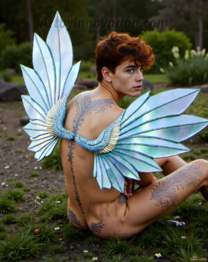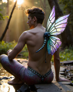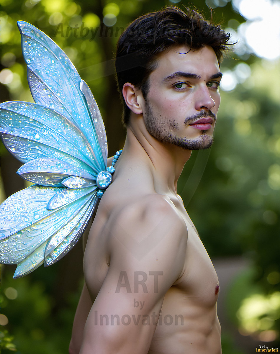 Capturing the pristine and elusive male fairy — brought to life through the power of AI. Imagine a realm where handsome young men possess enormous shimmering crystal wings, vibrant and radiant, capturing and reflecting the light of the environment in a mesmerizing way. Set in mysterious enchanted forests, each fairy exudes an otherworldly beauty and elegance that blurs the line between fantasy and reality. Created using Flux.1, ComfyUI, and Stable Diffusion by © Jeff Dupler | Art by Innovation | https://www.artbyinnovation.com