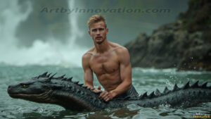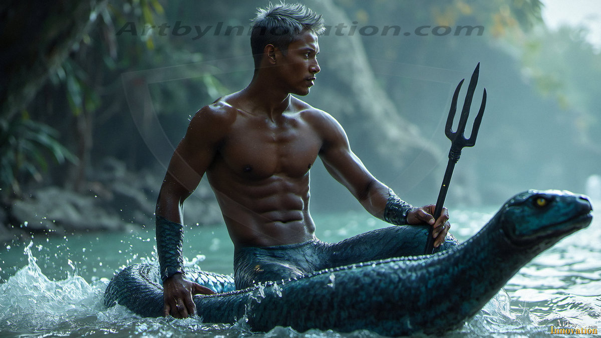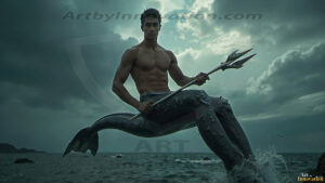 Rise from the depths with the Warriors of the Sea. This AI-generated mermen art collection features handsome warriors from all walks of life — shirtless men with shimmering obsidian fish tails, tridents in hand, set against stormy ocean backdrops and breathtaking vibrant coral reefs. Featuring diverse body types and ethnicities, from lean and athletic to powerfully muscular, each image captures the raw beauty and fierce power of the male merman. Created using Flux.1, Midjourney, ComfyUI, and refined with Adobe Photoshop by © Jeff Dupler | Art by Innovation | https://www.artbyinnovation.com