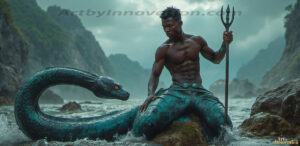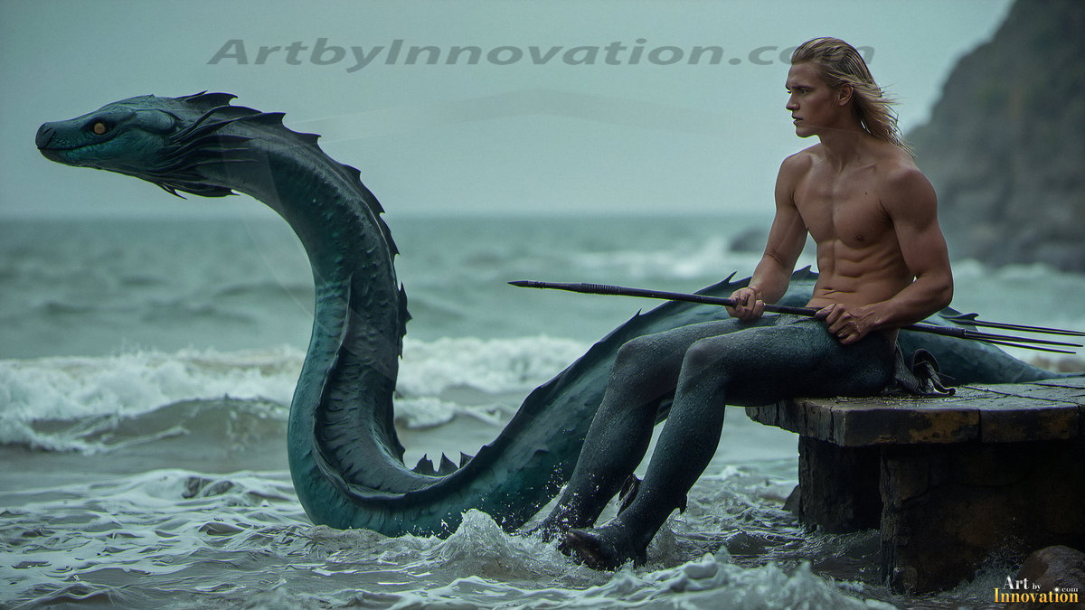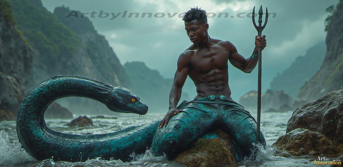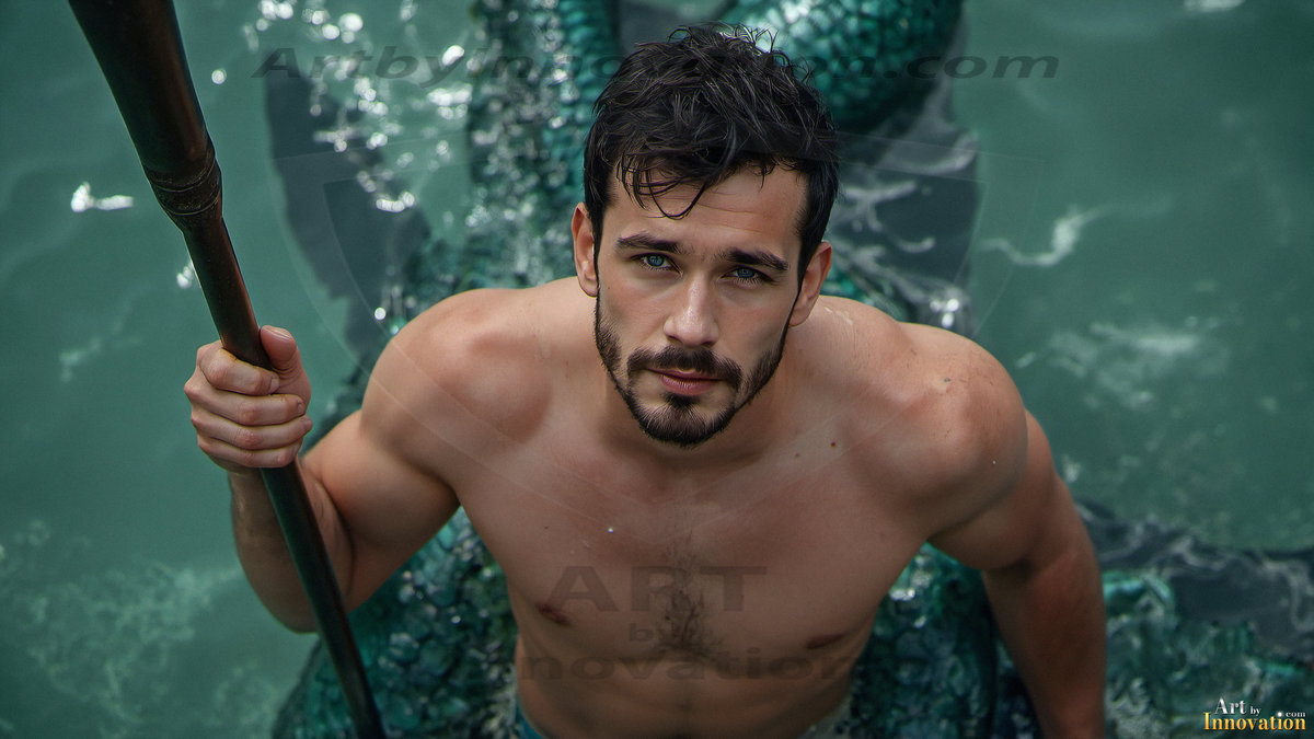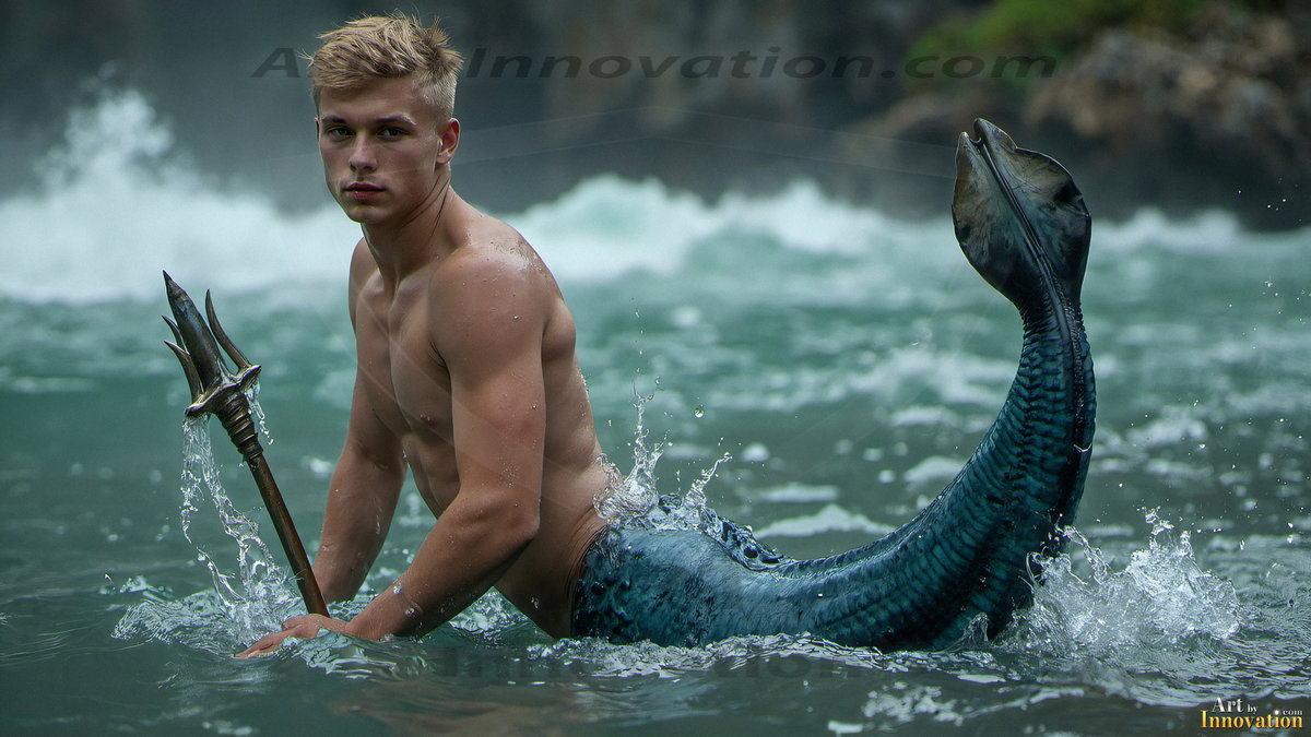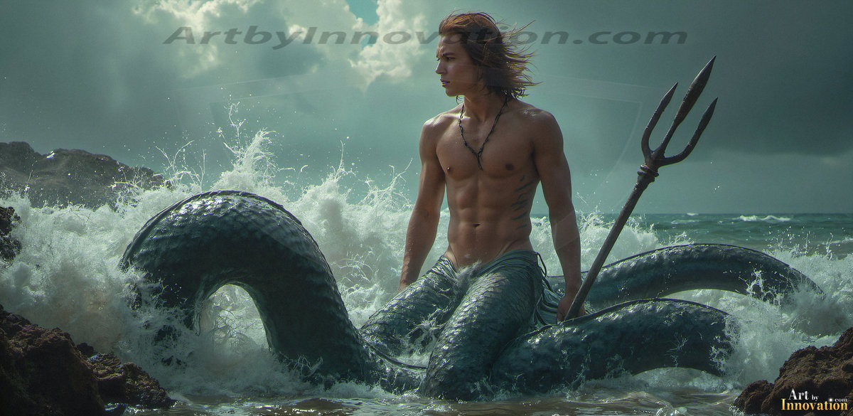 Rise from the depths with the Warriors of the Sea. This AI-generated mermen art collection features handsome warriors from all walks of life — shirtless men with shimmering obsidian fish tails, tridents in hand, set against stormy ocean backdrops and breathtaking vibrant coral reefs. Featuring diverse body types and ethnicities, from lean and athletic to powerfully muscular, each image captures the raw beauty and fierce power of the male merman. Created using Flux.1, Midjourney, ComfyUI, and refined with Adobe Photoshop by © Jeff Dupler | Art by Innovation | https://www.artbyinnovation.com