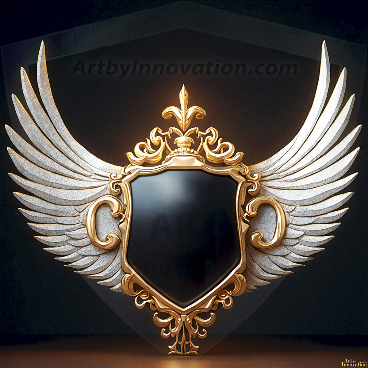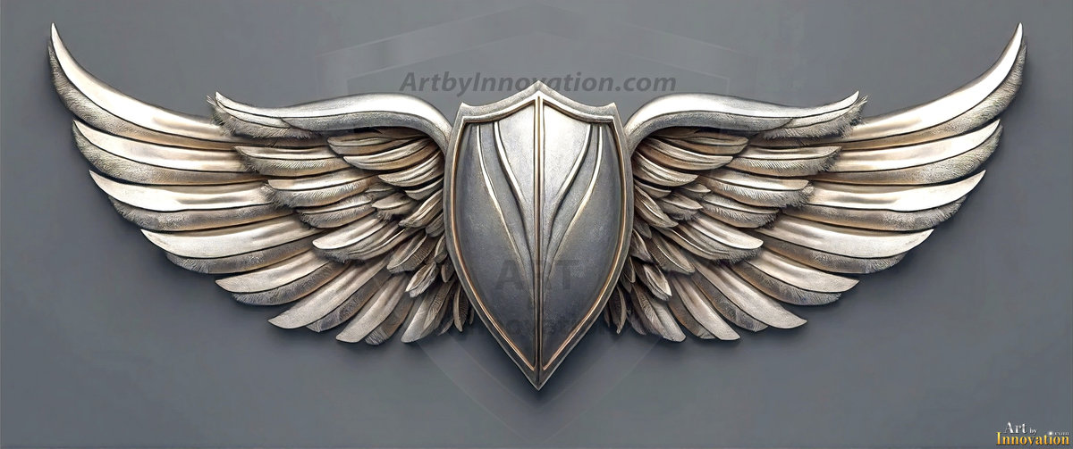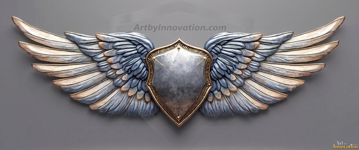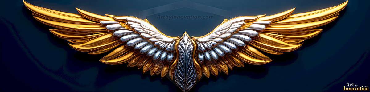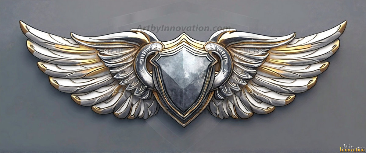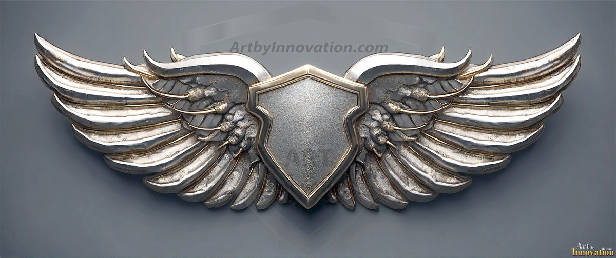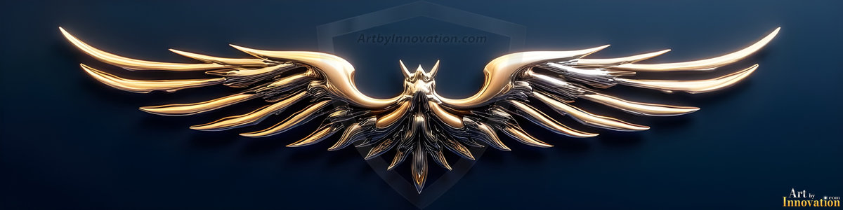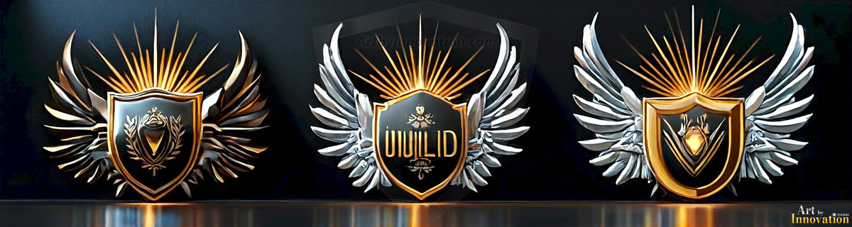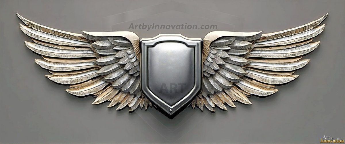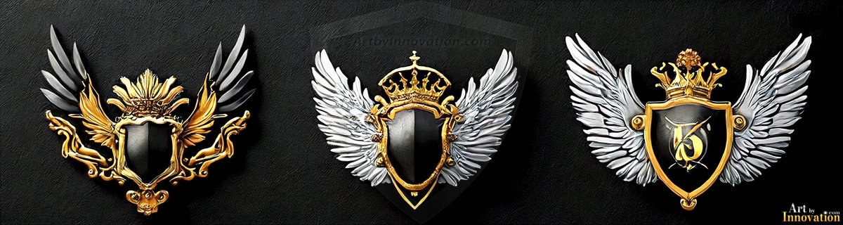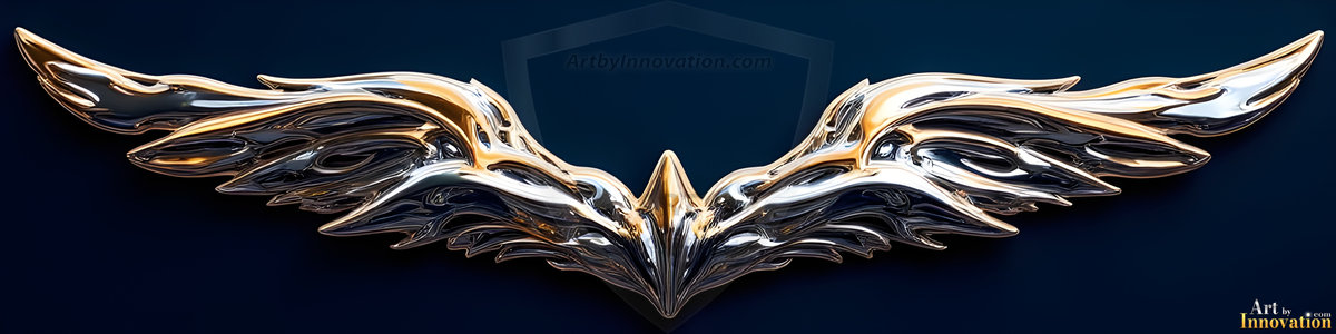 Power. Elegance. Freedom. The Winged Logo Design collection features 369 AI-generated winged logo concepts — eagle wings, angel wings, falcon wings, and art deco wing designs in metallic gold, silver, blue, and chrome finishes. Each design has a blank center plate ready for your company name. From compact corporate badges to dramatic spread-wing compositions, this collection has a winged logo for every brand personality. Available as UHD digital downloads. Created using AI, edited in Photoshop, by © Jeff Dupler | Art by Innovation | https://www.artbyinnovation.com