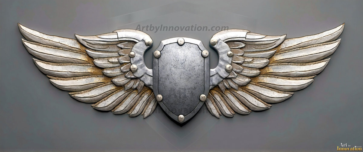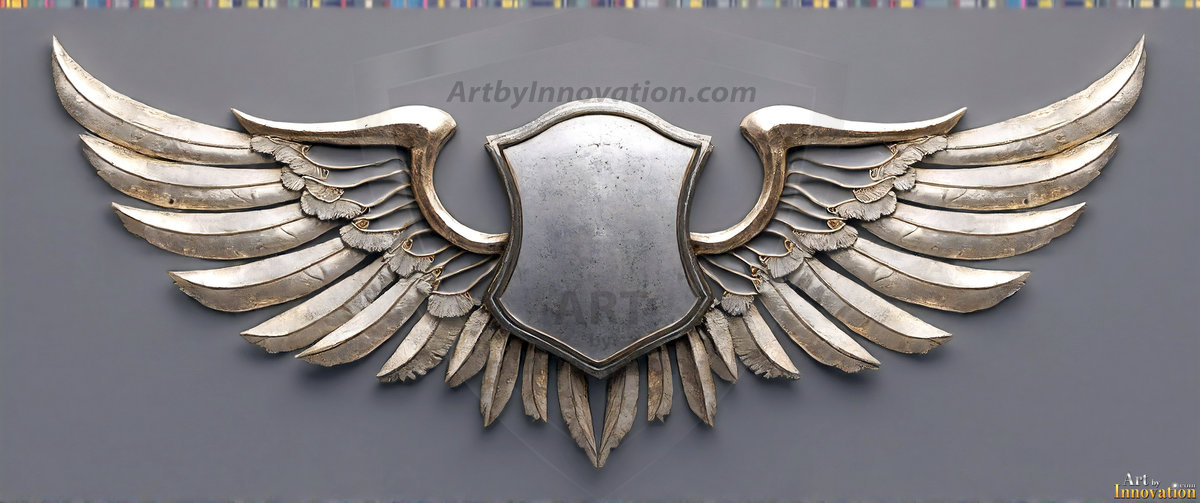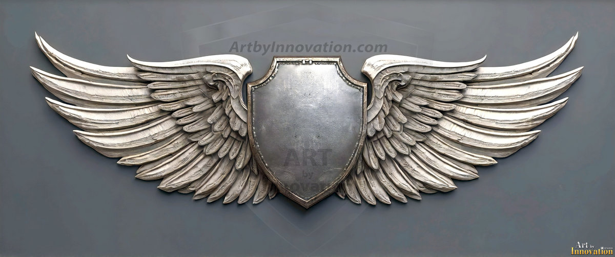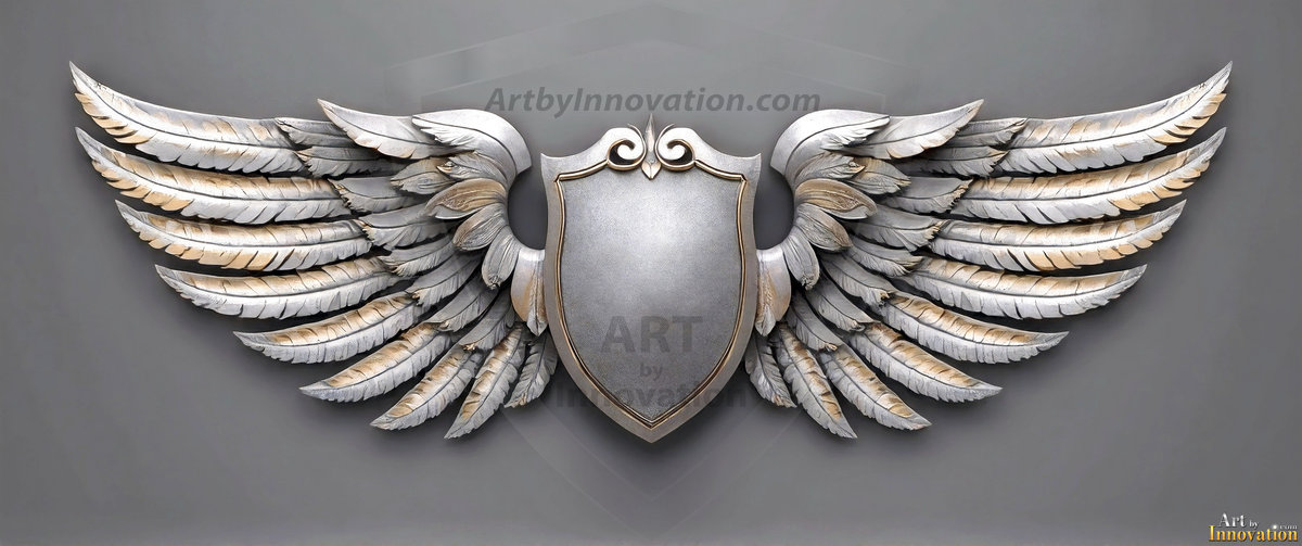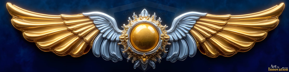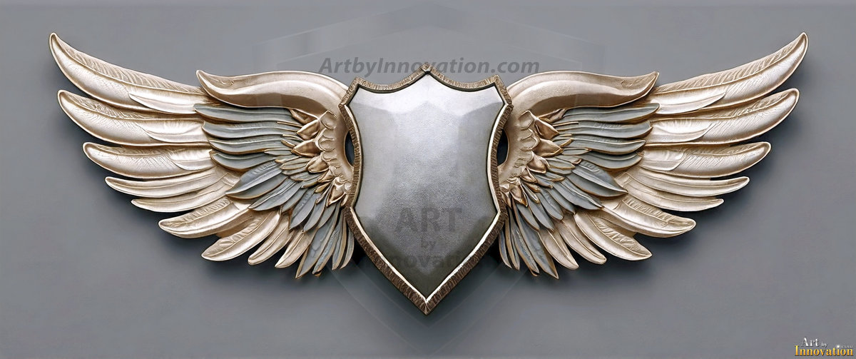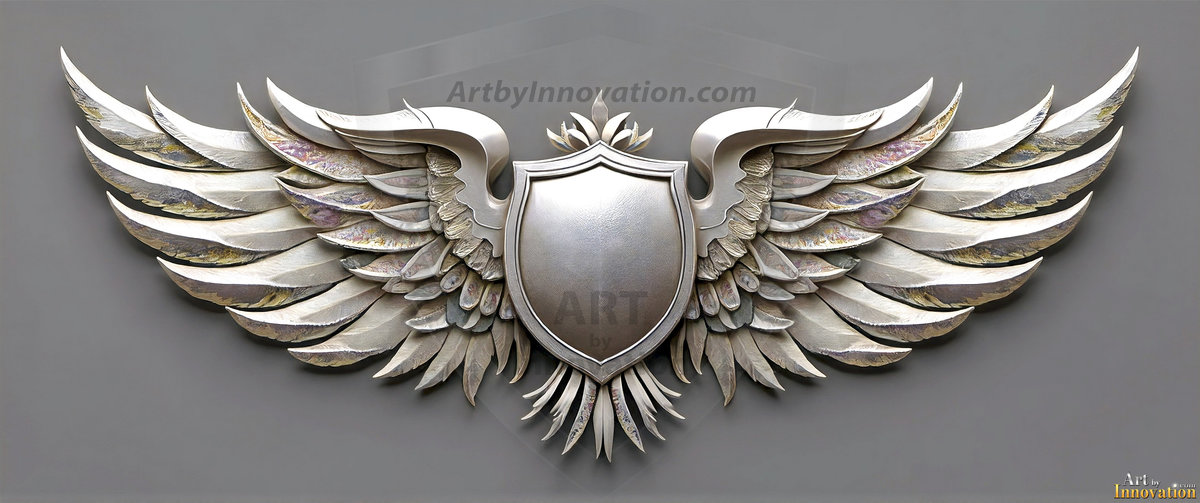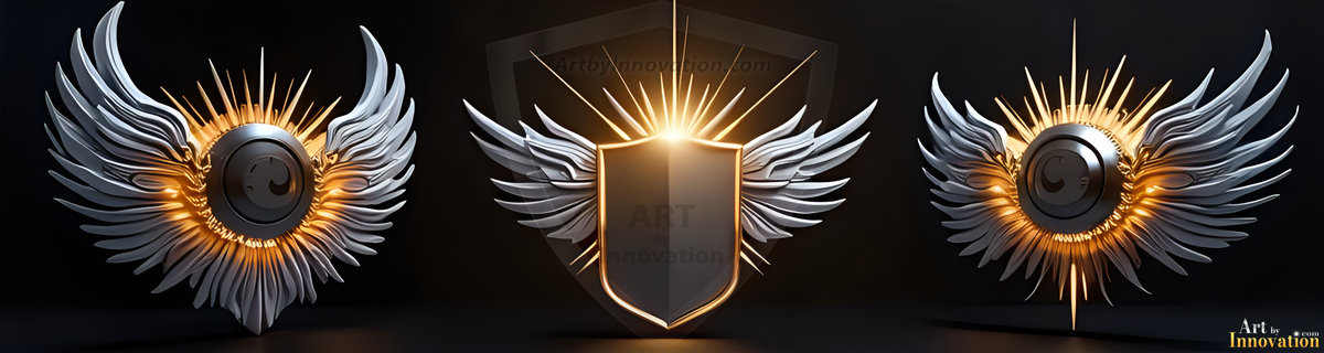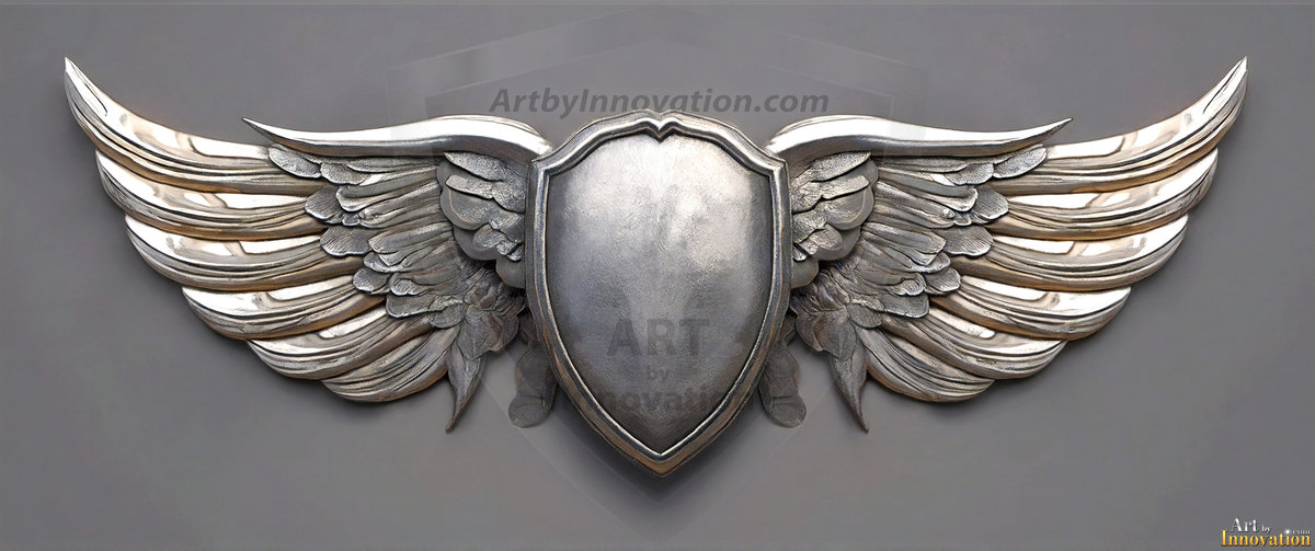 Power. Elegance. Freedom. The Winged Logo Design collection features 369 AI-generated winged logo concepts — eagle wings, angel wings, falcon wings, and art deco wing designs in metallic gold, silver, blue, and chrome finishes. Each design has a blank center plate ready for your company name. From compact corporate badges to dramatic spread-wing compositions, this collection has a winged logo for every brand personality. Available as UHD digital downloads. Created using AI, edited in Photoshop, by © Jeff Dupler | Art by Innovation | https://www.artbyinnovation.com