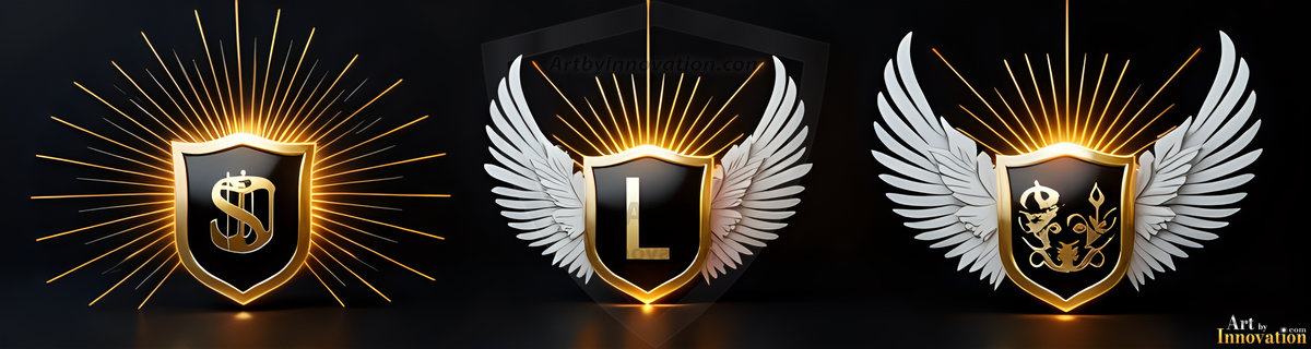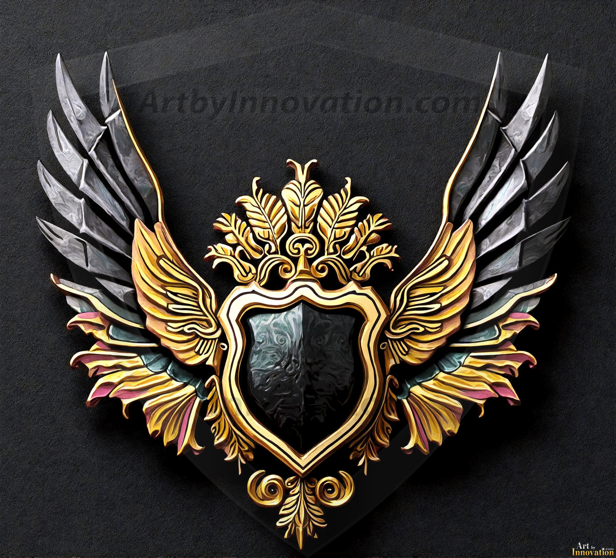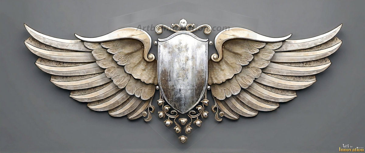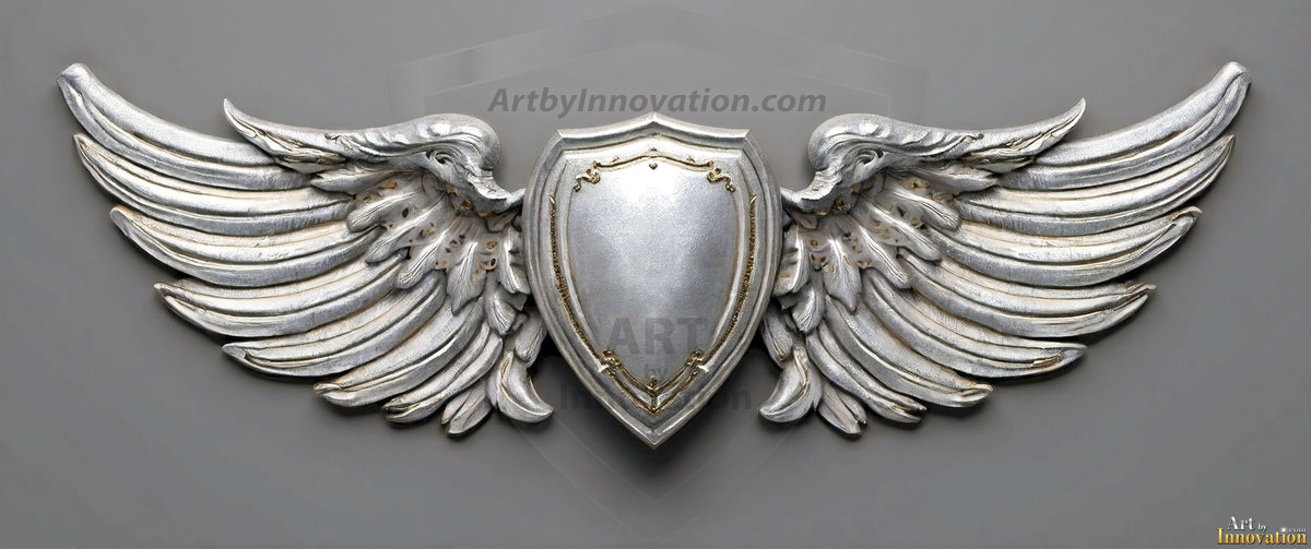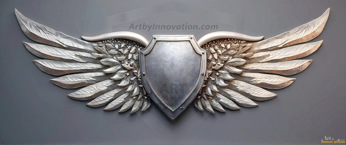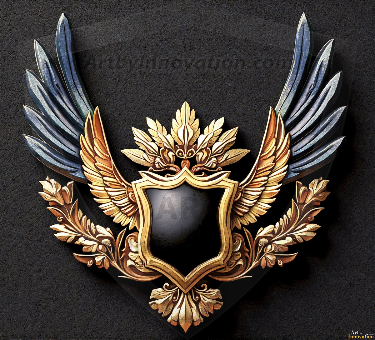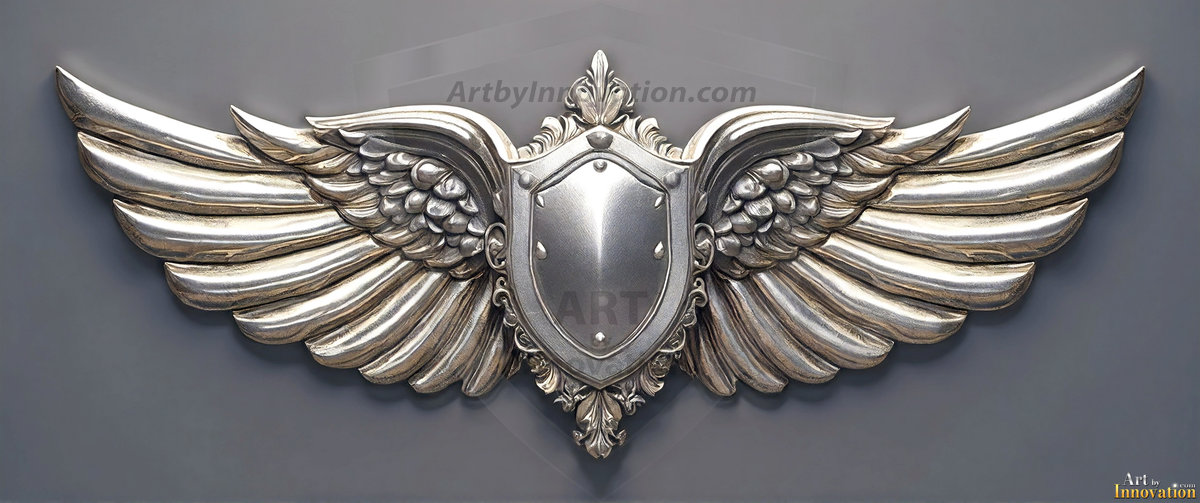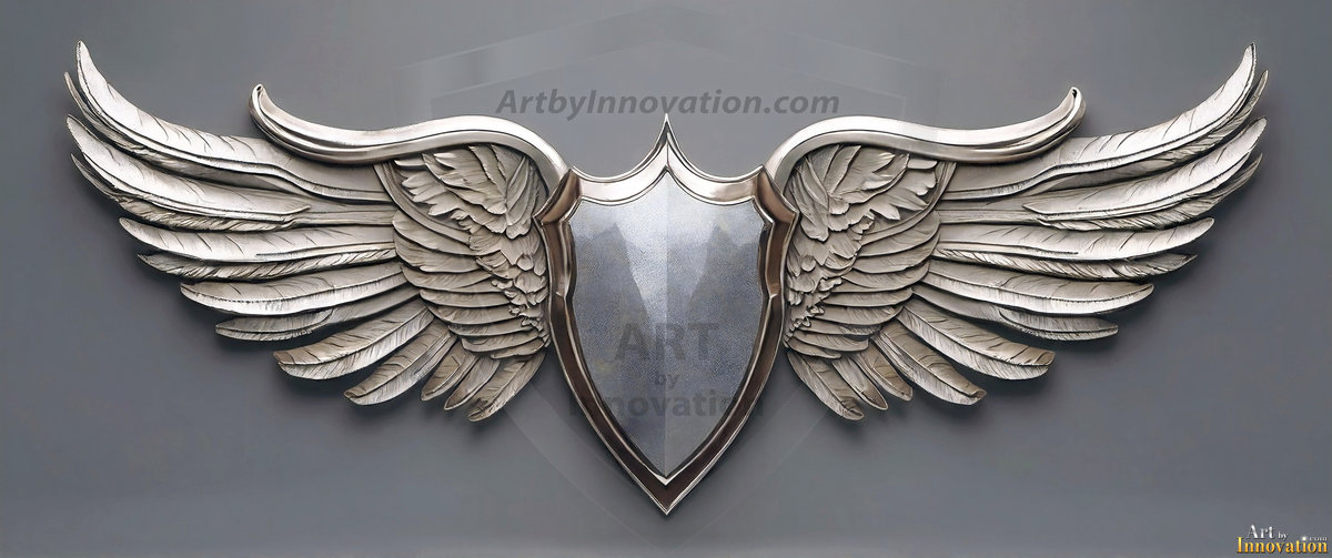 Power. Elegance. Freedom. The Winged Logo Design collection features 369 AI-generated winged logo concepts — eagle wings, angel wings, falcon wings, and art deco wing designs in metallic gold, silver, blue, and chrome finishes. Each design has a blank center plate ready for your company name. From compact corporate badges to dramatic spread-wing compositions, this collection has a winged logo for every brand personality. Available as UHD digital downloads. Created using AI, edited in Photoshop, by © Jeff Dupler | Art by Innovation | https://www.artbyinnovation.com