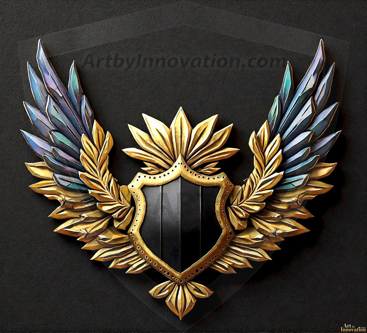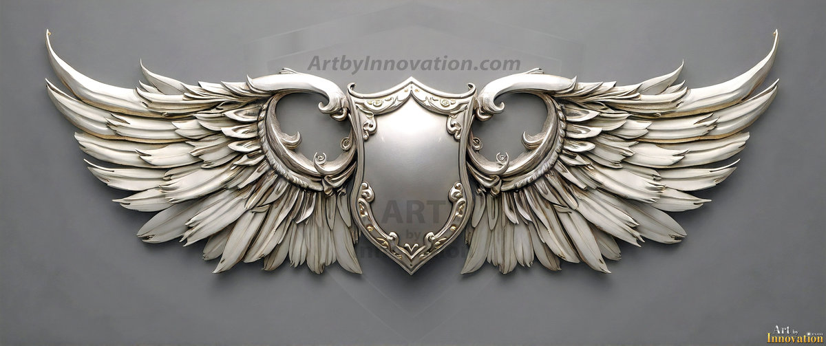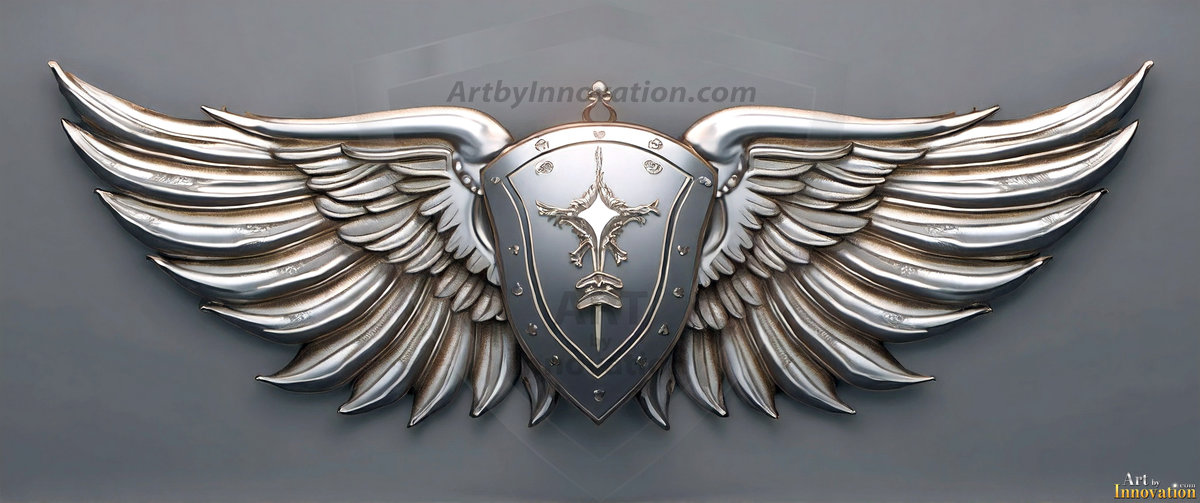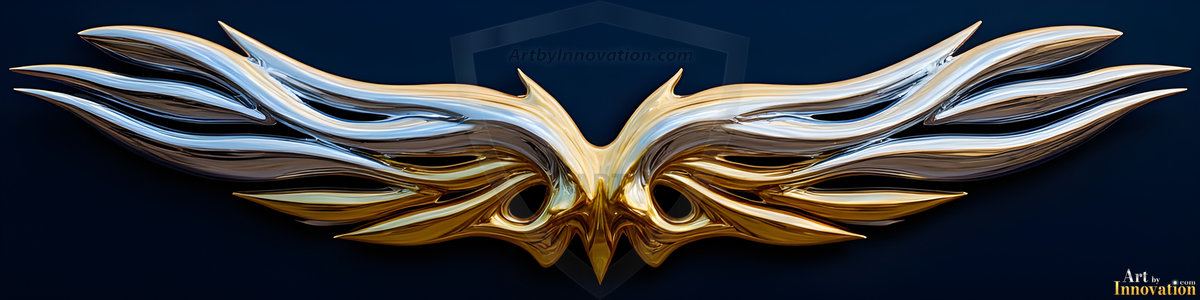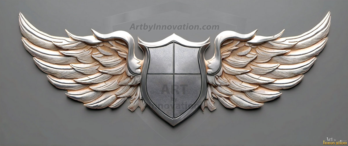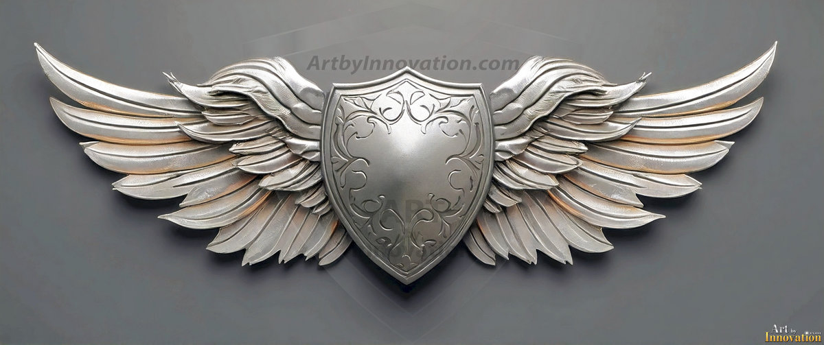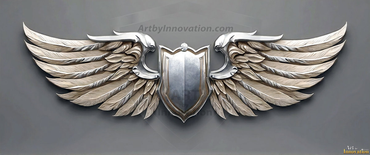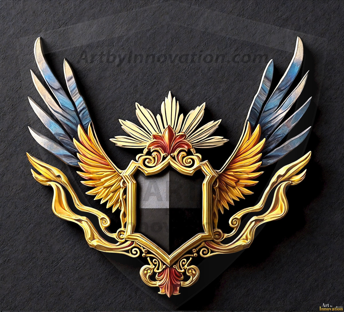 Power. Elegance. Freedom. The Winged Logo Design collection features 369 AI-generated winged logo concepts — eagle wings, angel wings, falcon wings, and art deco wing designs in metallic gold, silver, blue, and chrome finishes. Each design has a blank center plate ready for your company name. From compact corporate badges to dramatic spread-wing compositions, this collection has a winged logo for every brand personality. Available as UHD digital downloads. Created using AI, edited in Photoshop, by © Jeff Dupler | Art by Innovation | https://www.artbyinnovation.com