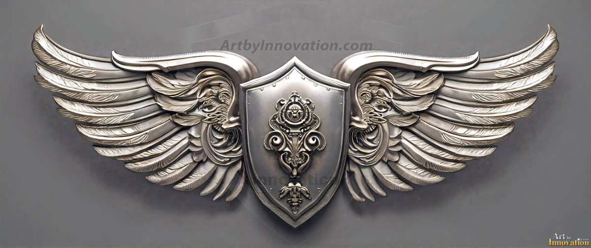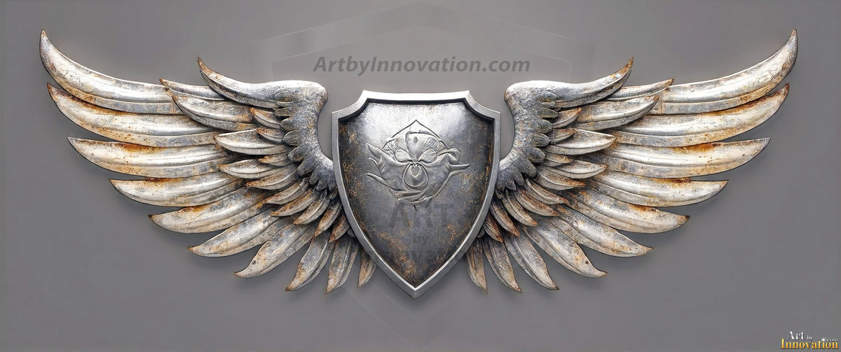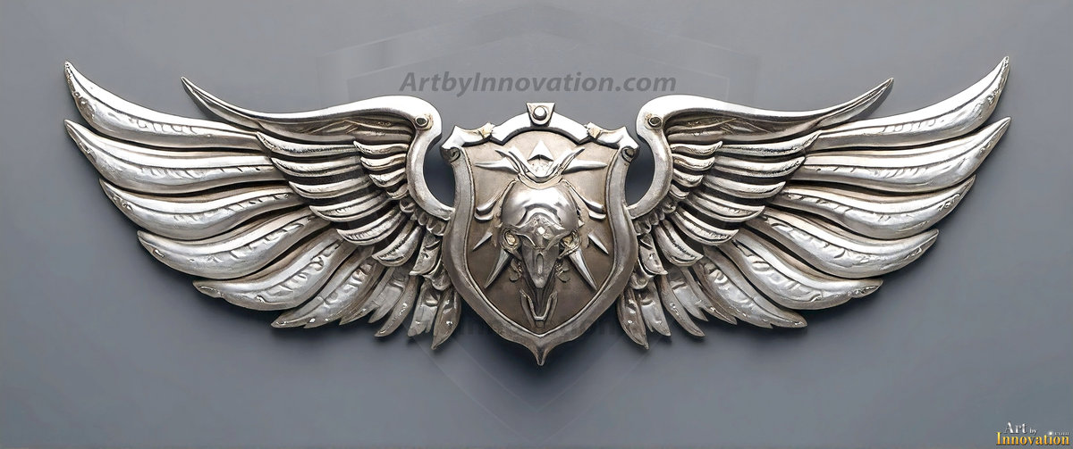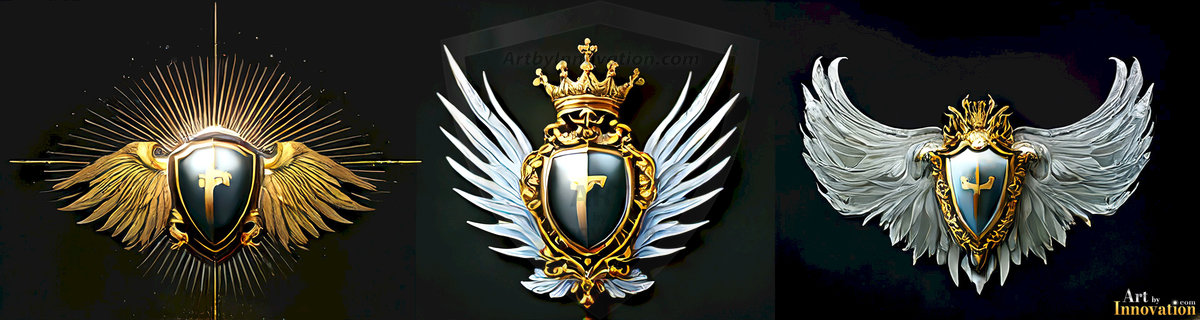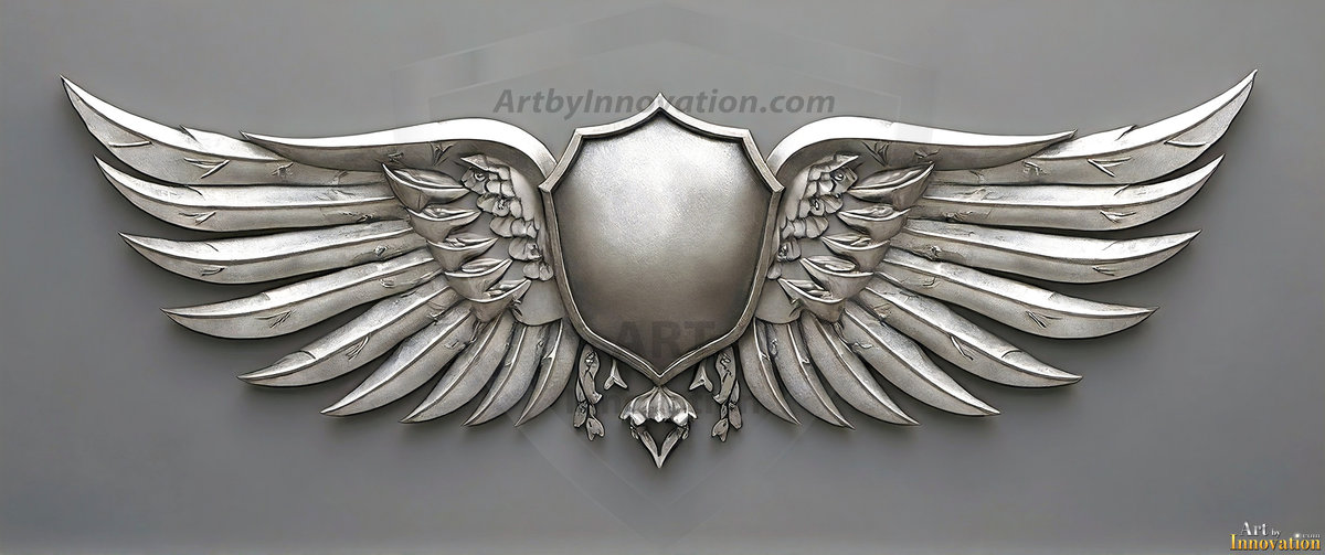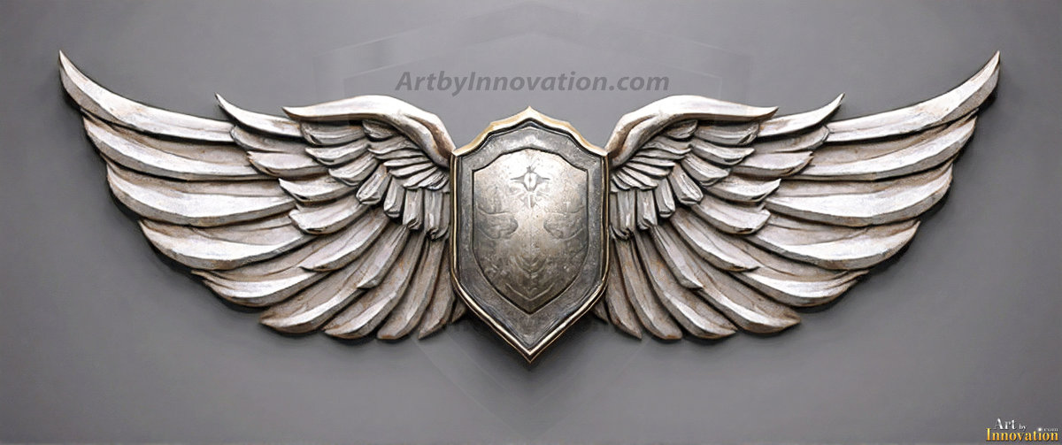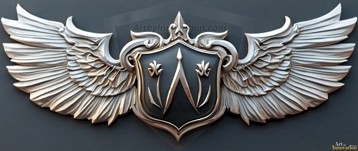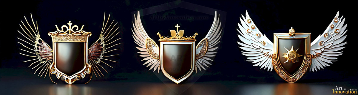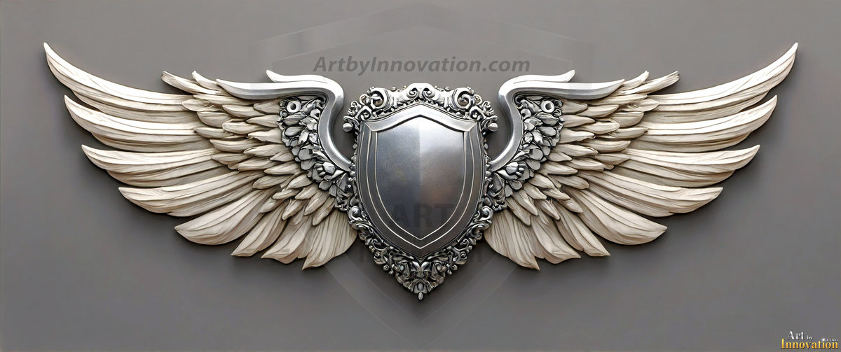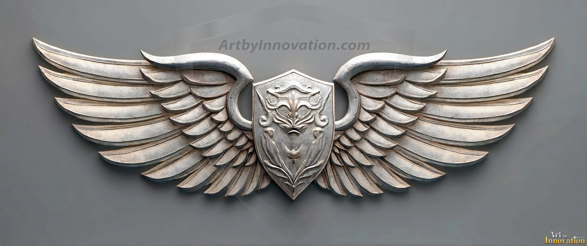 Power. Elegance. Freedom. The Winged Logo Design collection features 369 AI-generated winged logo concepts — eagle wings, angel wings, falcon wings, and art deco wing designs in metallic gold, silver, blue, and chrome finishes. Each design has a blank center plate ready for your company name. From compact corporate badges to dramatic spread-wing compositions, this collection has a winged logo for every brand personality. Available as UHD digital downloads. Created using AI, edited in Photoshop, by © Jeff Dupler | Art by Innovation | https://www.artbyinnovation.com