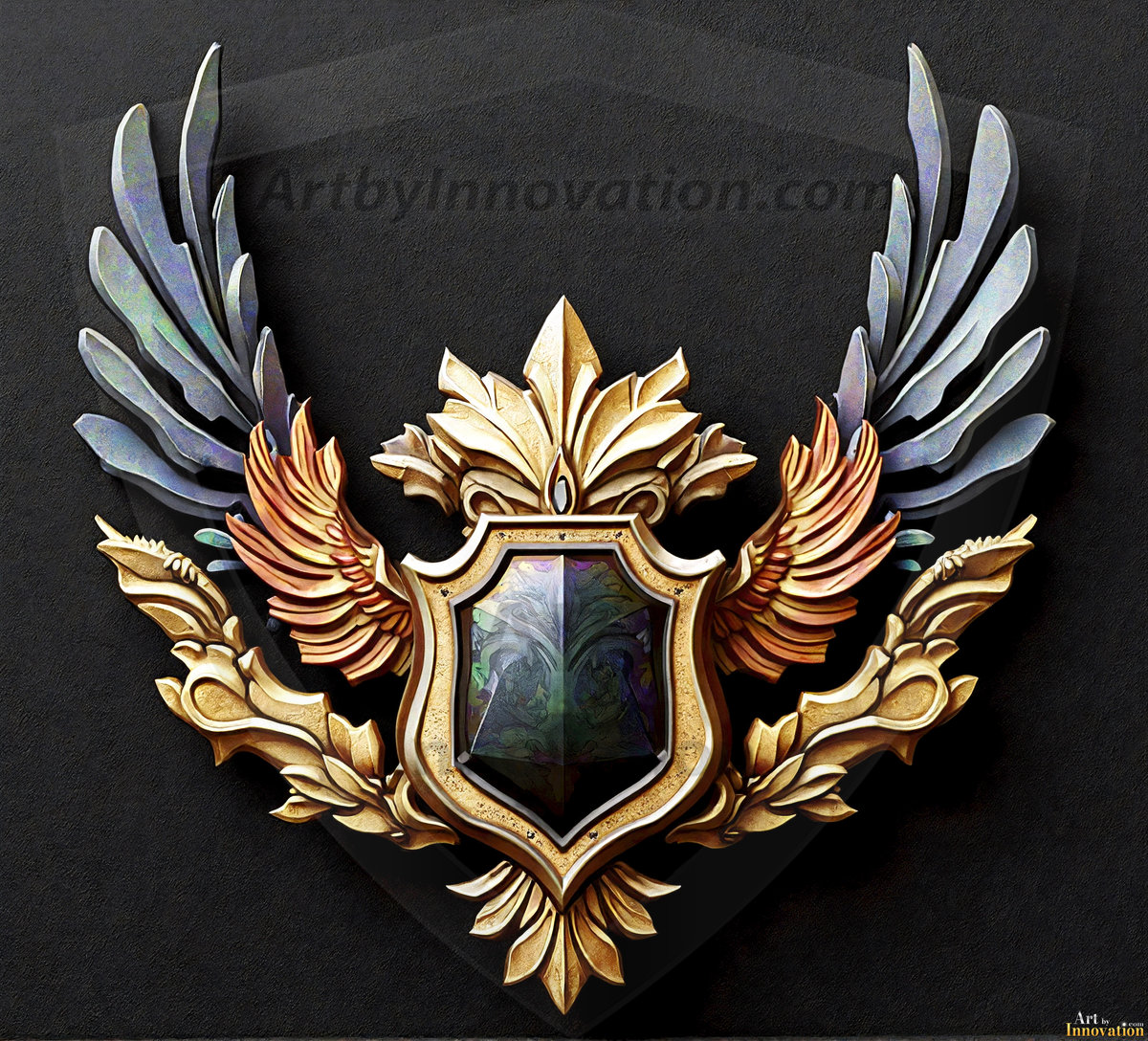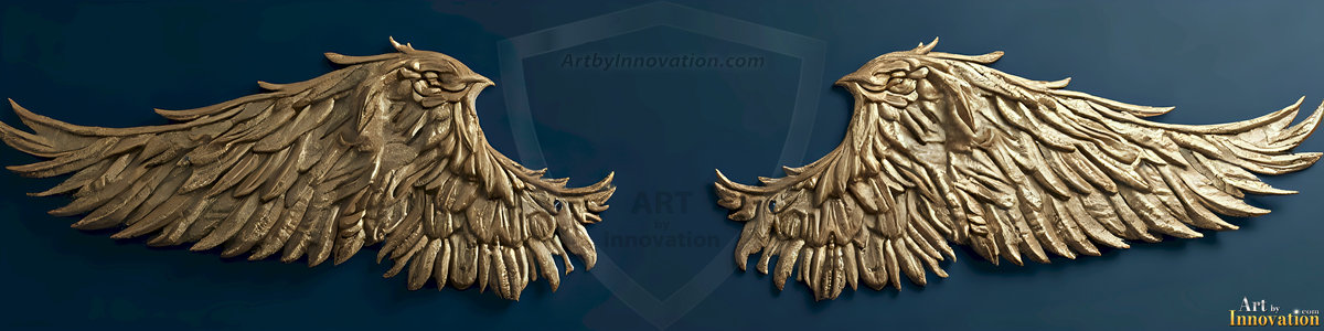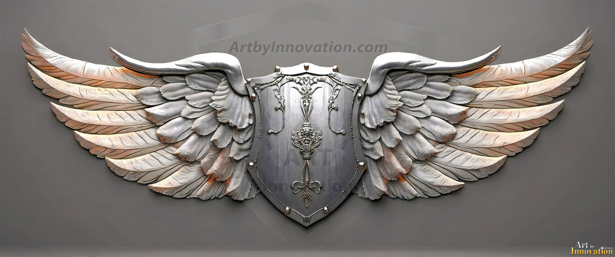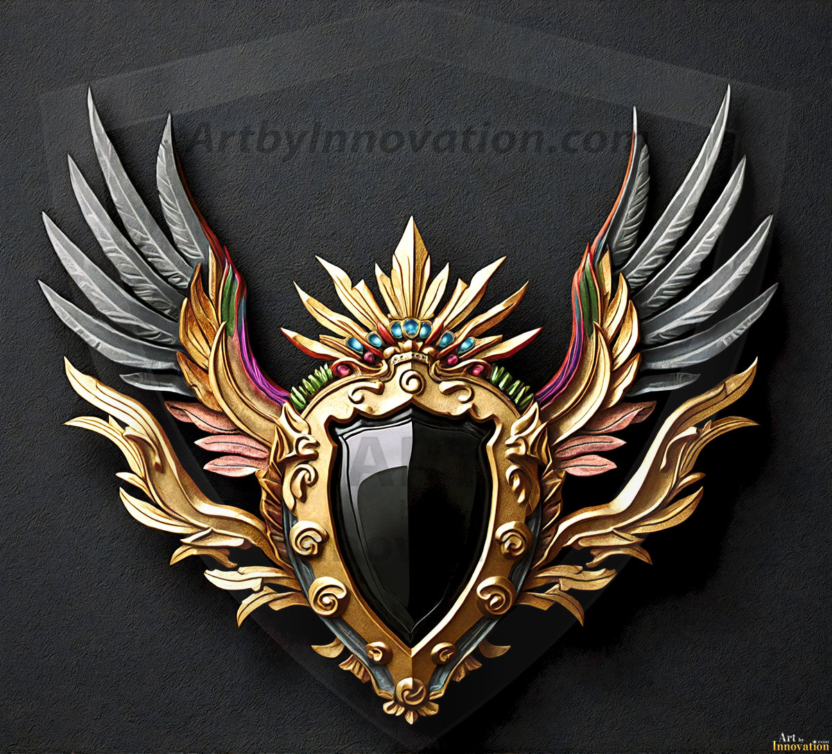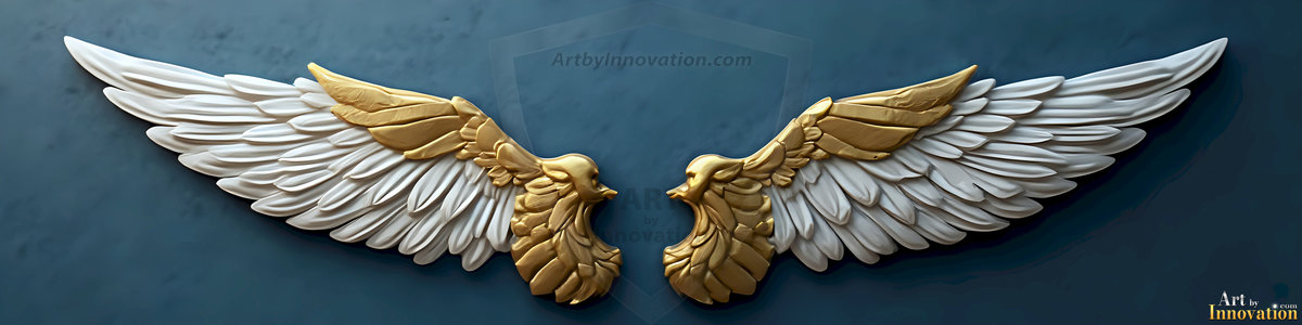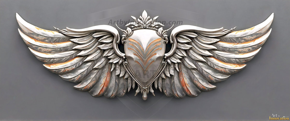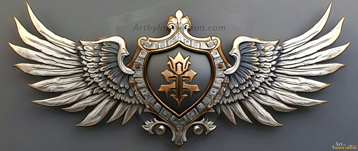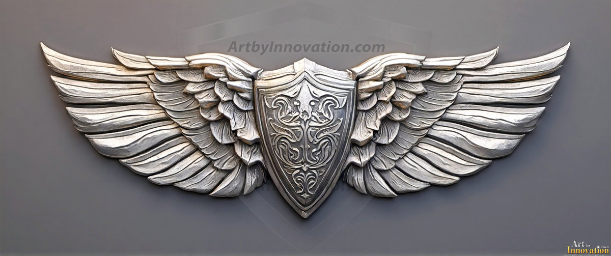 Power. Elegance. Freedom. The Winged Logo Design collection features 369 AI-generated winged logo concepts — eagle wings, angel wings, falcon wings, and art deco wing designs in metallic gold, silver, blue, and chrome finishes. Each design has a blank center plate ready for your company name. From compact corporate badges to dramatic spread-wing compositions, this collection has a winged logo for every brand personality. Available as UHD digital downloads. Created using AI, edited in Photoshop, by © Jeff Dupler | Art by Innovation | https://www.artbyinnovation.com