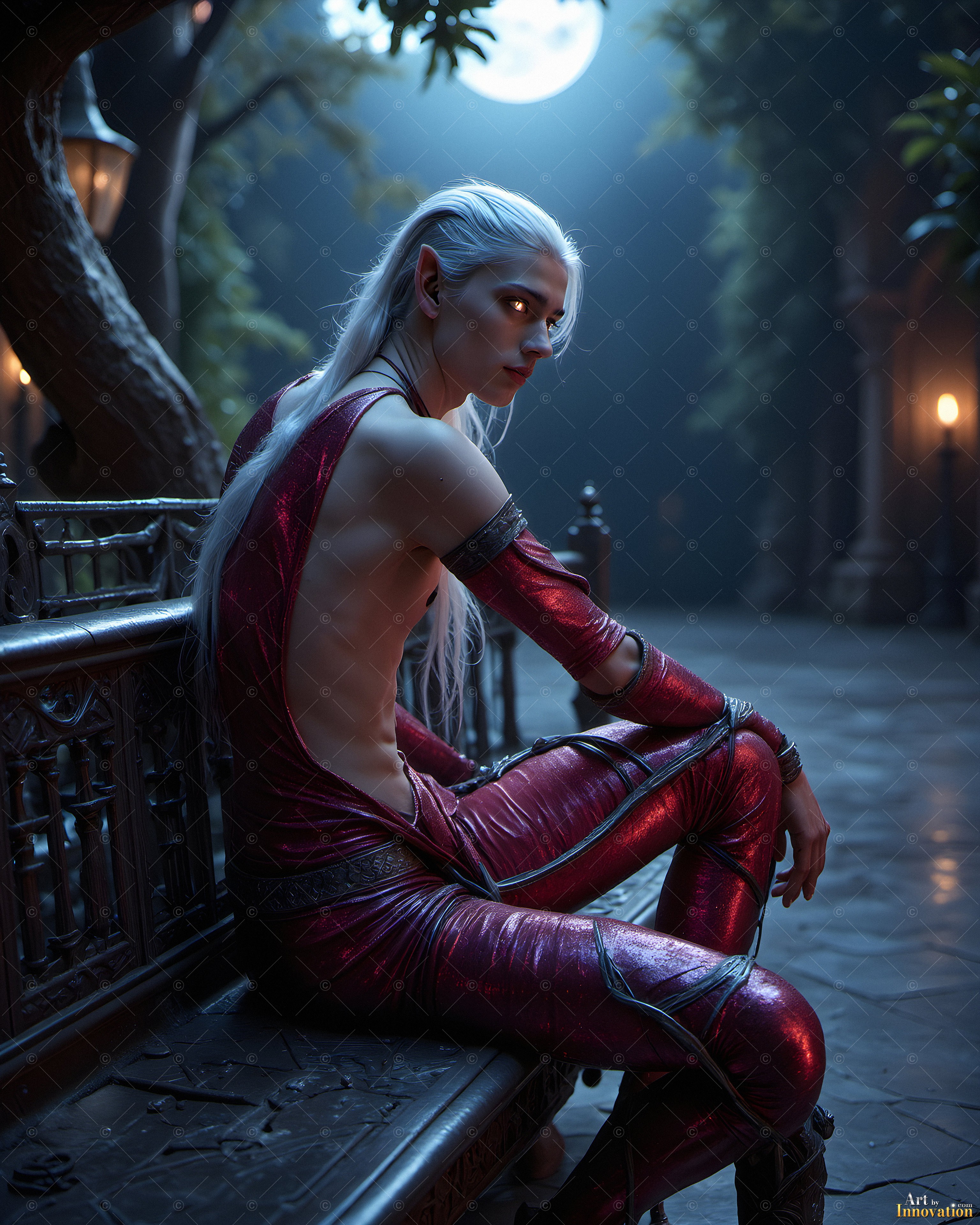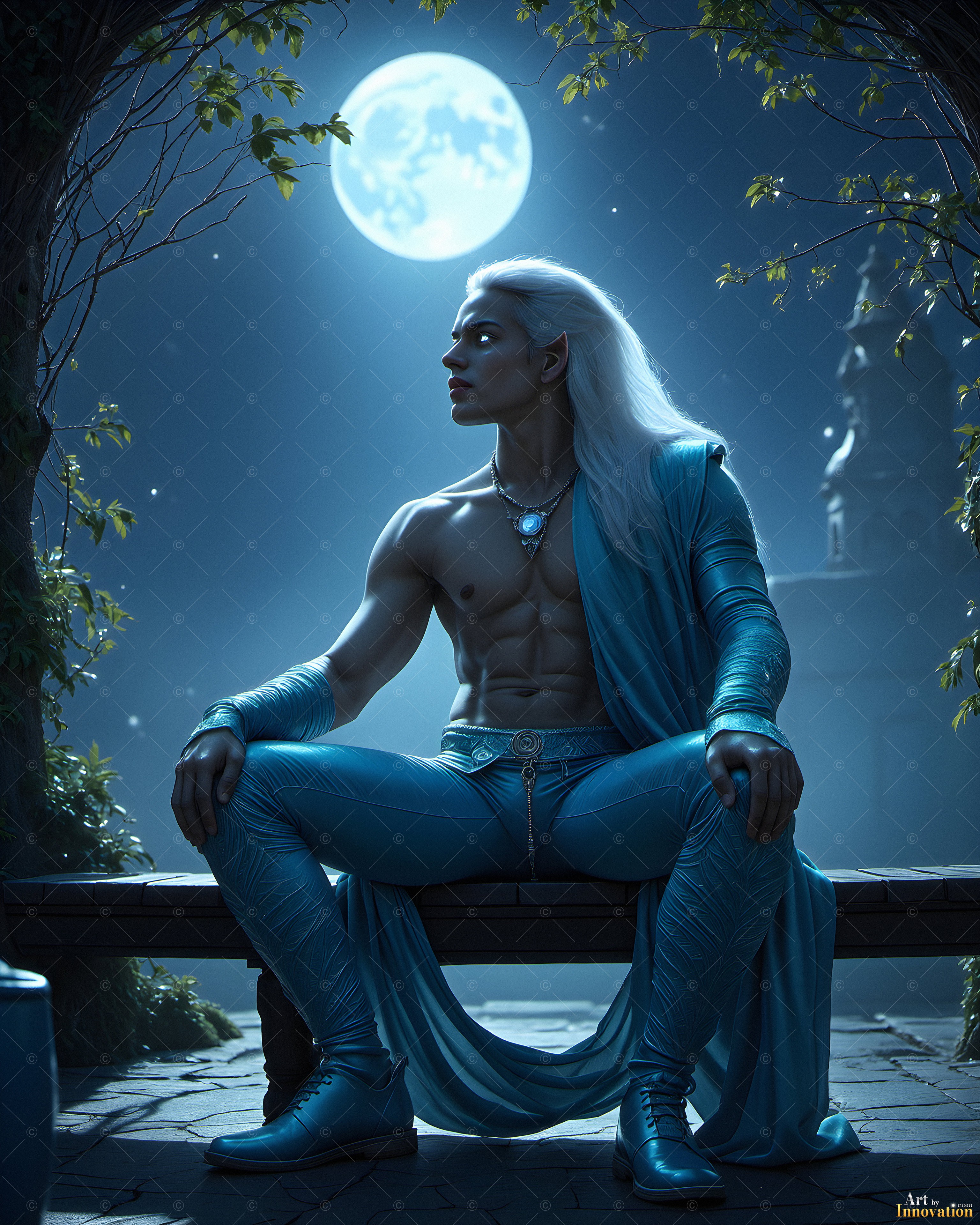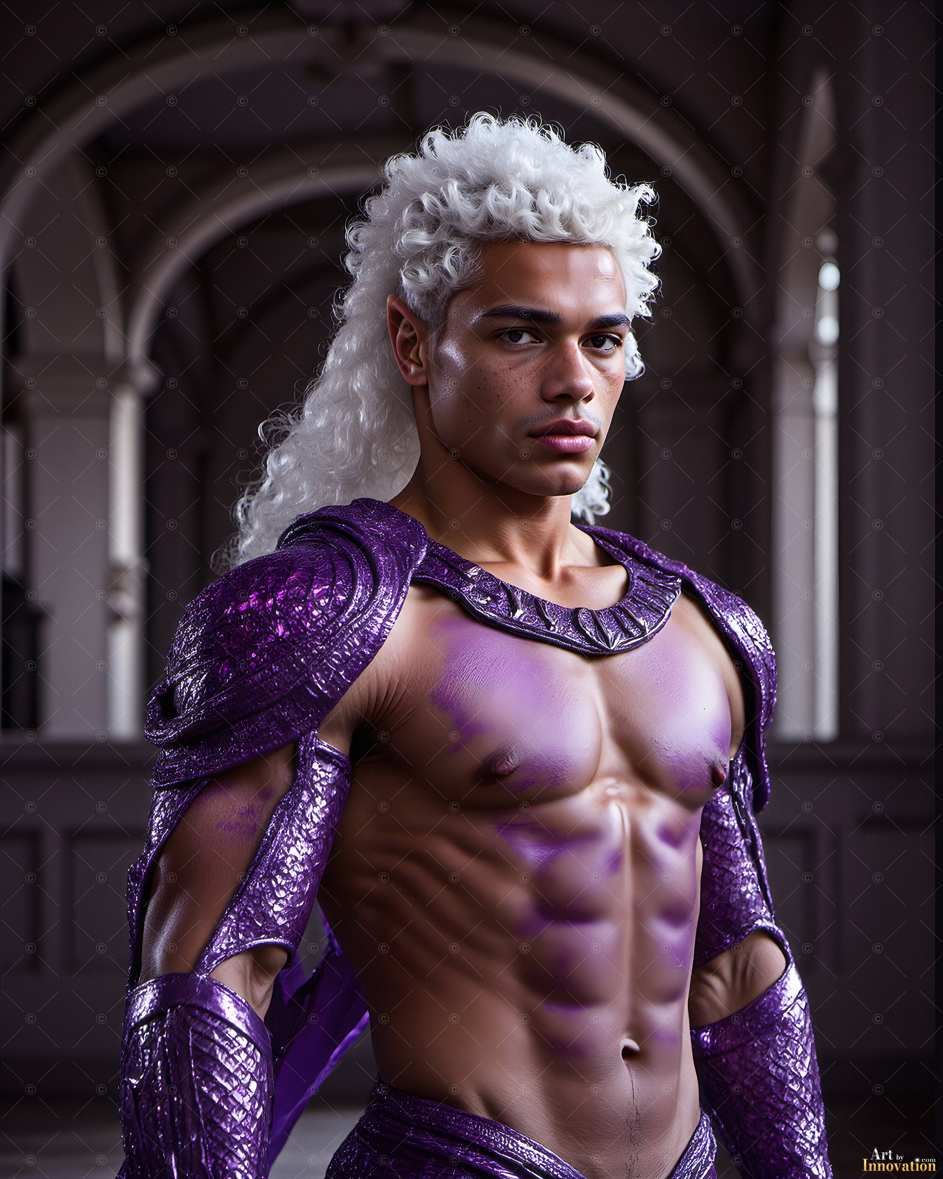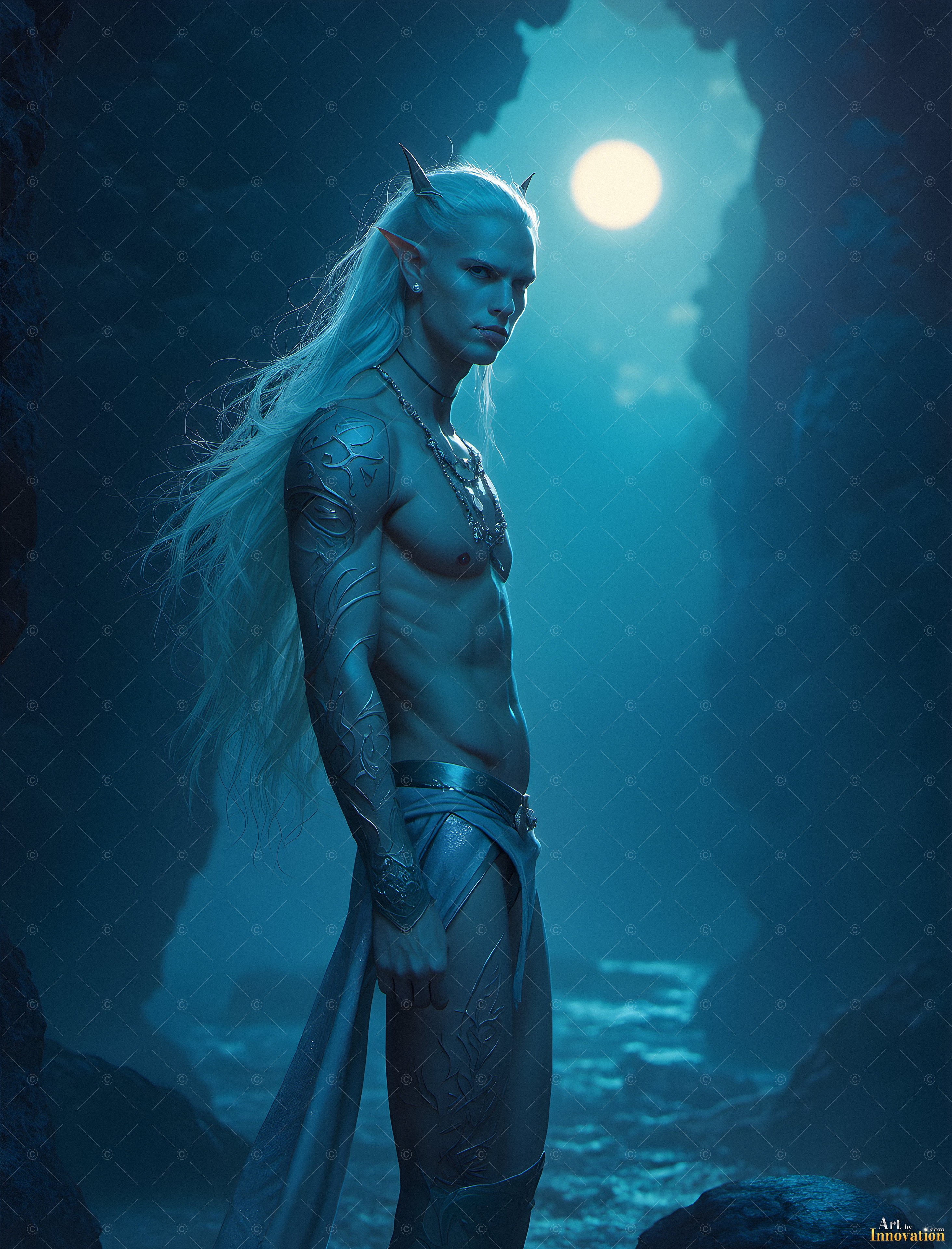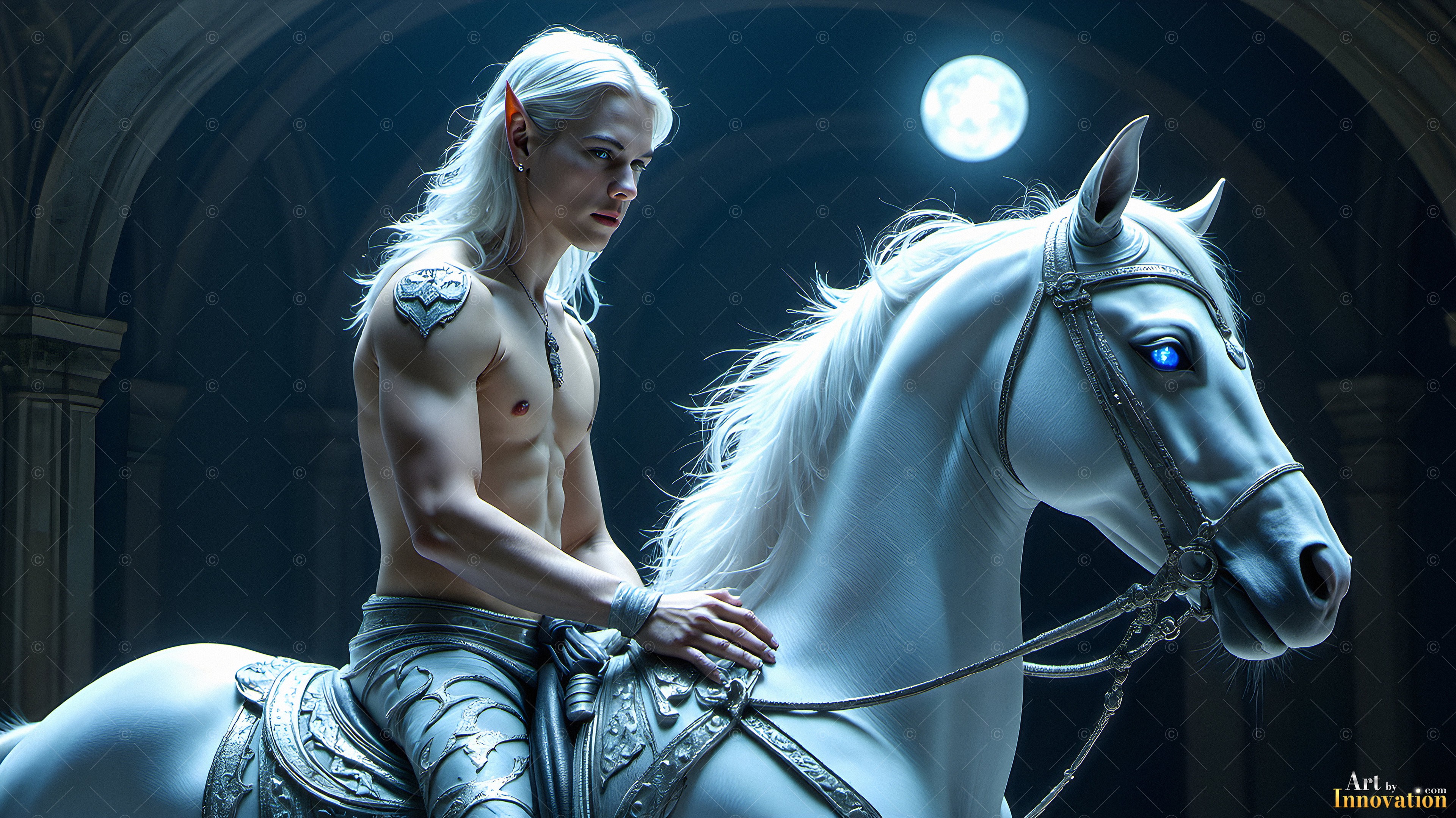 Handsome Male Elves, majestic young male elf standing in an elaborate elven background, in a dark ethereal realm. With pointed ears, wearing glamorous, luxurious, and fierce outfits is an Elven city, full of handsome, and sexy, shirtless elf men, that are adorned with shimmering, iridescent armor.