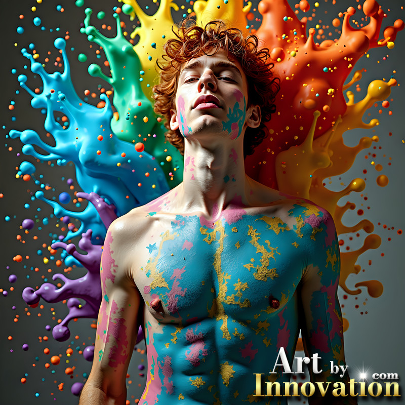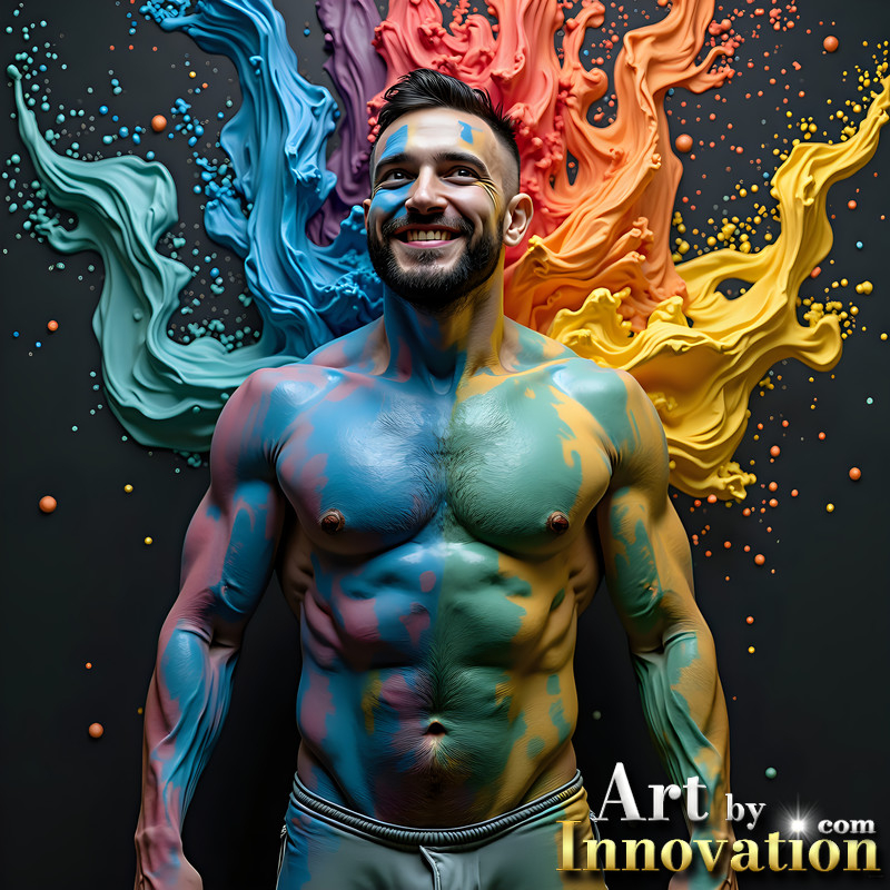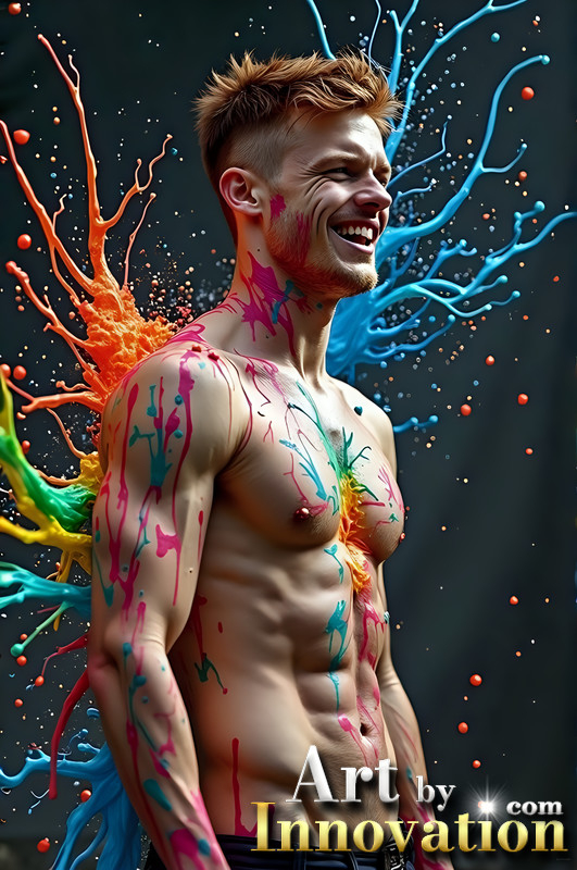 Paint Splat Fun - Hot men having fun with body paint.