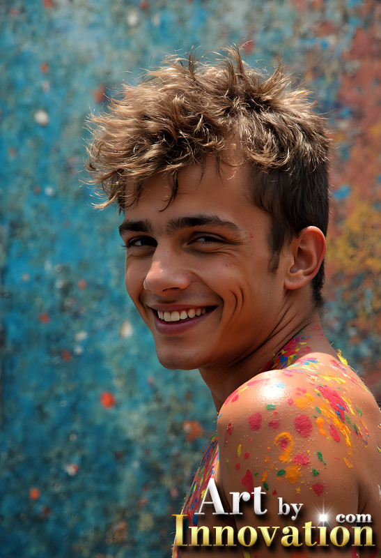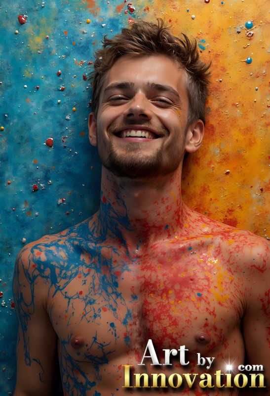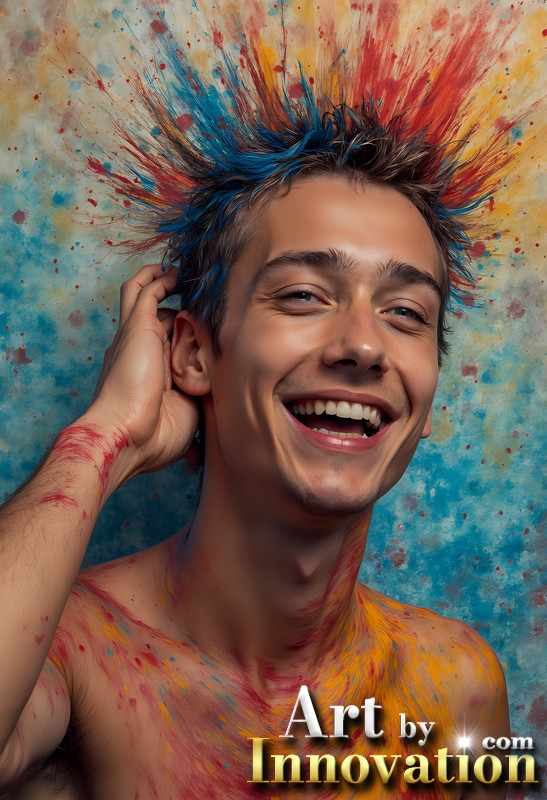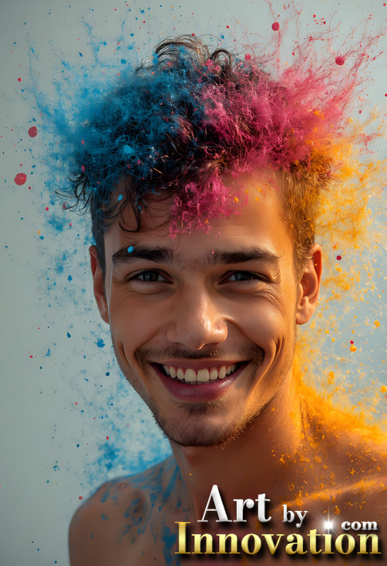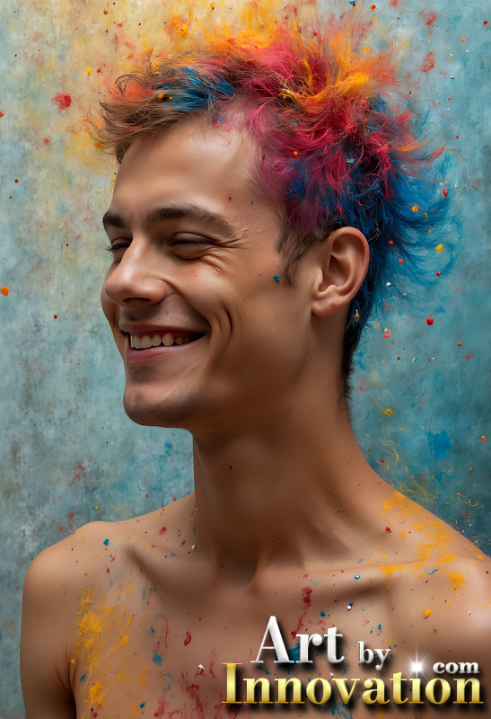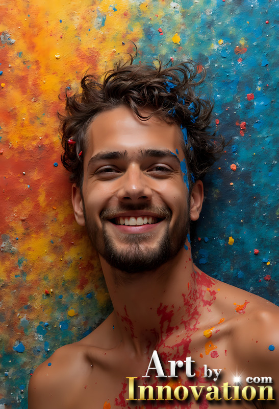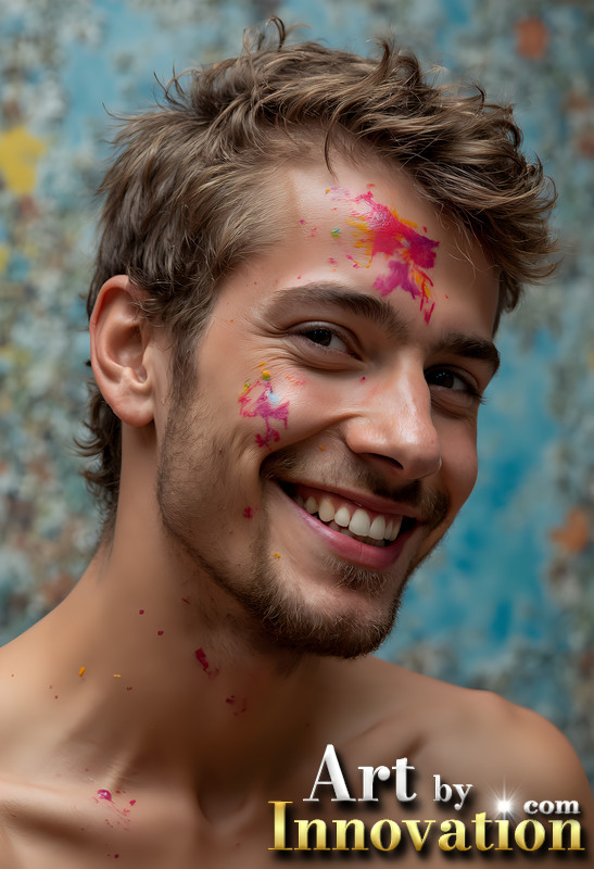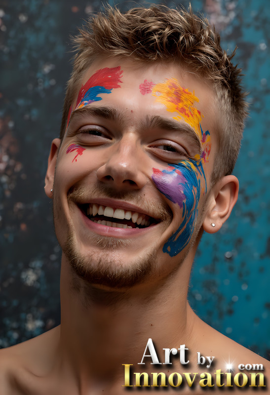 Paint Splat Fun - Colorful Happy Male Faces