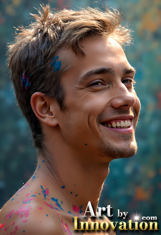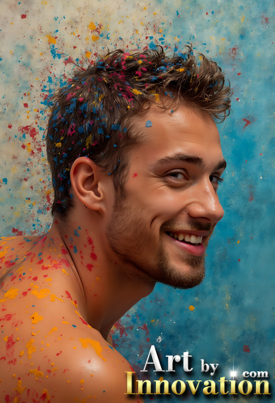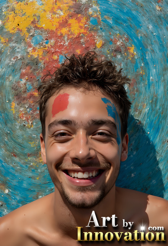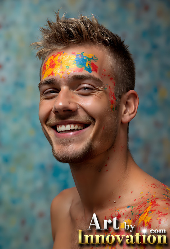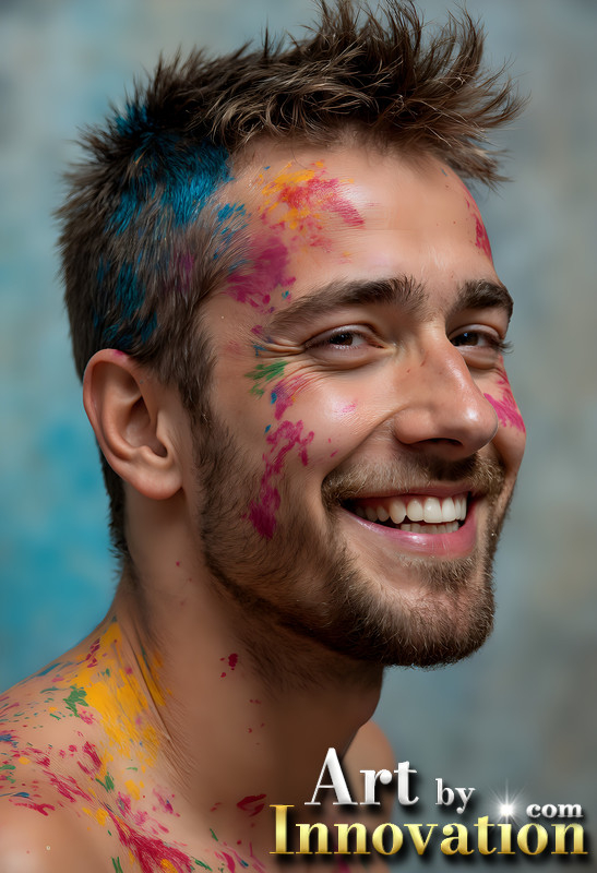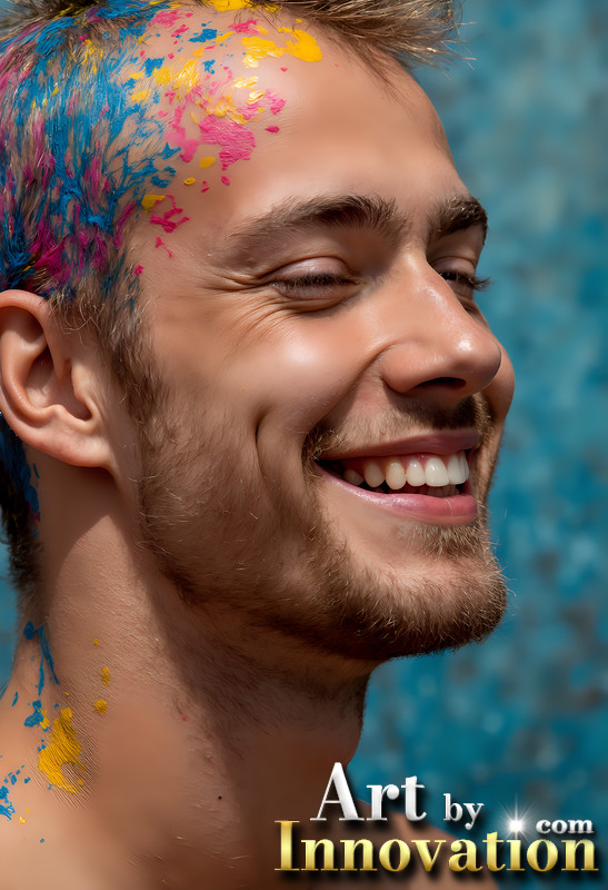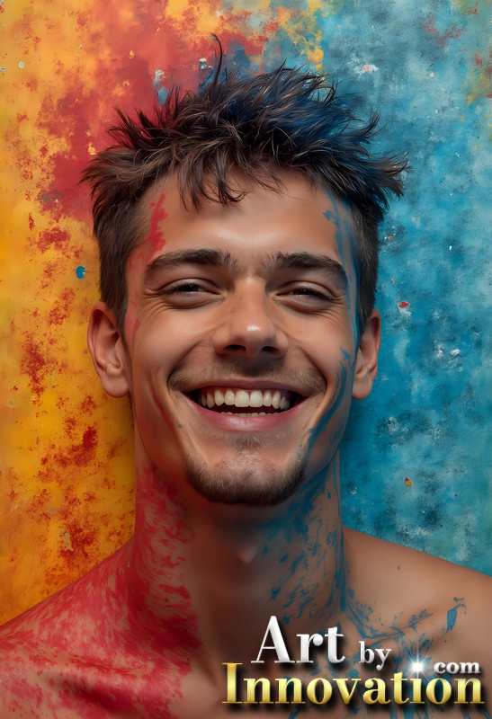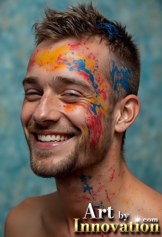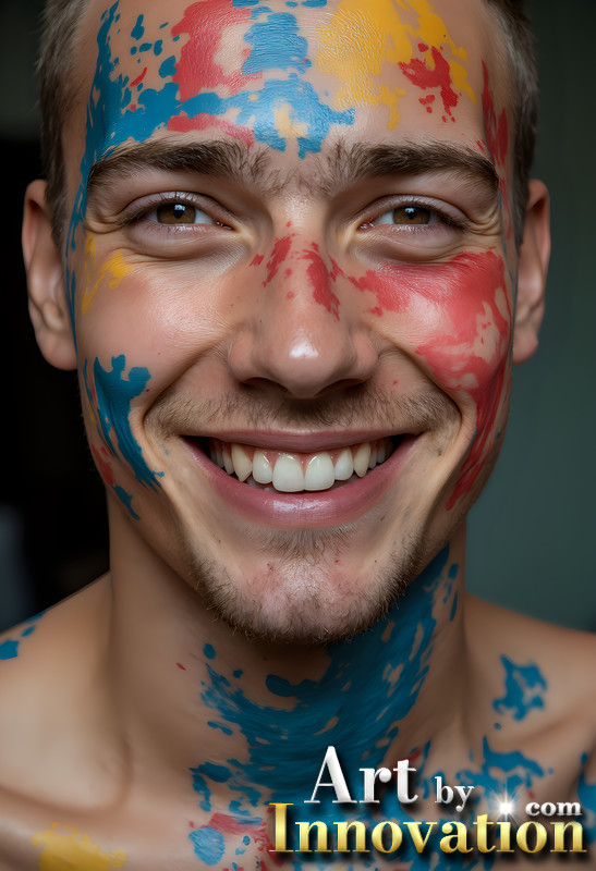 Paint Splat Fun - Colorful Happy Male Faces