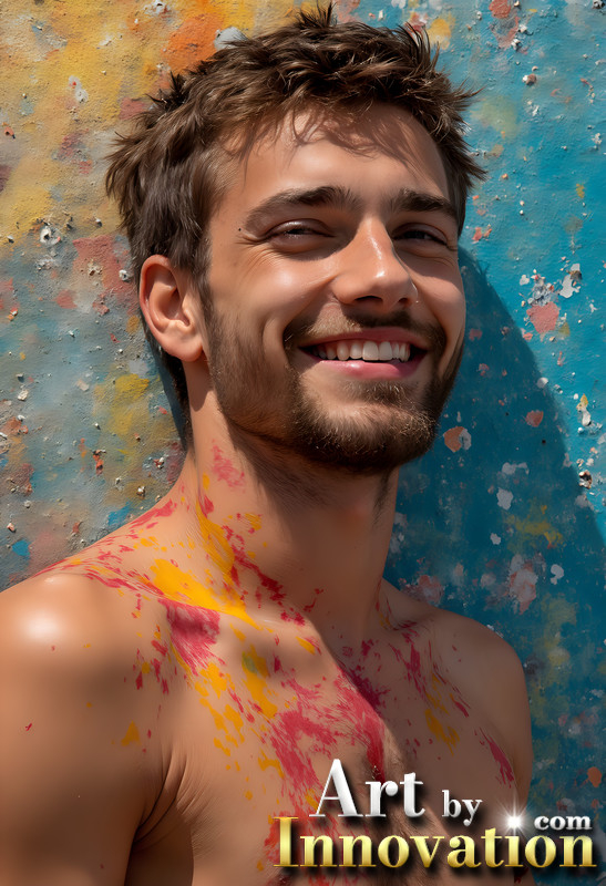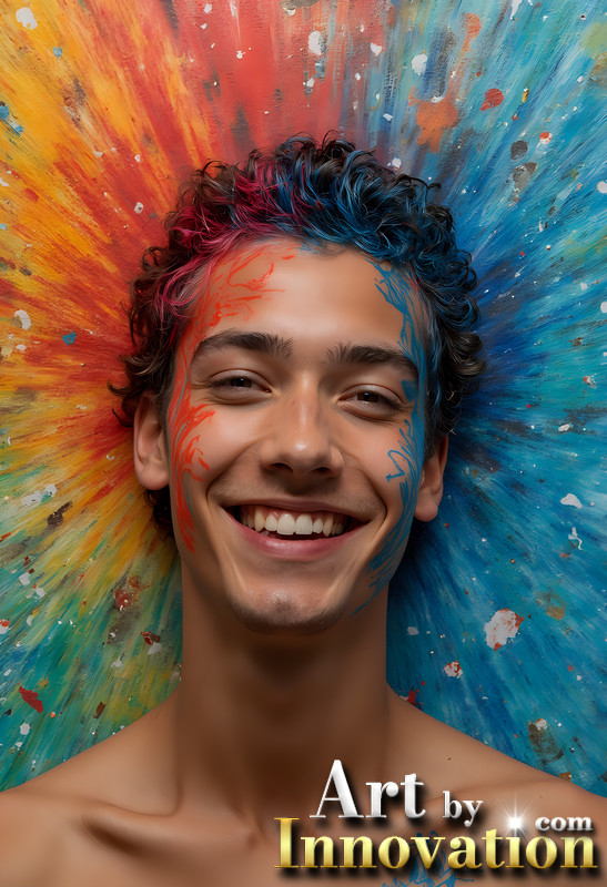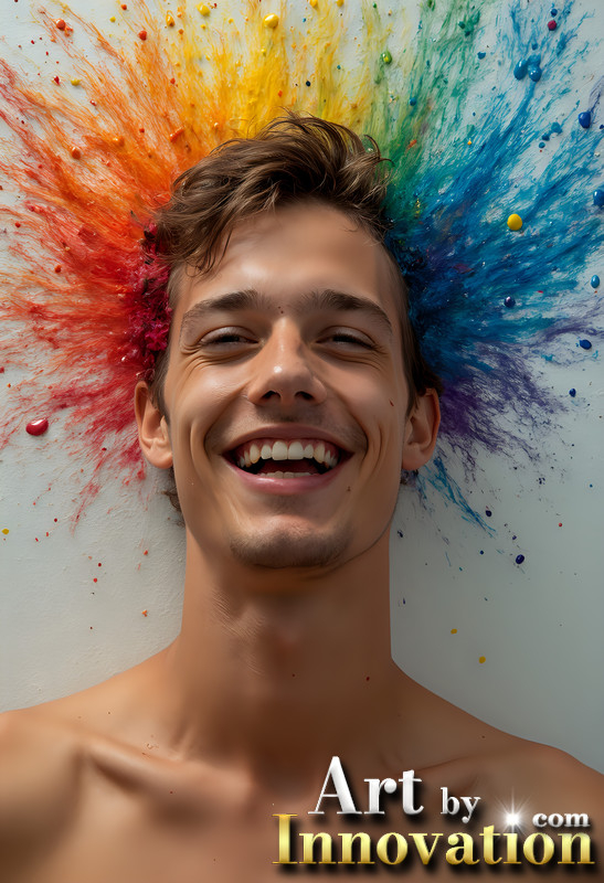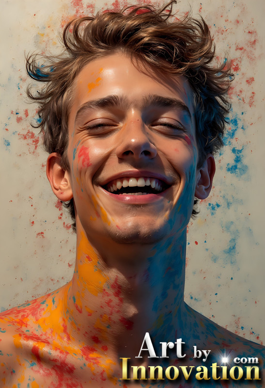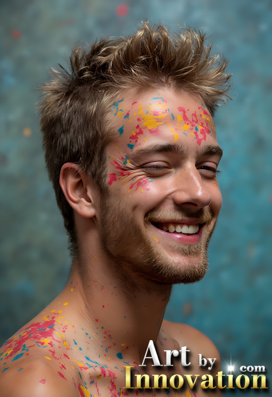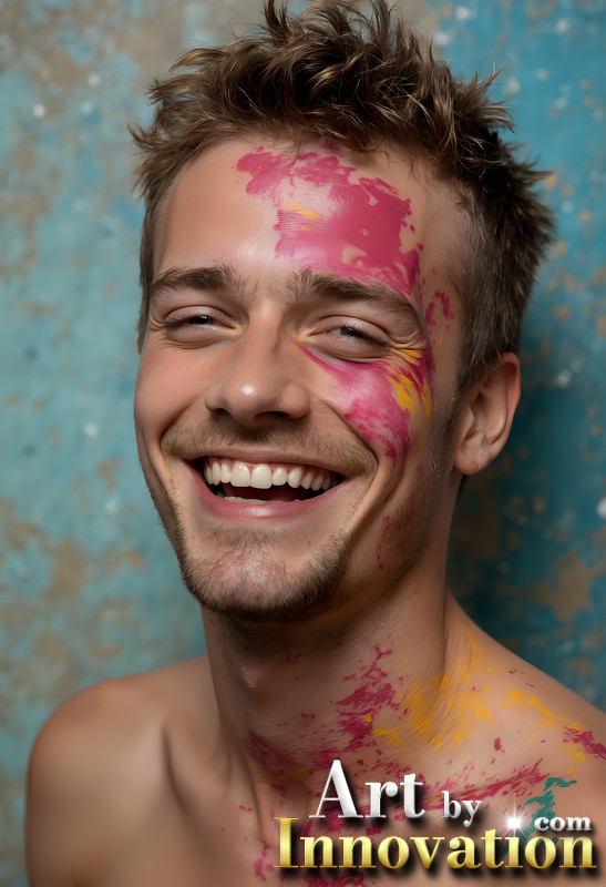 Paint Splat Fun - Colorful Happy Male Faces