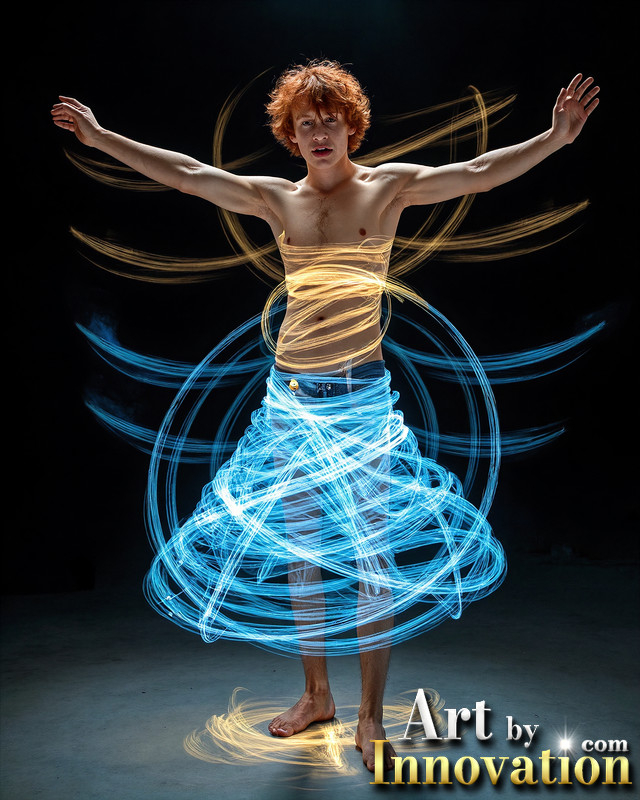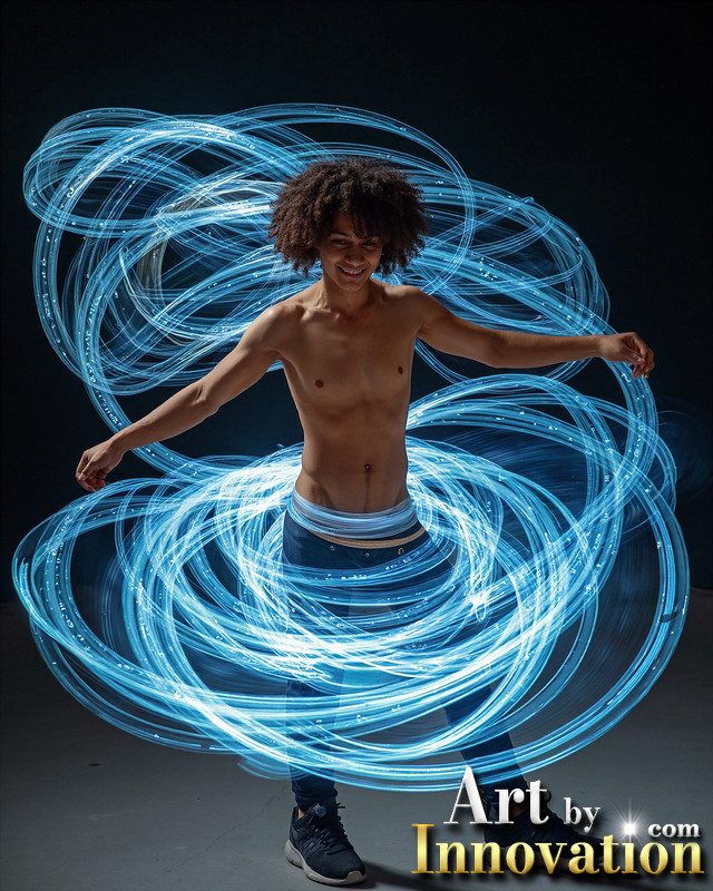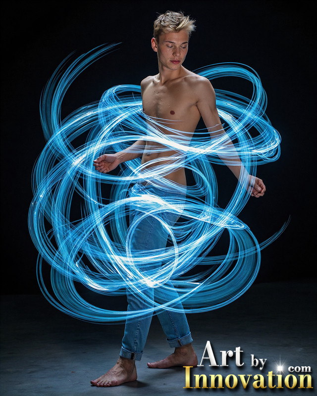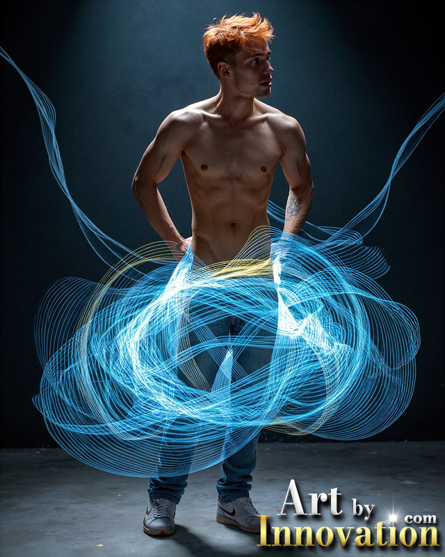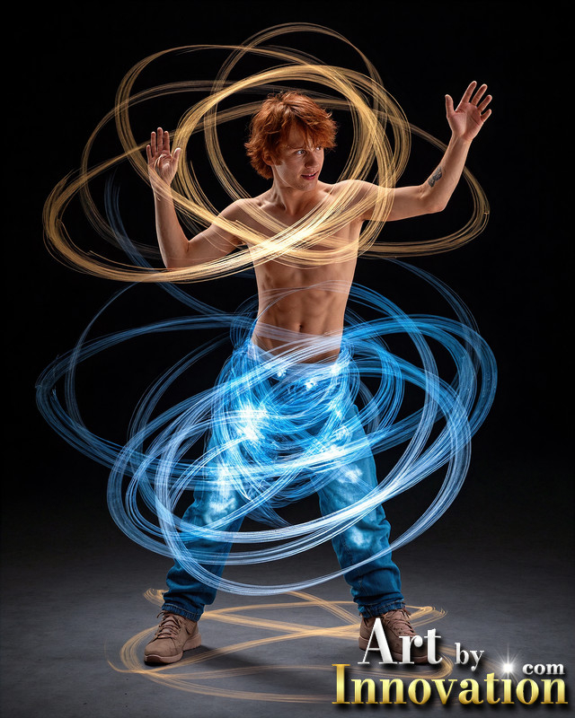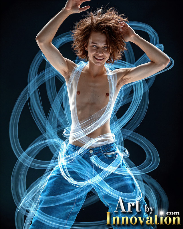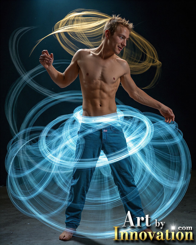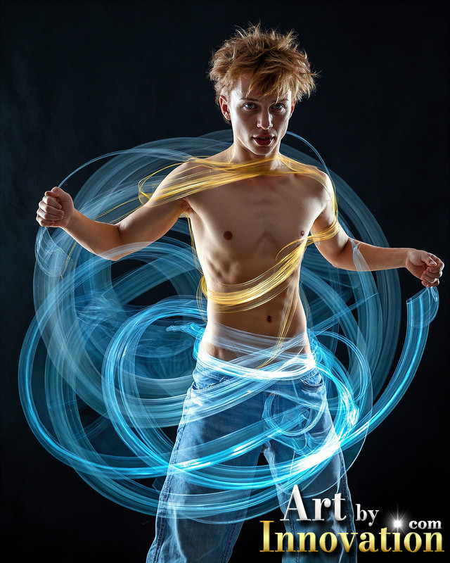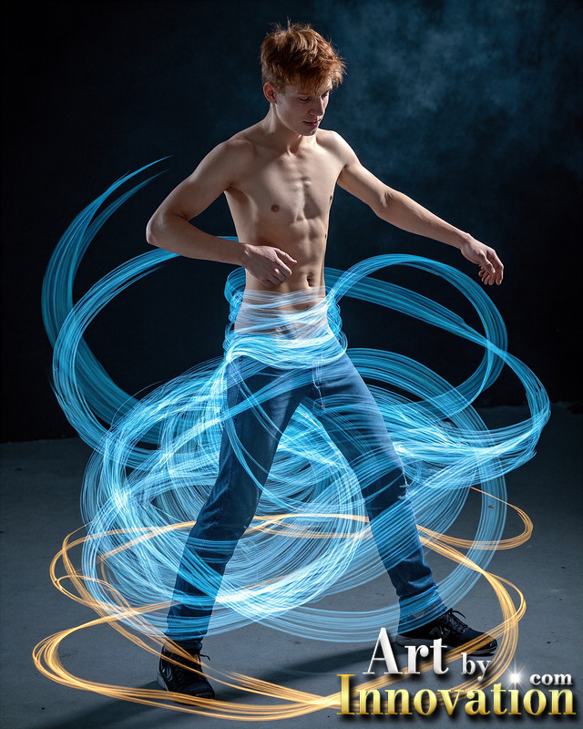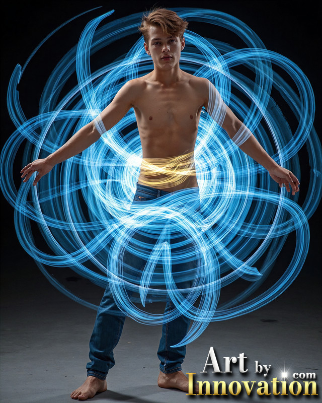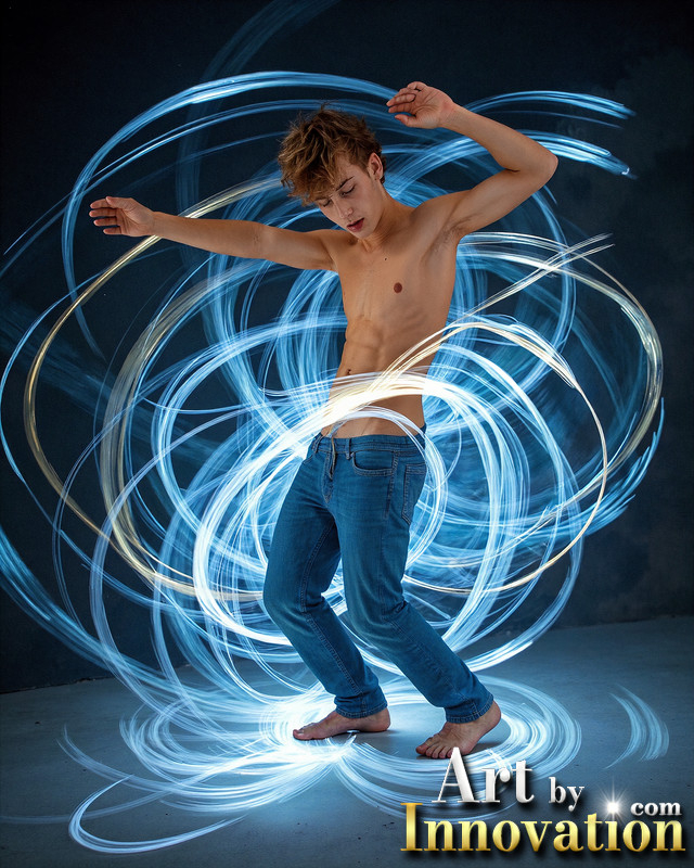 Photos of Handsome Shirtless Men Dancing with Light Rays,Colorful,in Motion.