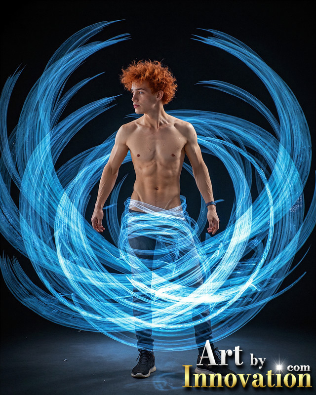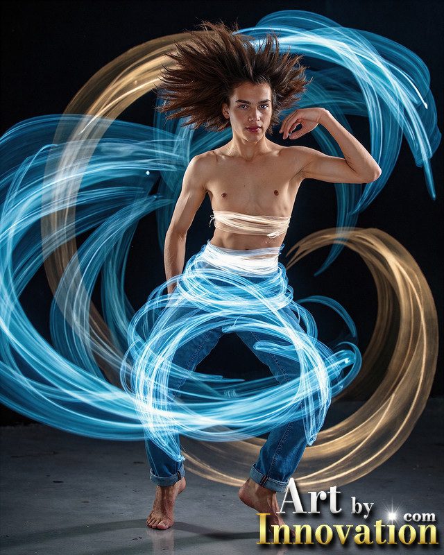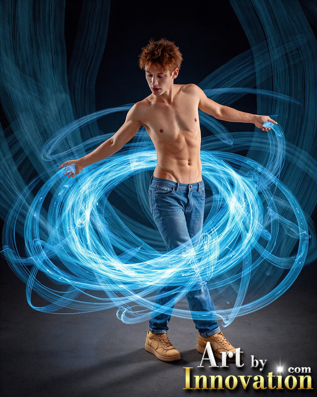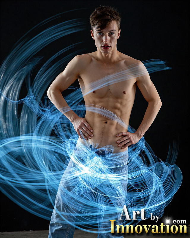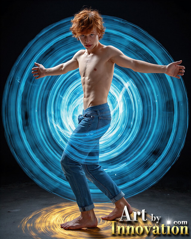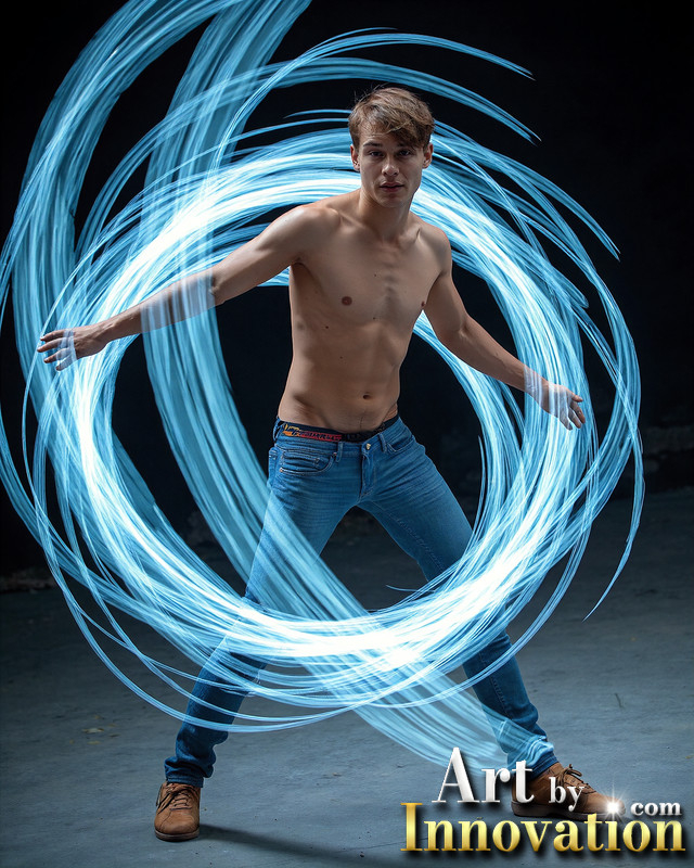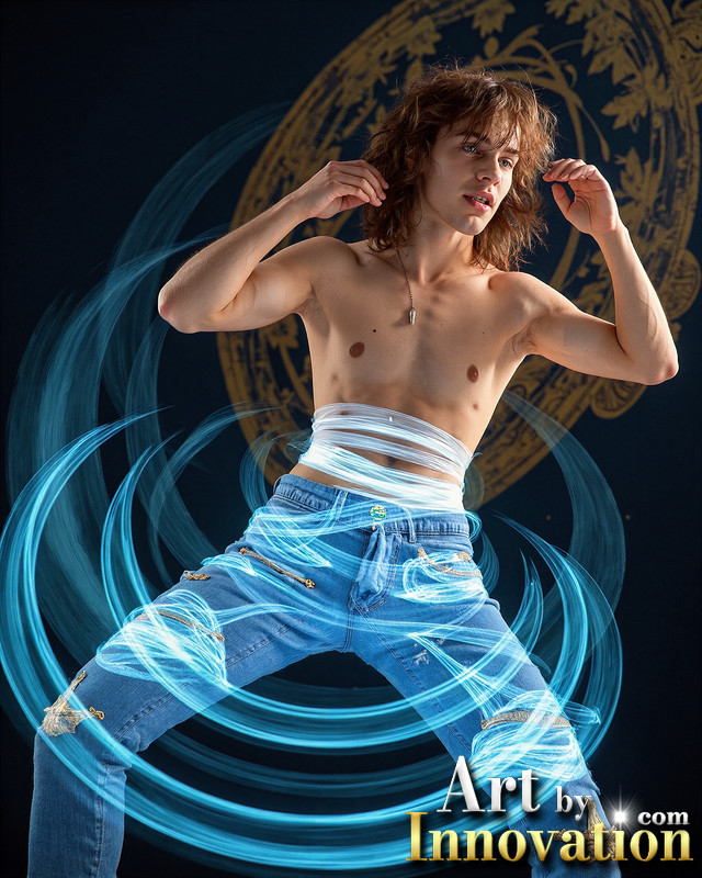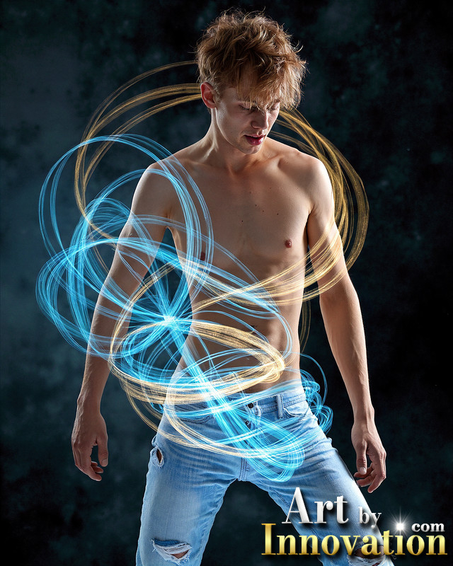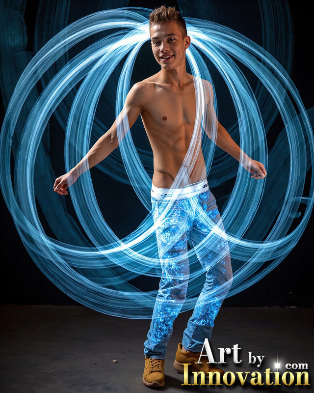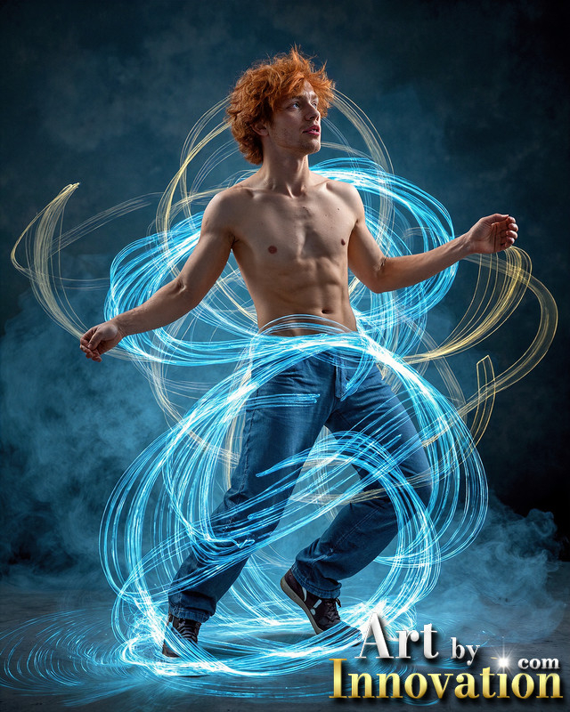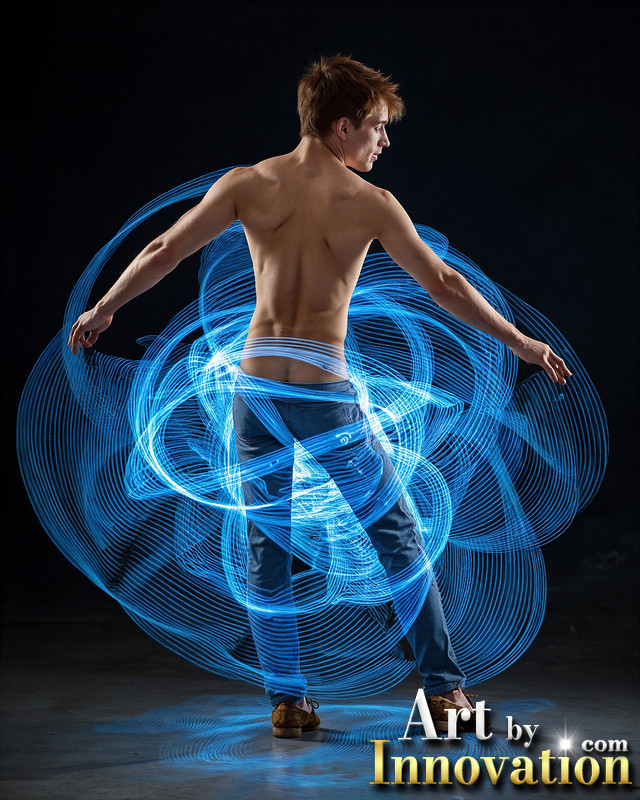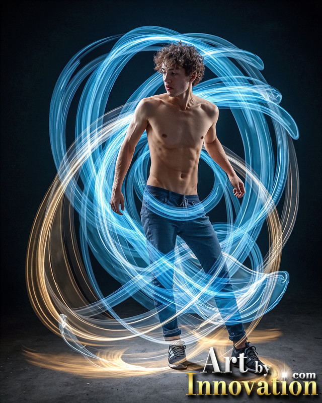 Photos of Handsome Shirtless Men Dancing with Light Rays,Colorful,in Motion.