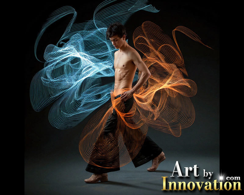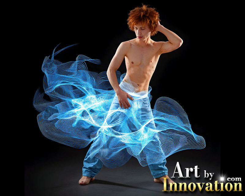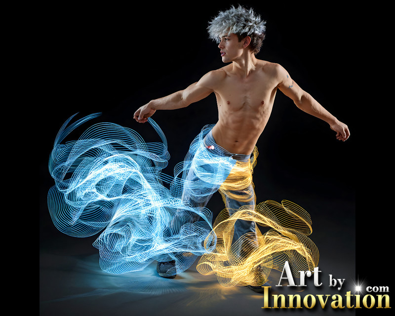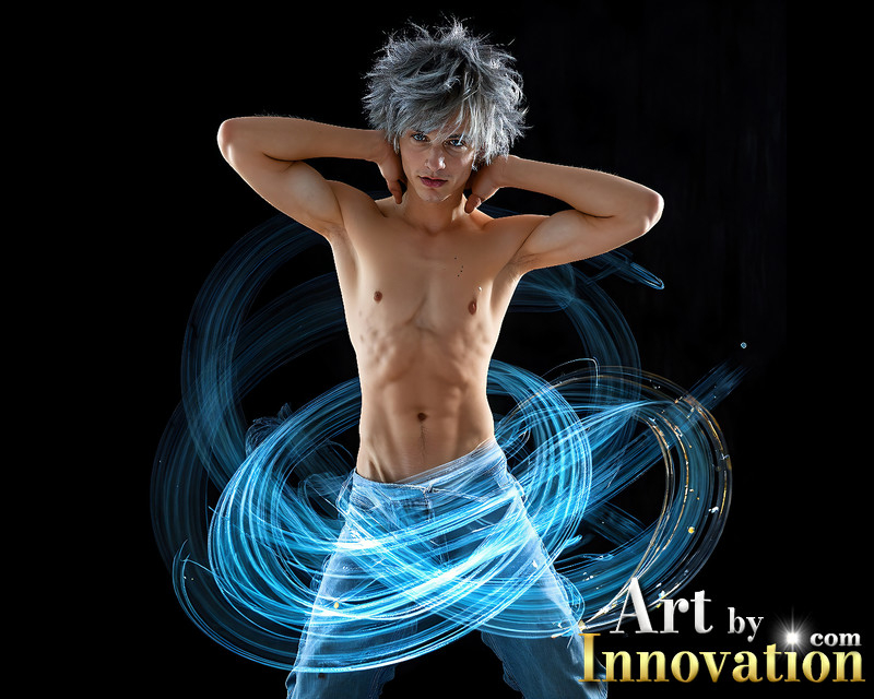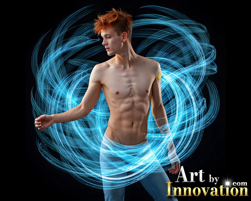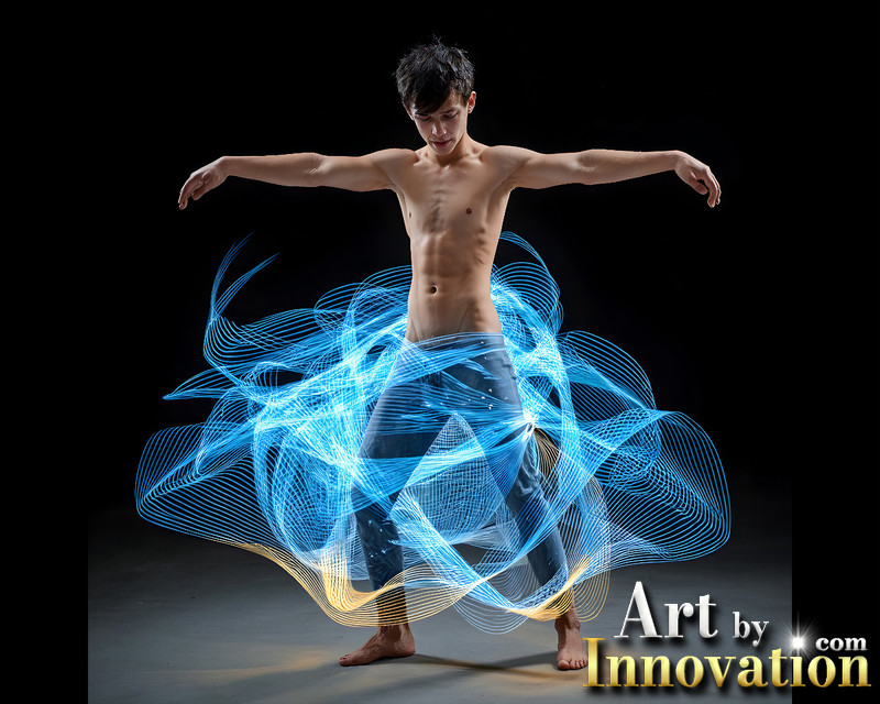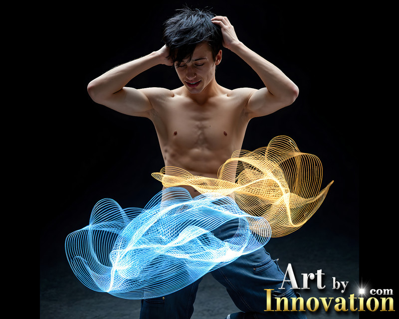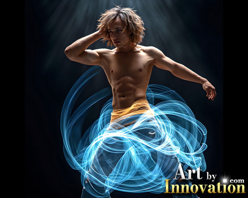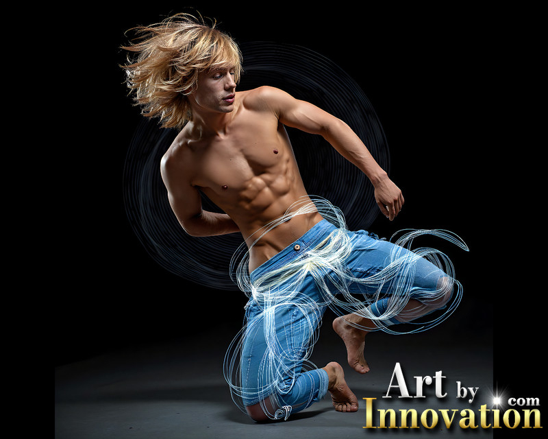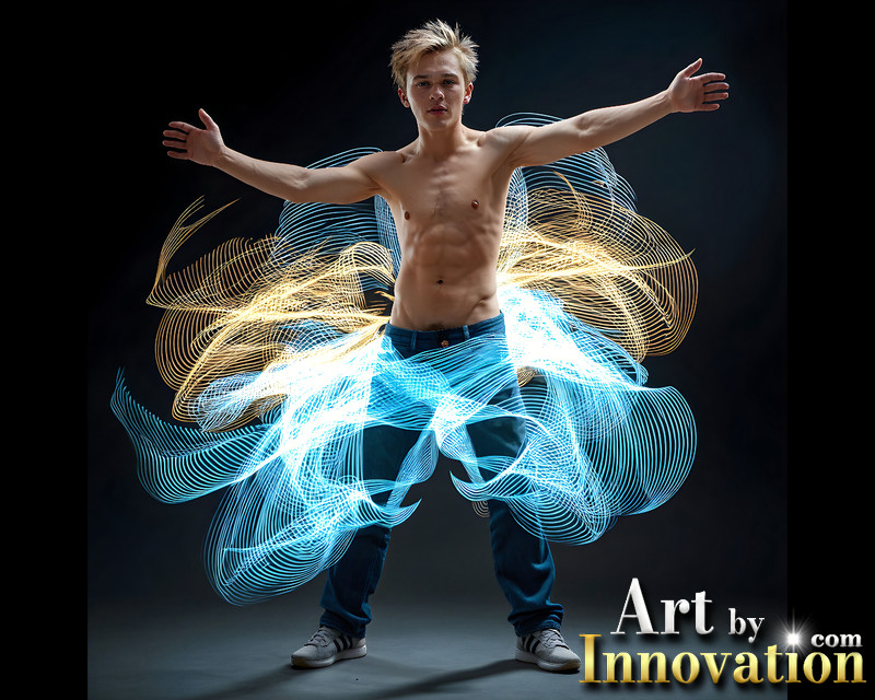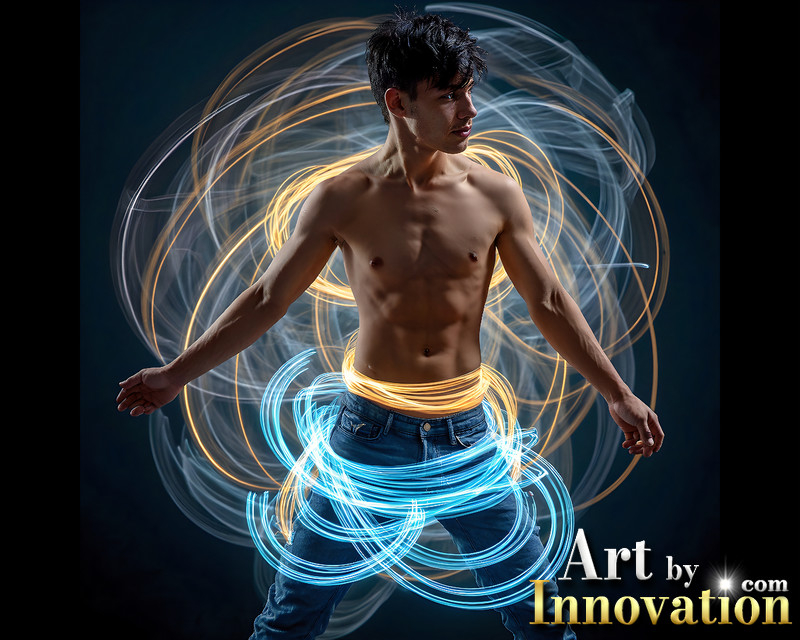 Photos of Handsome Shirtless Men Dancing with Light Rays,Colorful,in Motion.