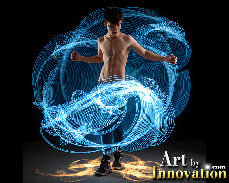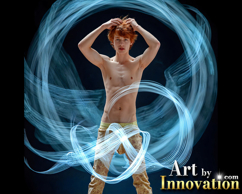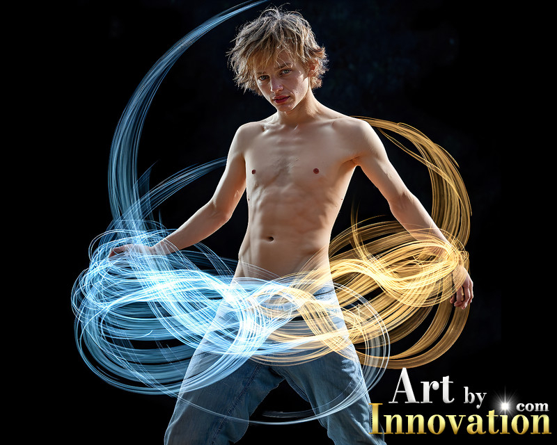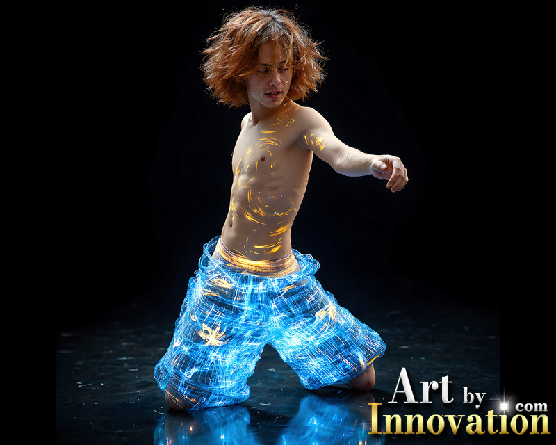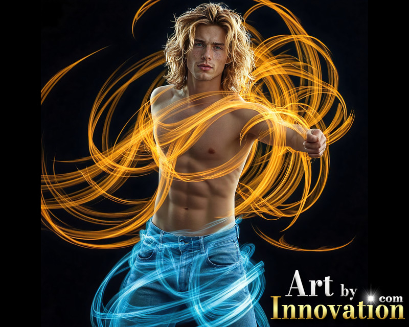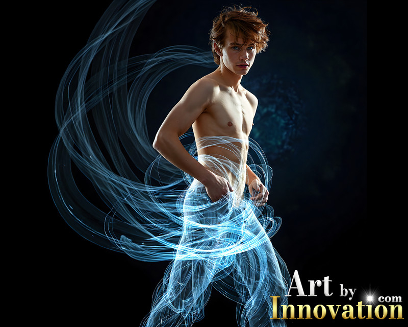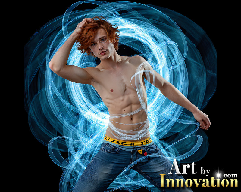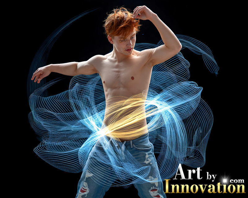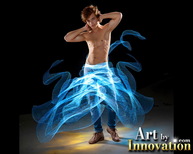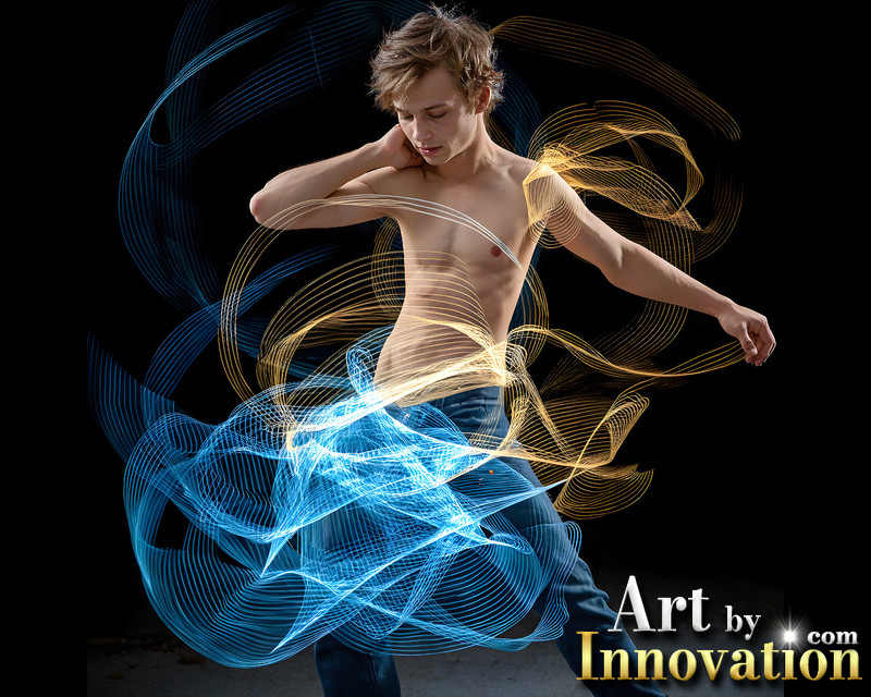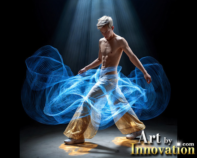 Photos of Handsome Shirtless Men Dancing with Light Rays,Colorful,in Motion.