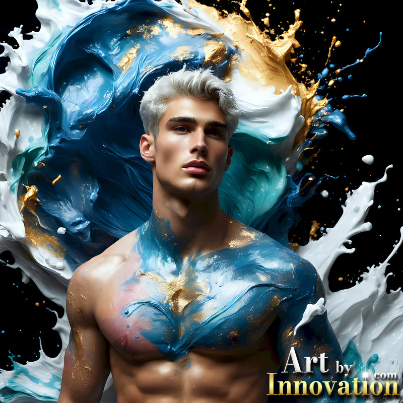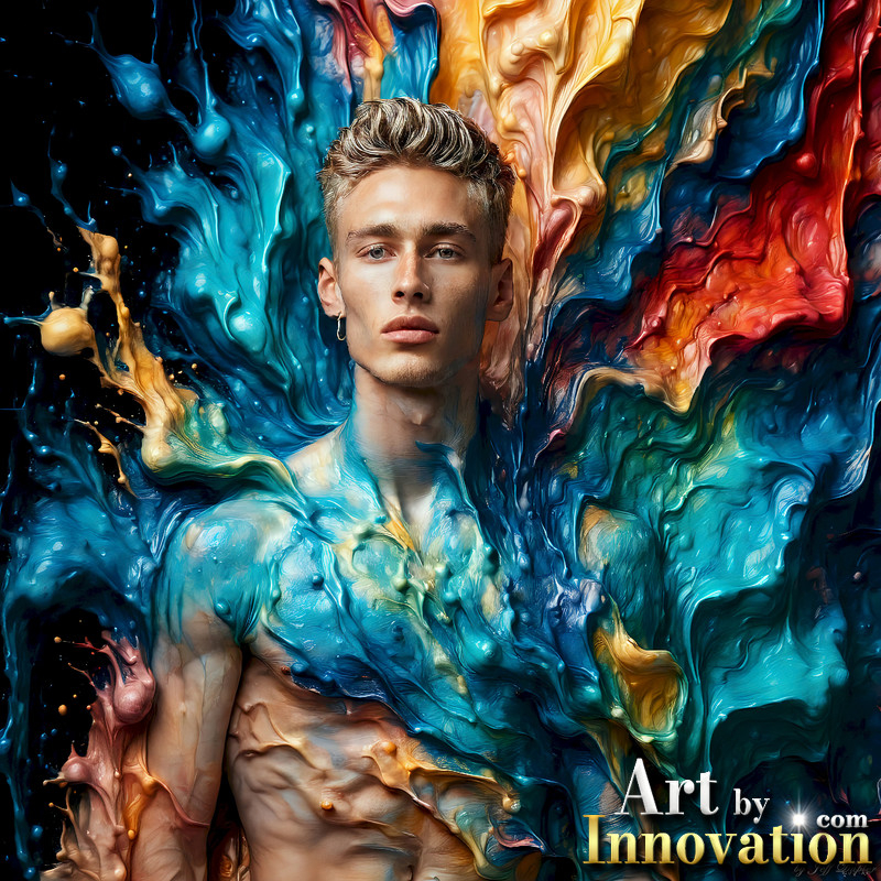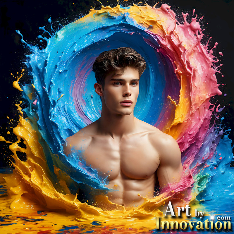 Photos of Sexy Men Playing with Colorful Fluid Art in Motion