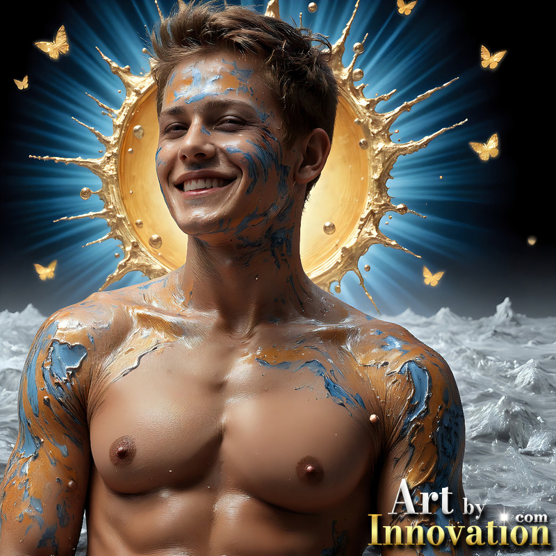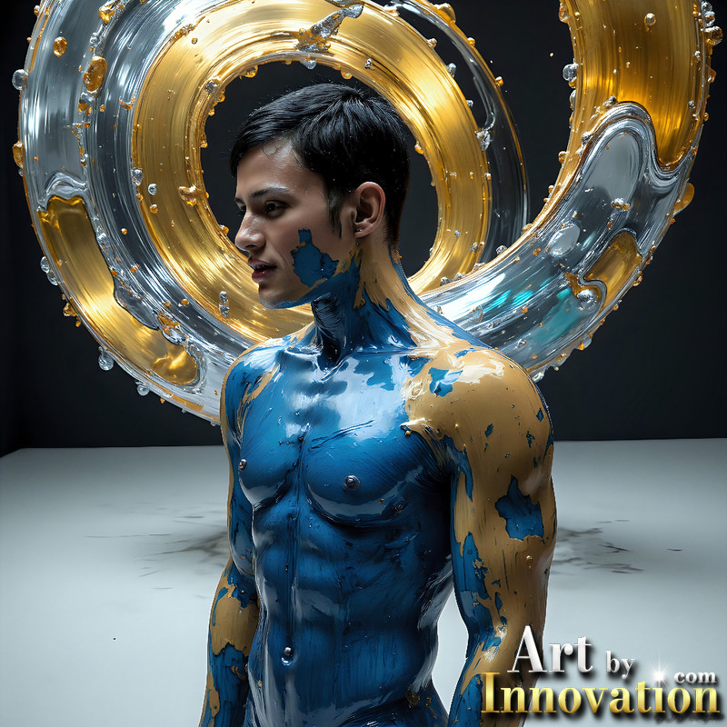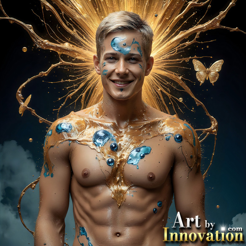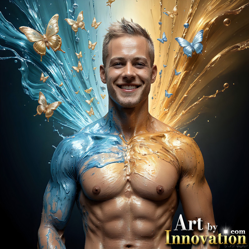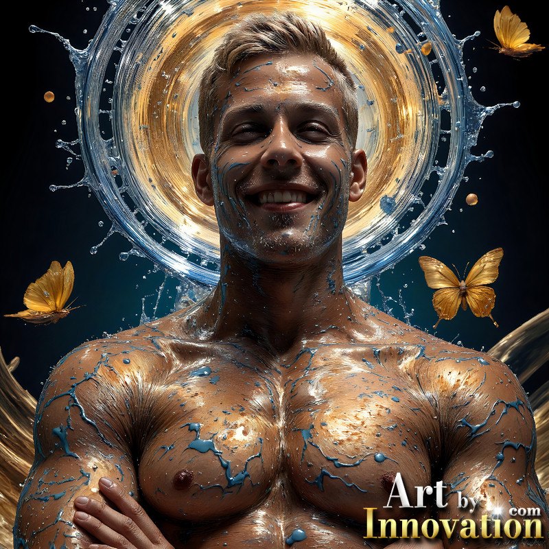 Photos of Sexy Men Playing with Colorful Fluid Art in Motion
