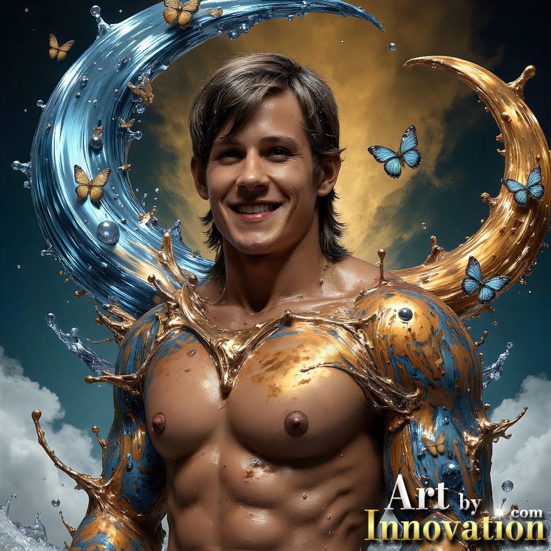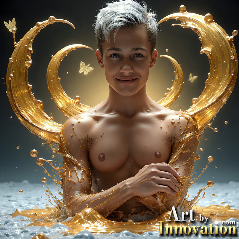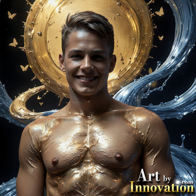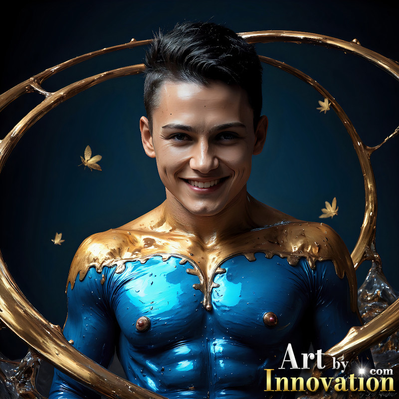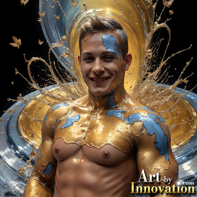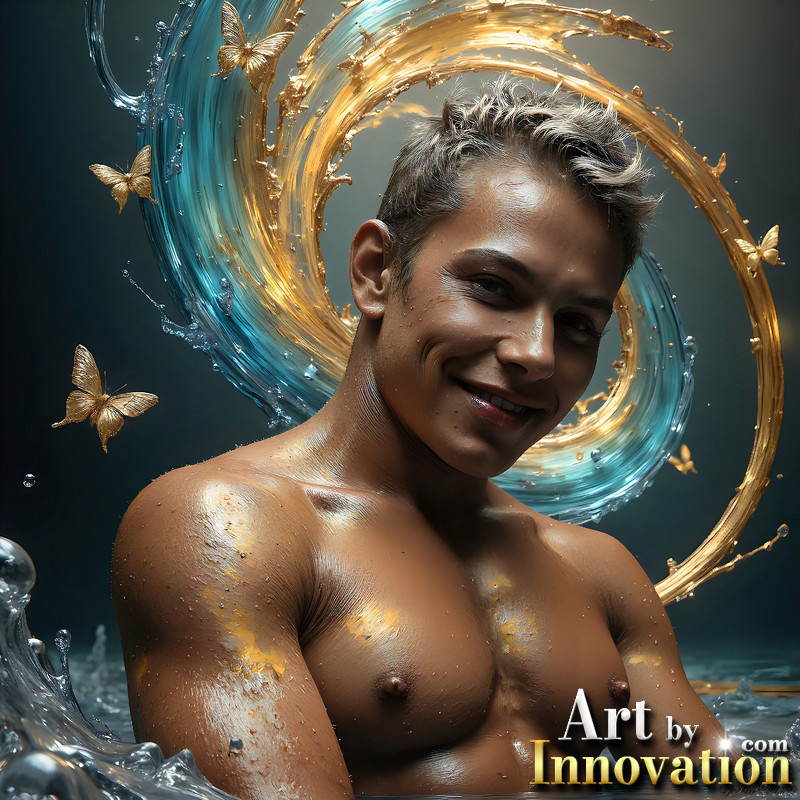 Photos of Sexy Men Playing with Colorful Fluid Art in Motion