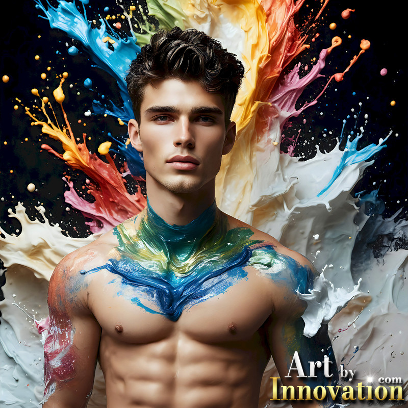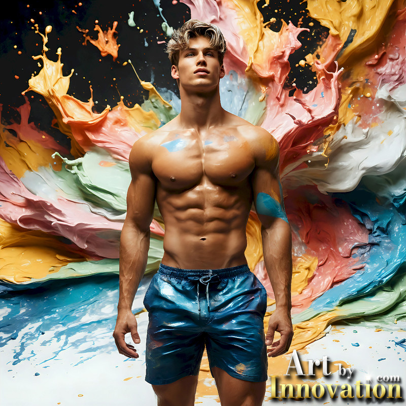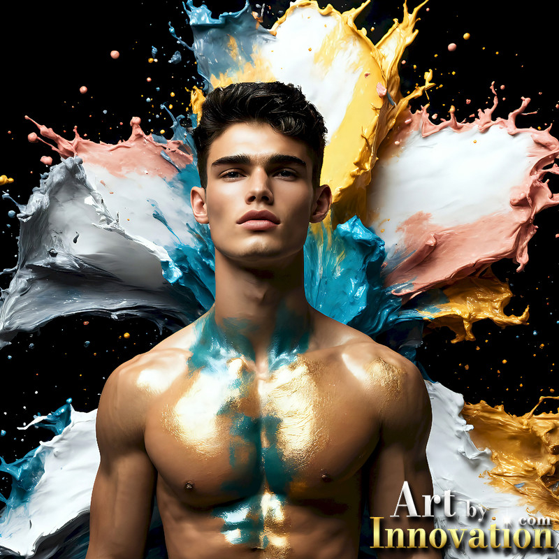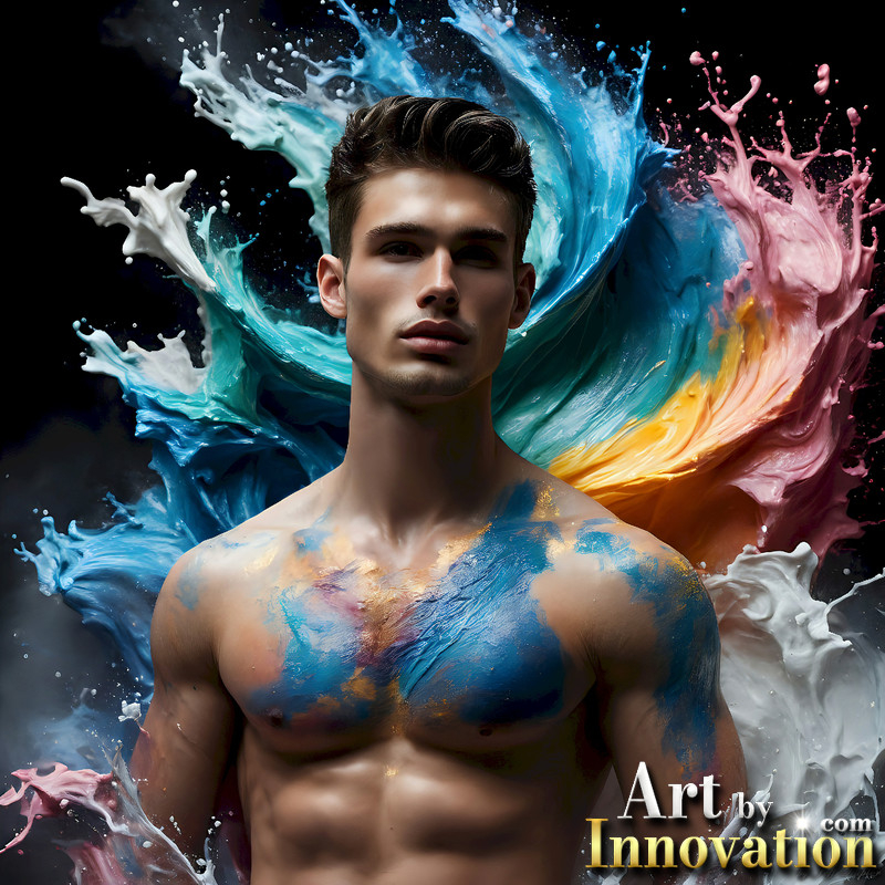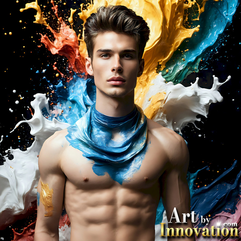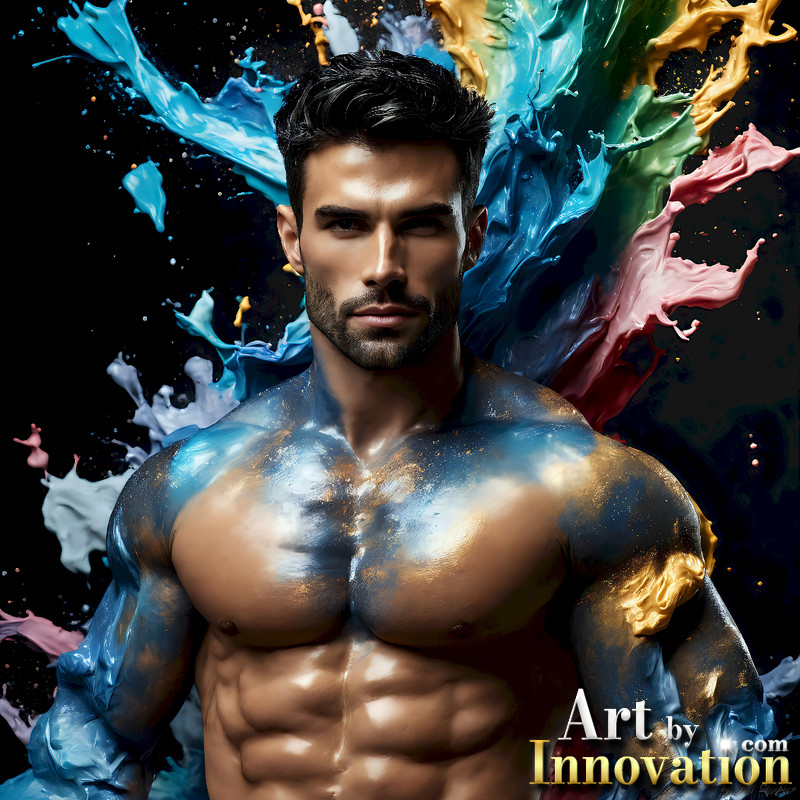 Photos of Sexy Men Playing with Colorful Fluid Art in Motion