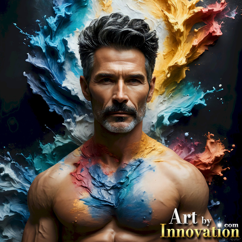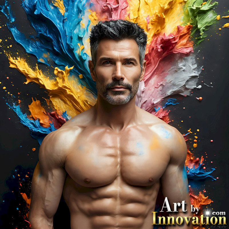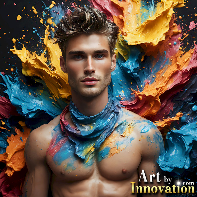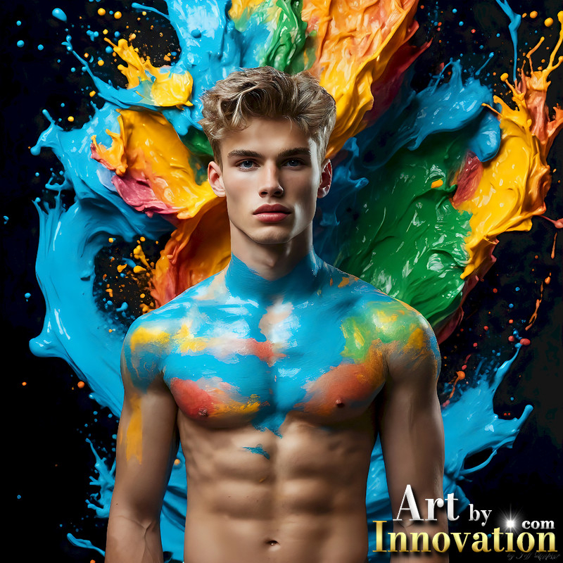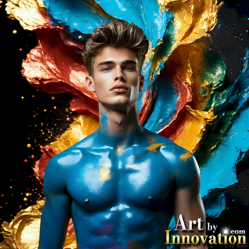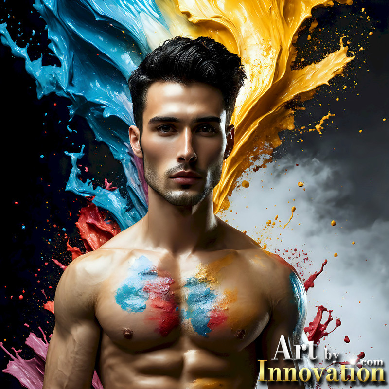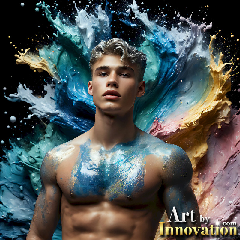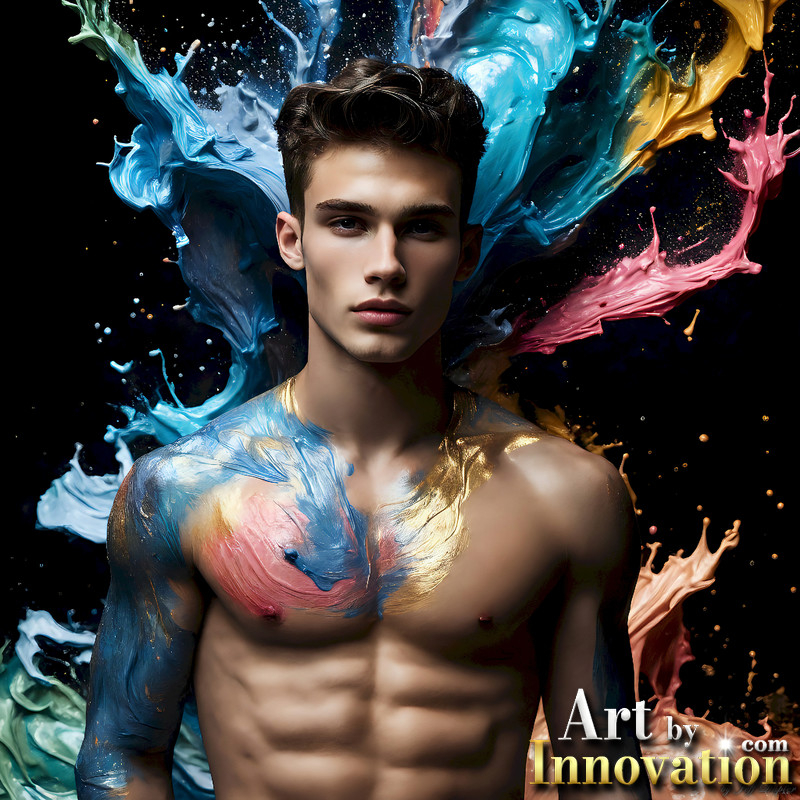 Photos of Sexy Men Playing with Colorful Fluid Art in Motion