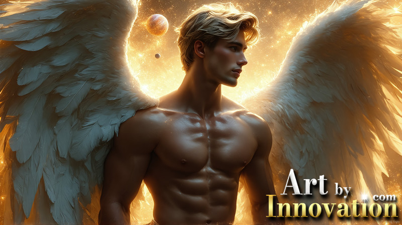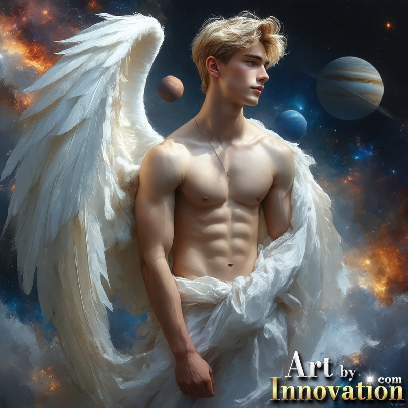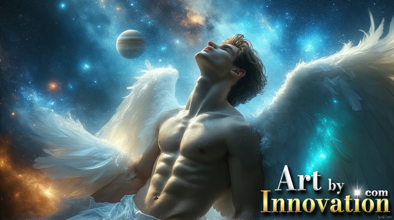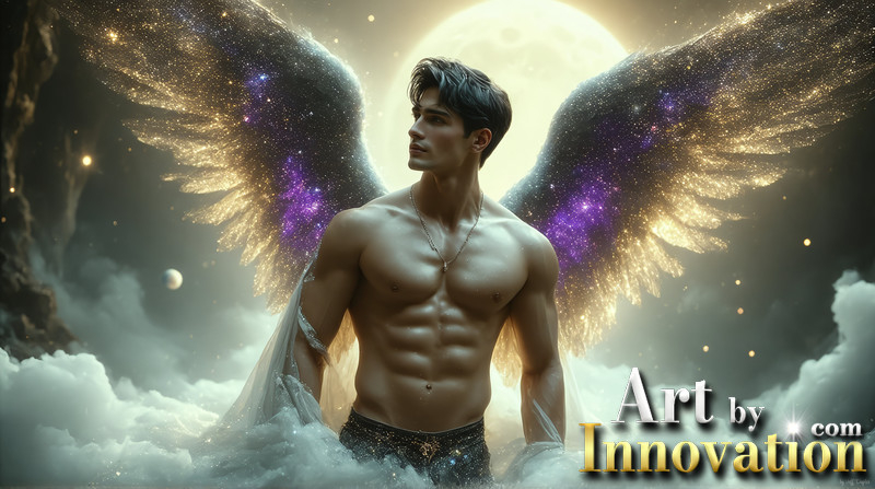 Male Angels from Above,handsome & sexy men,fantasy wings,brought to life through the magic of AI